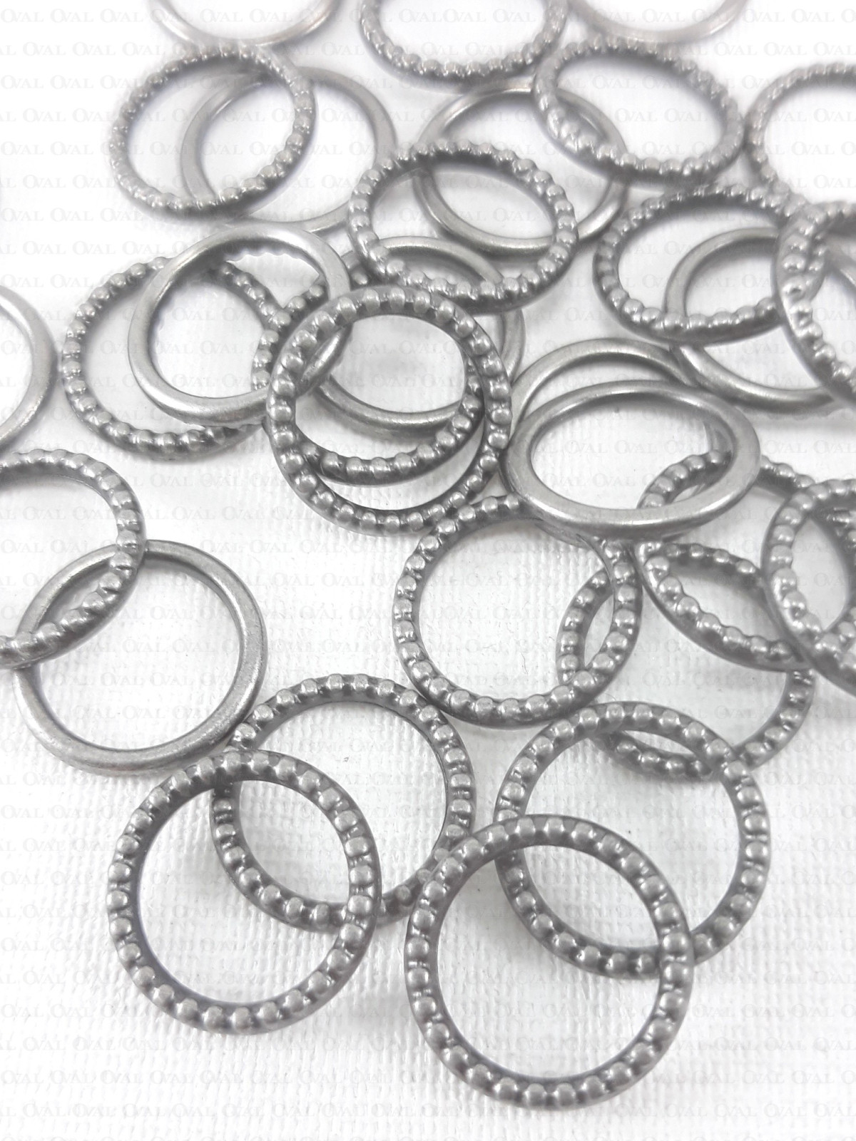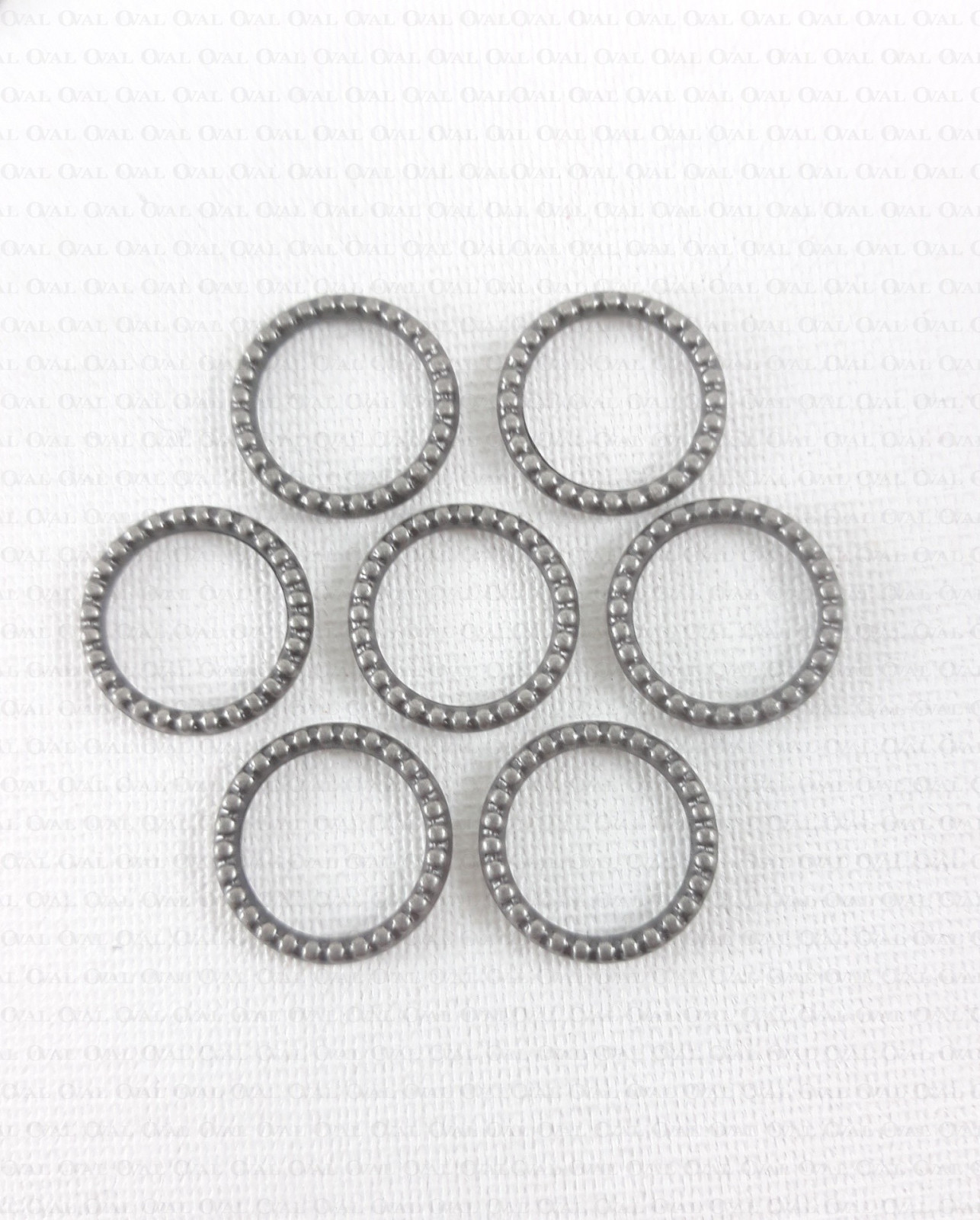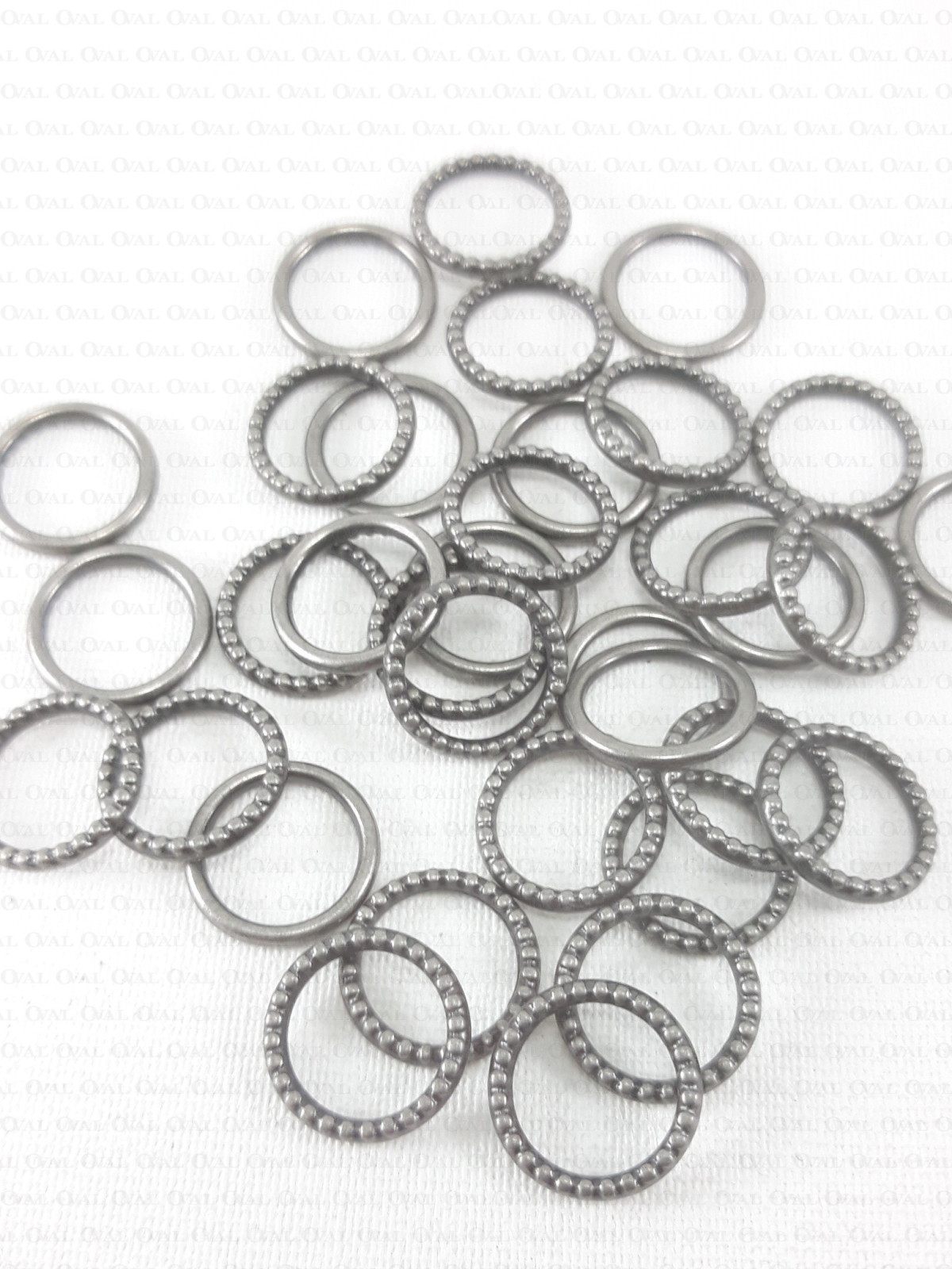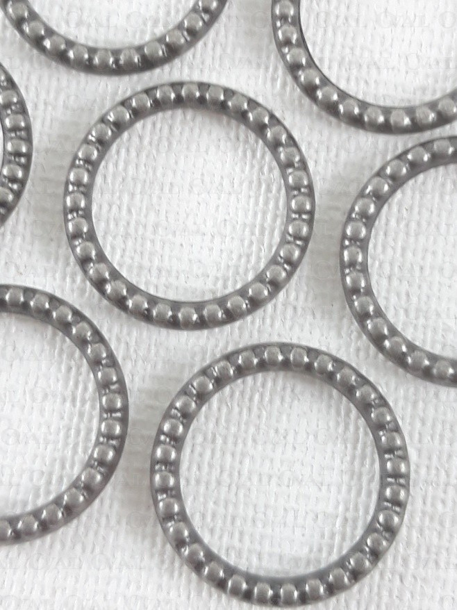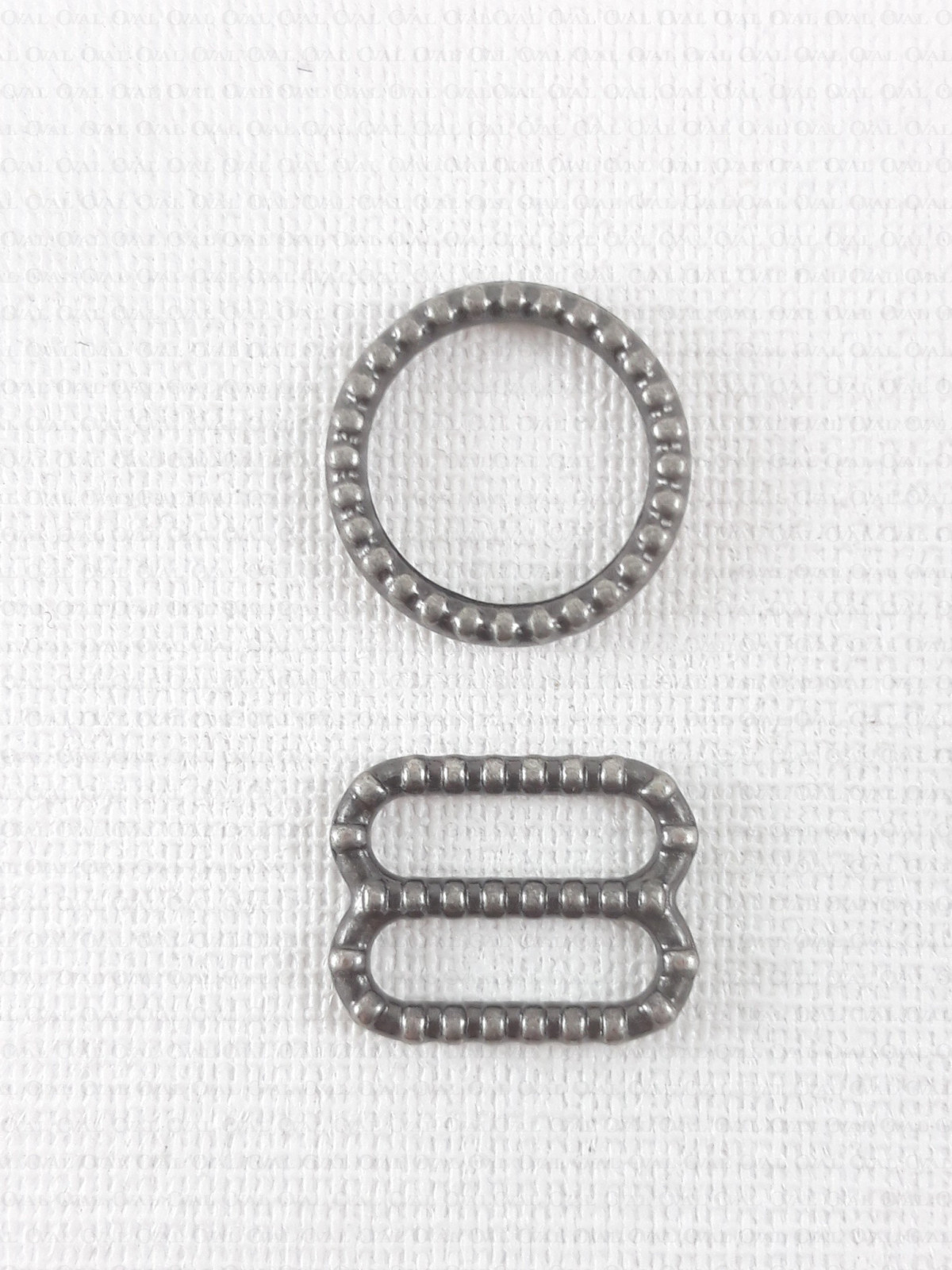 Decorative metal ring for bra straps.