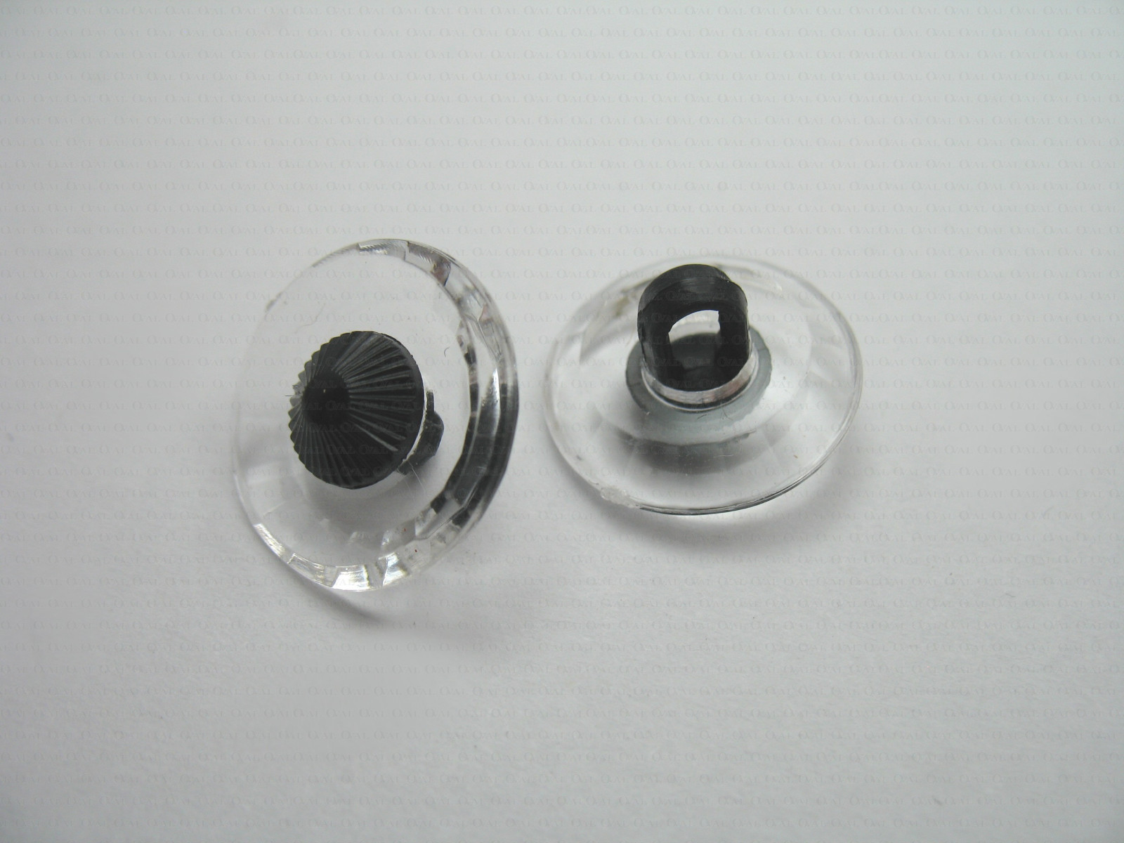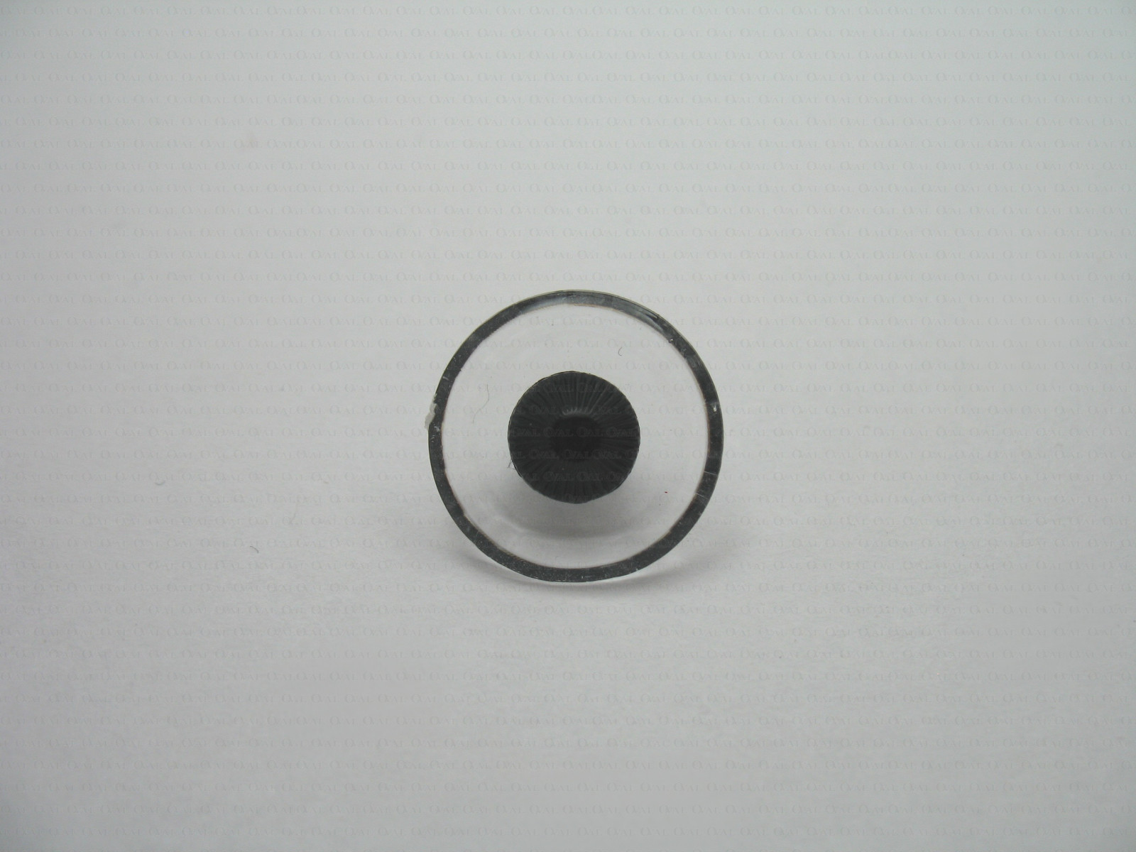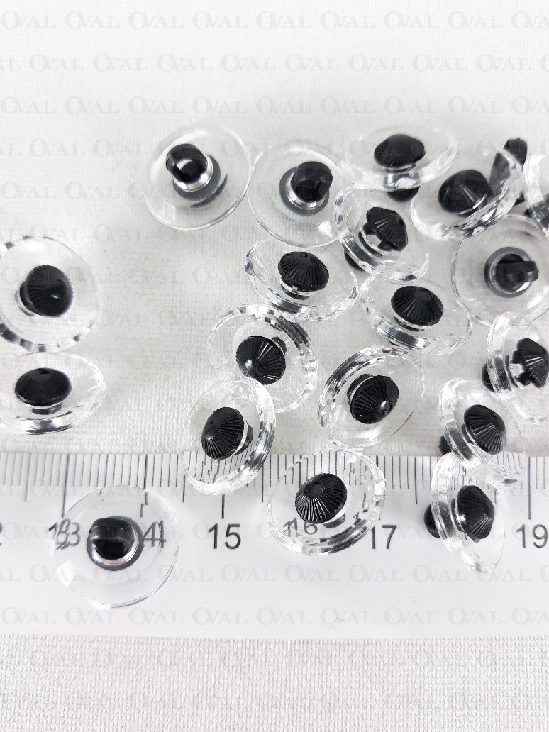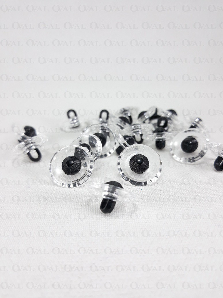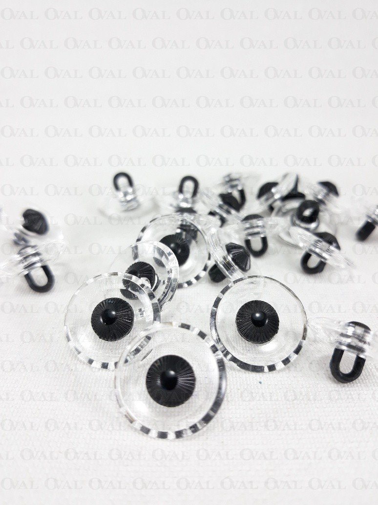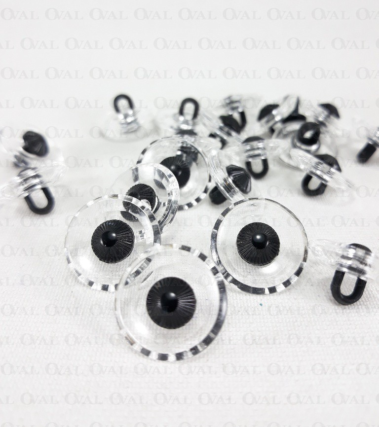 Plastic shank button imitating glass with a black eye.