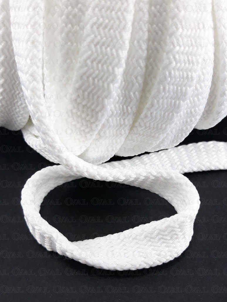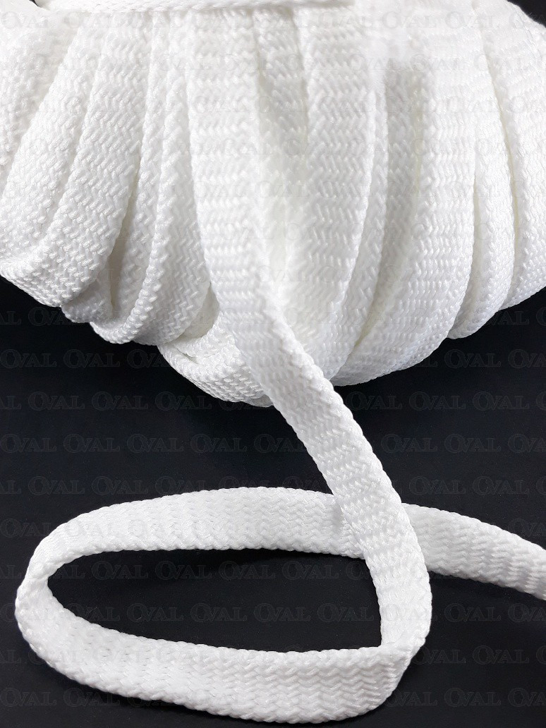 Flat white polyester cord 12mm/50 m 3271