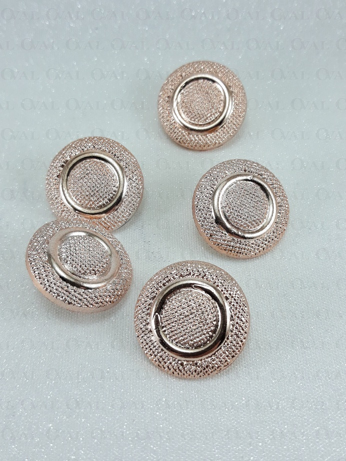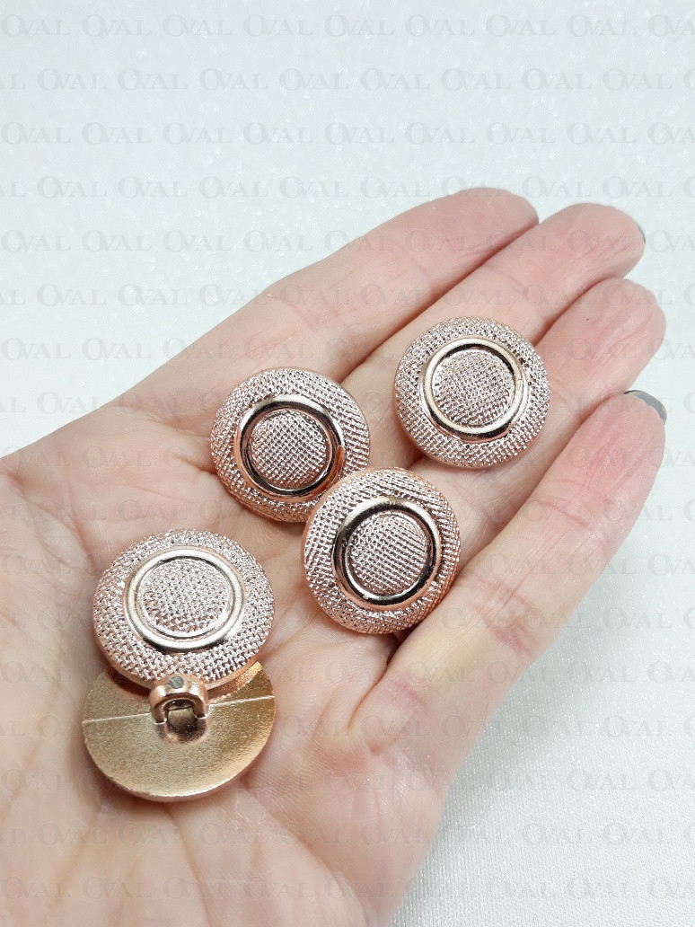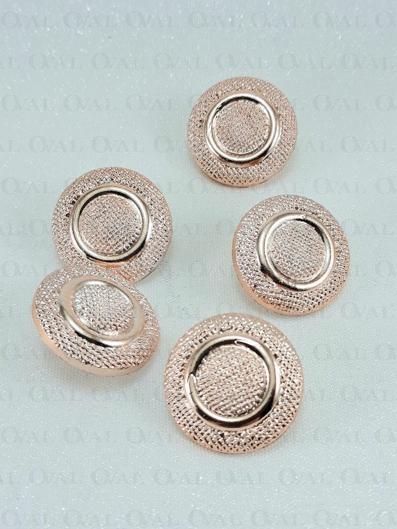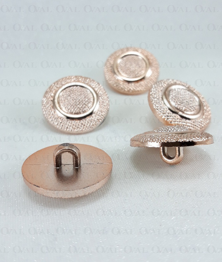 Metallic button on a shank in rose gold colour.