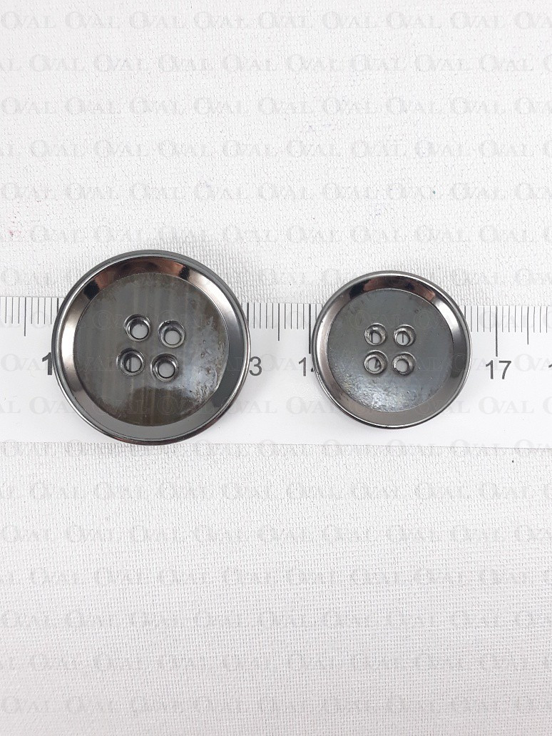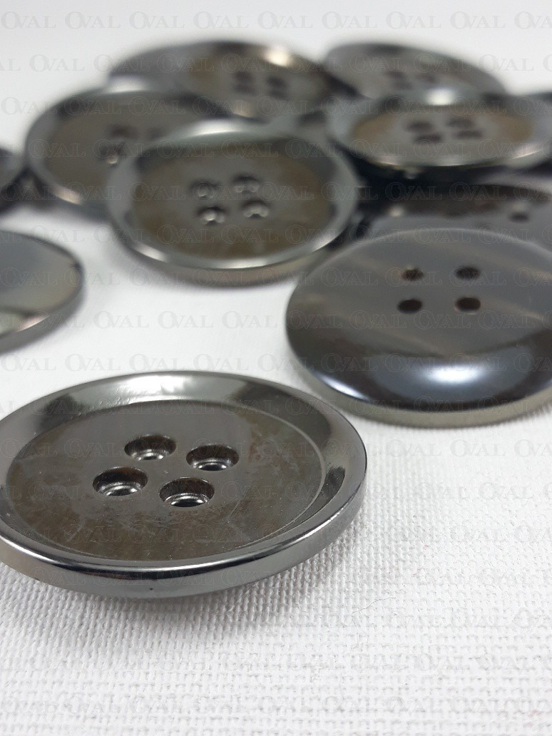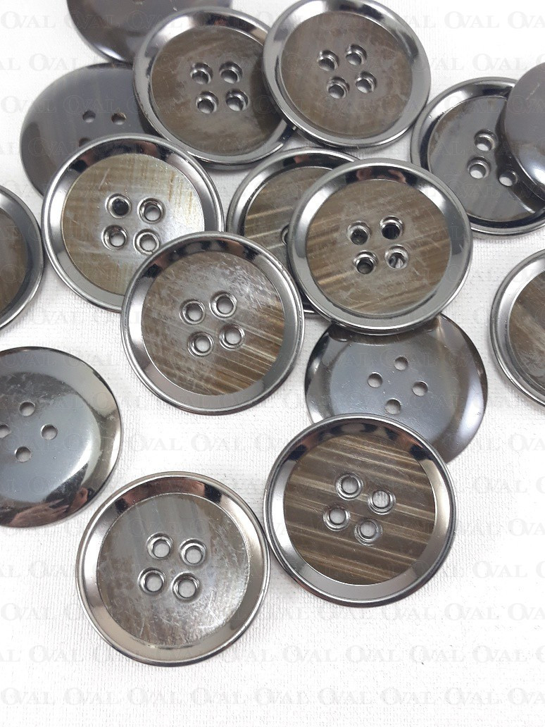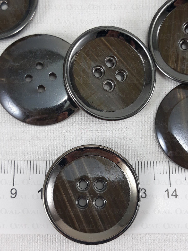 Plastic button with a metalised rim.