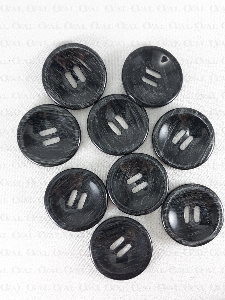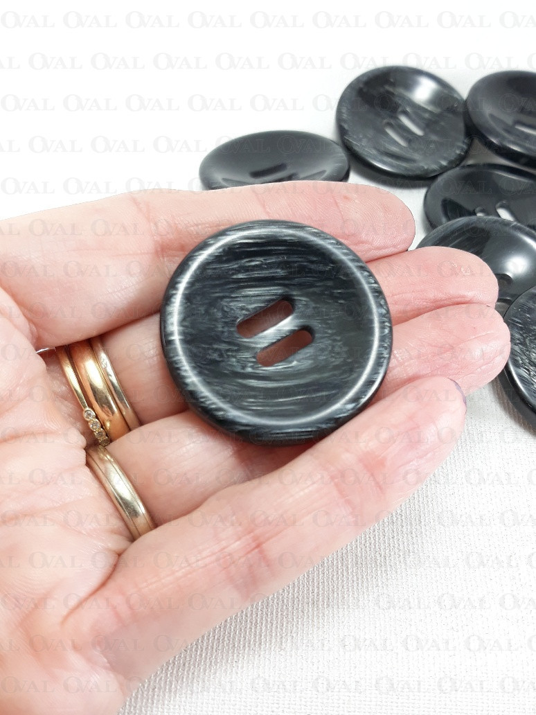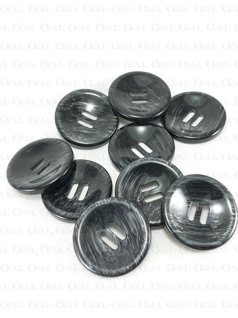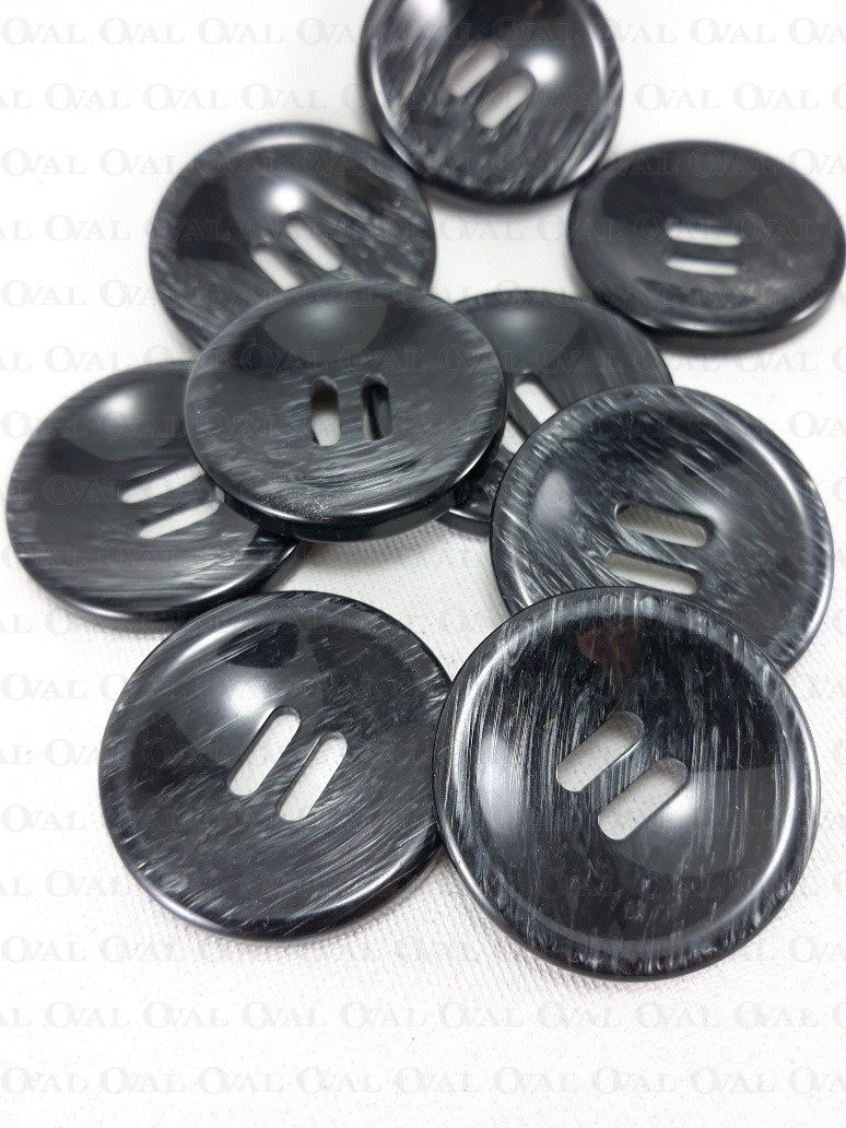 Beautiful, glossy polyester button in black with grey streaks.
