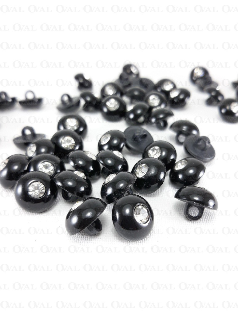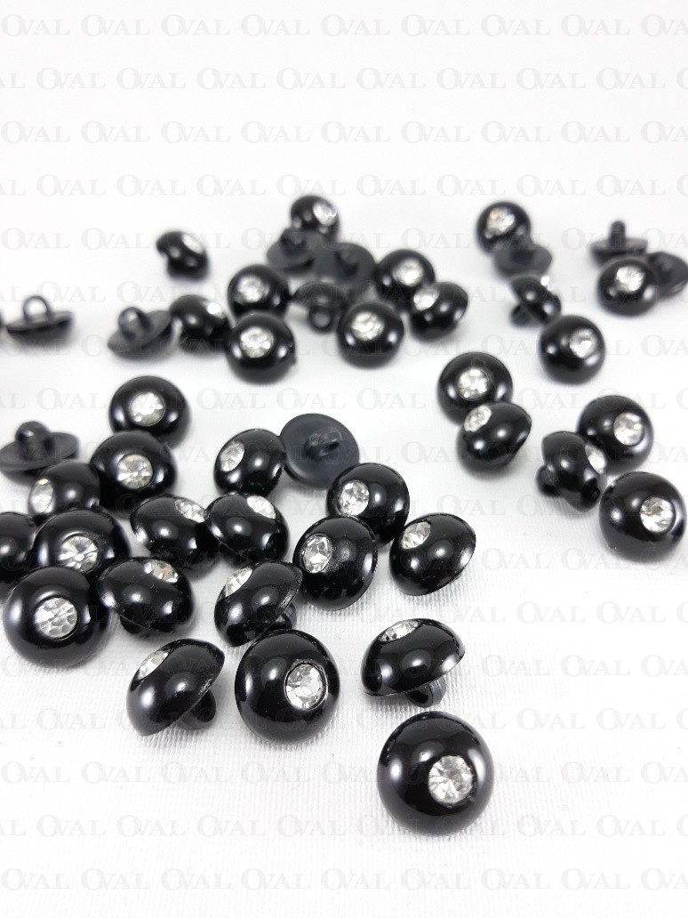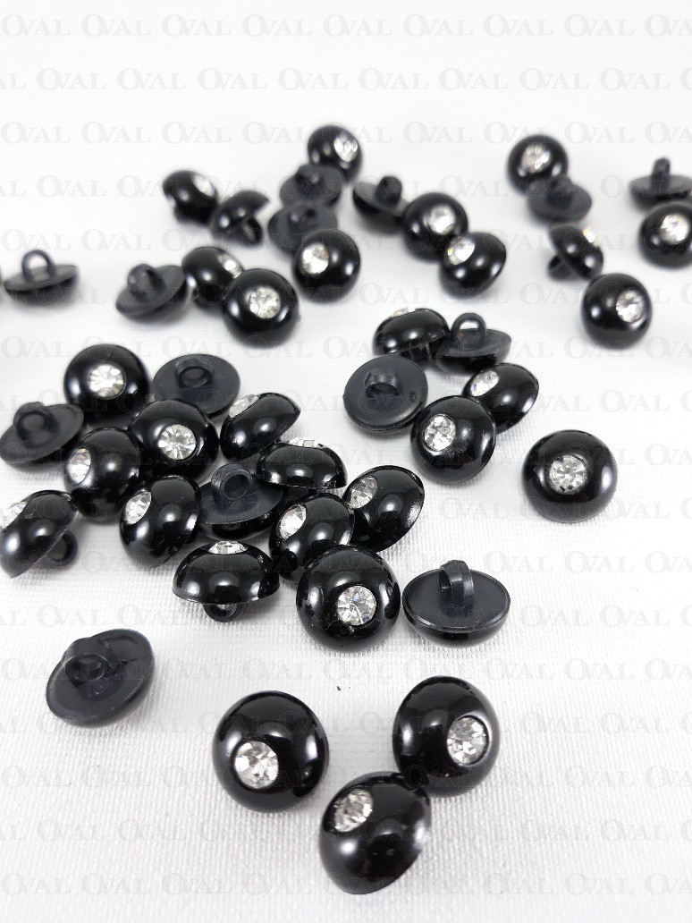 Black glossy plastic with a rhinestone that beautifully reflects the light.