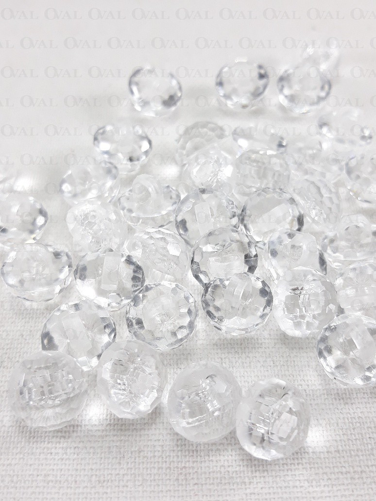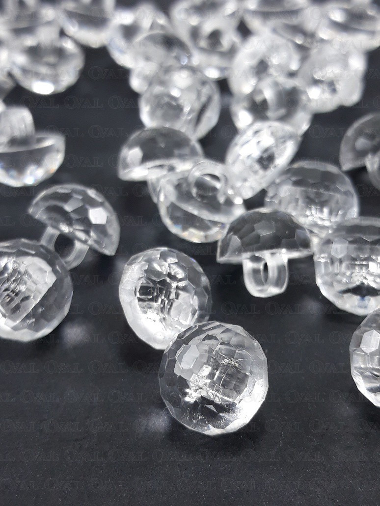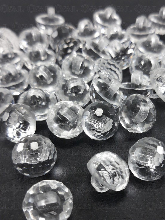 Acrylic shank button imitating glass with a “honeycomb” cut