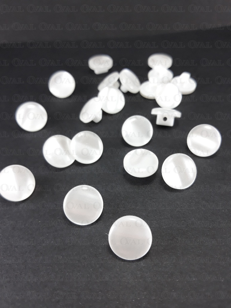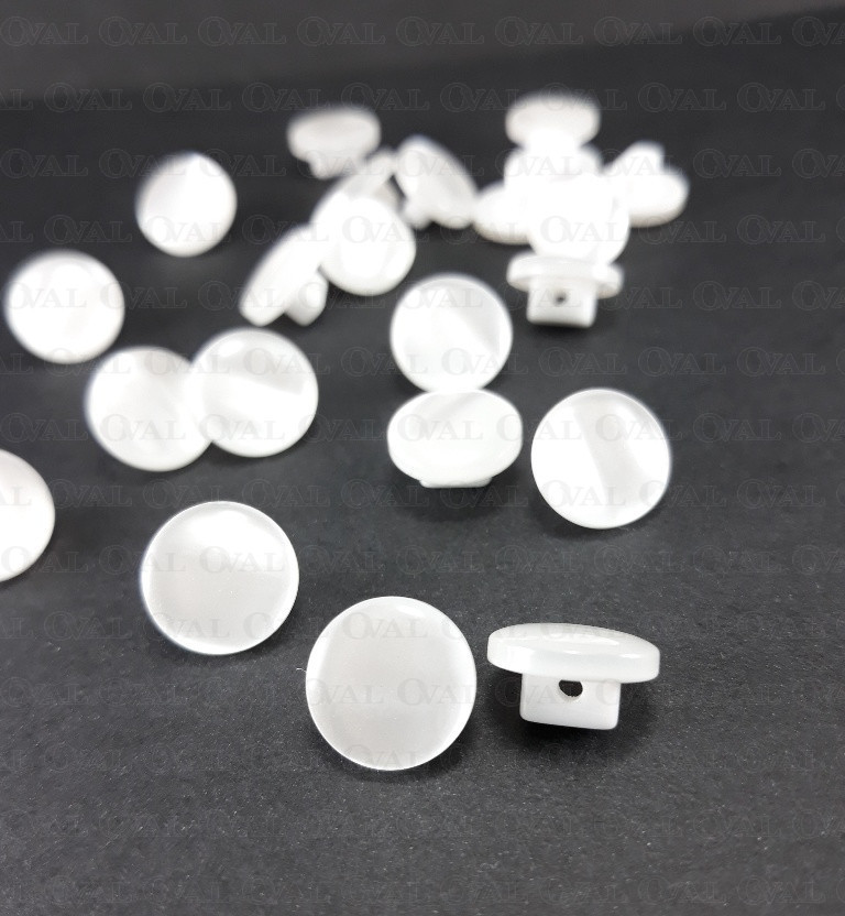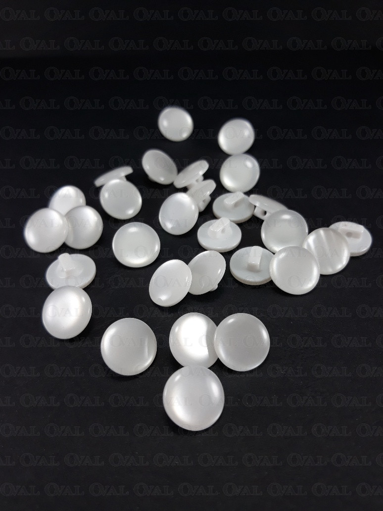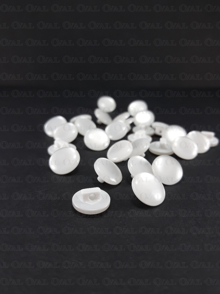 Polyester buttons, pearl on a white base.