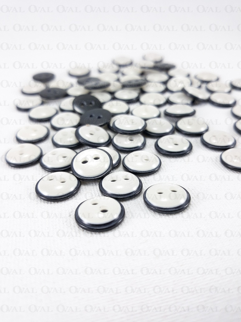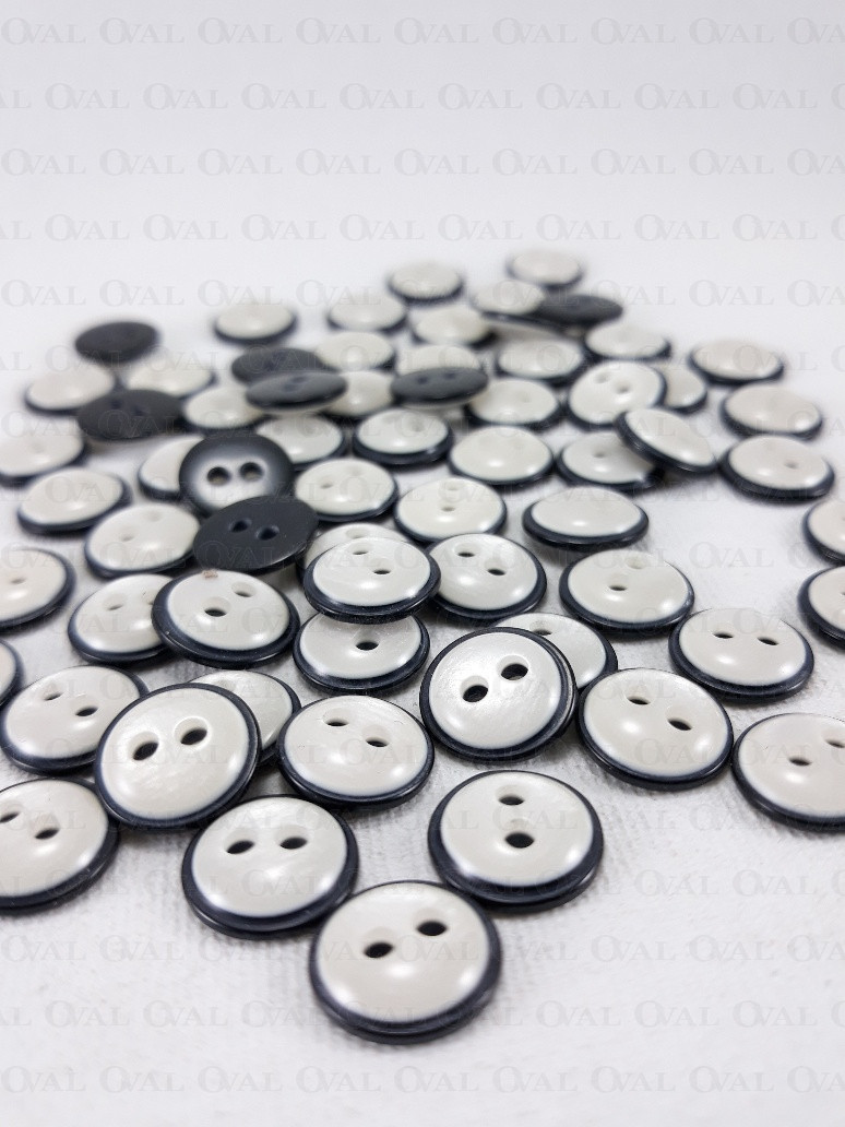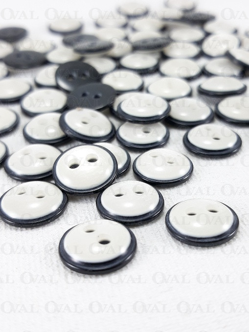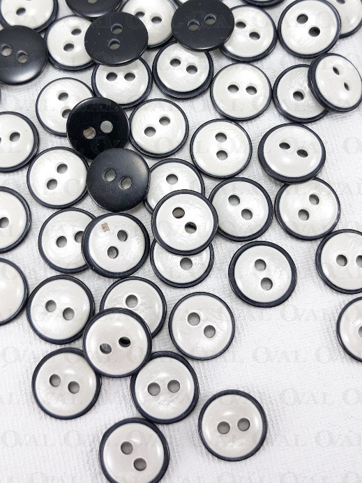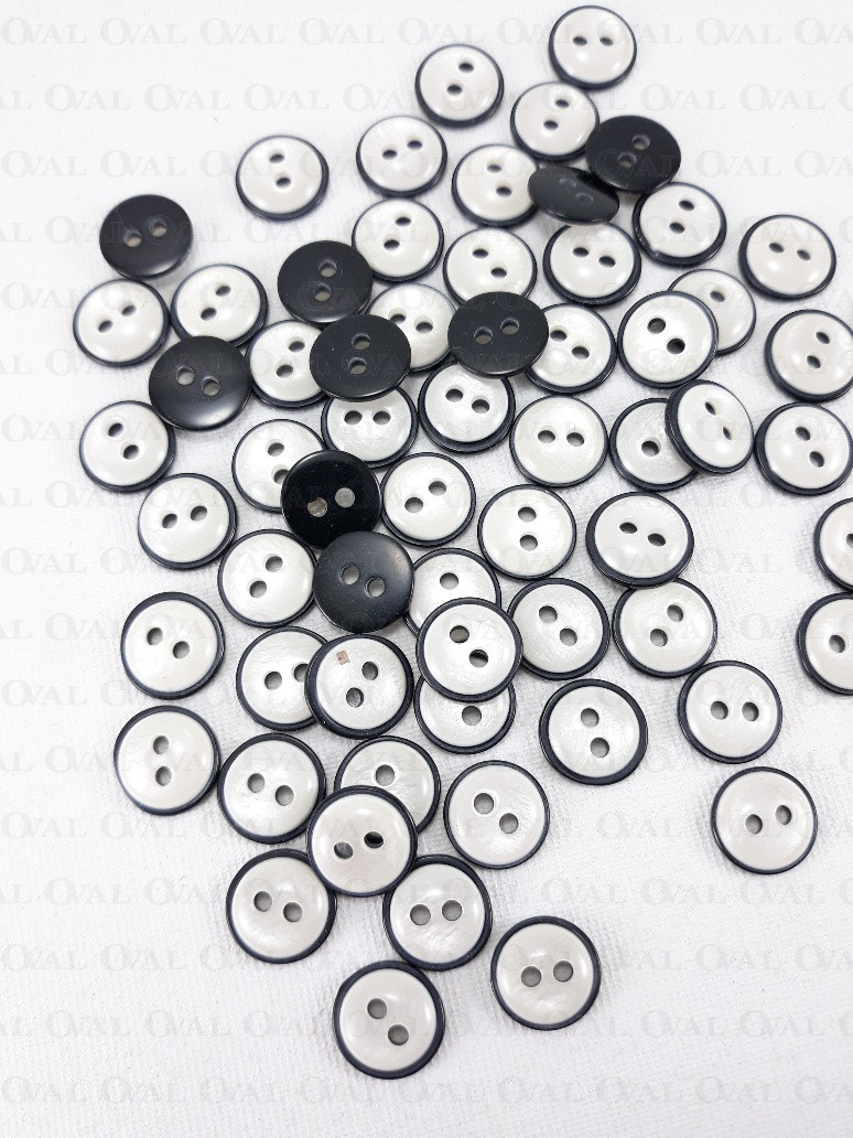 Polyester buttons in black with white mother-of-pearl