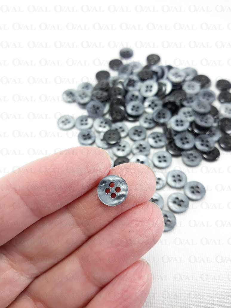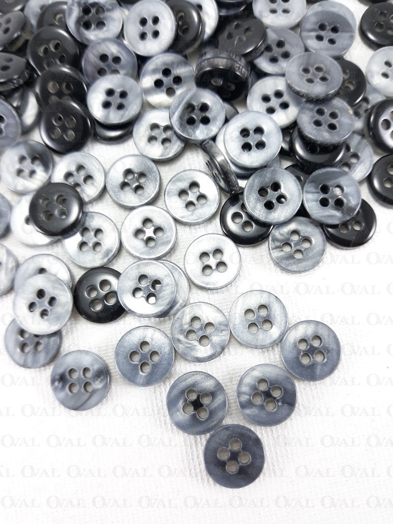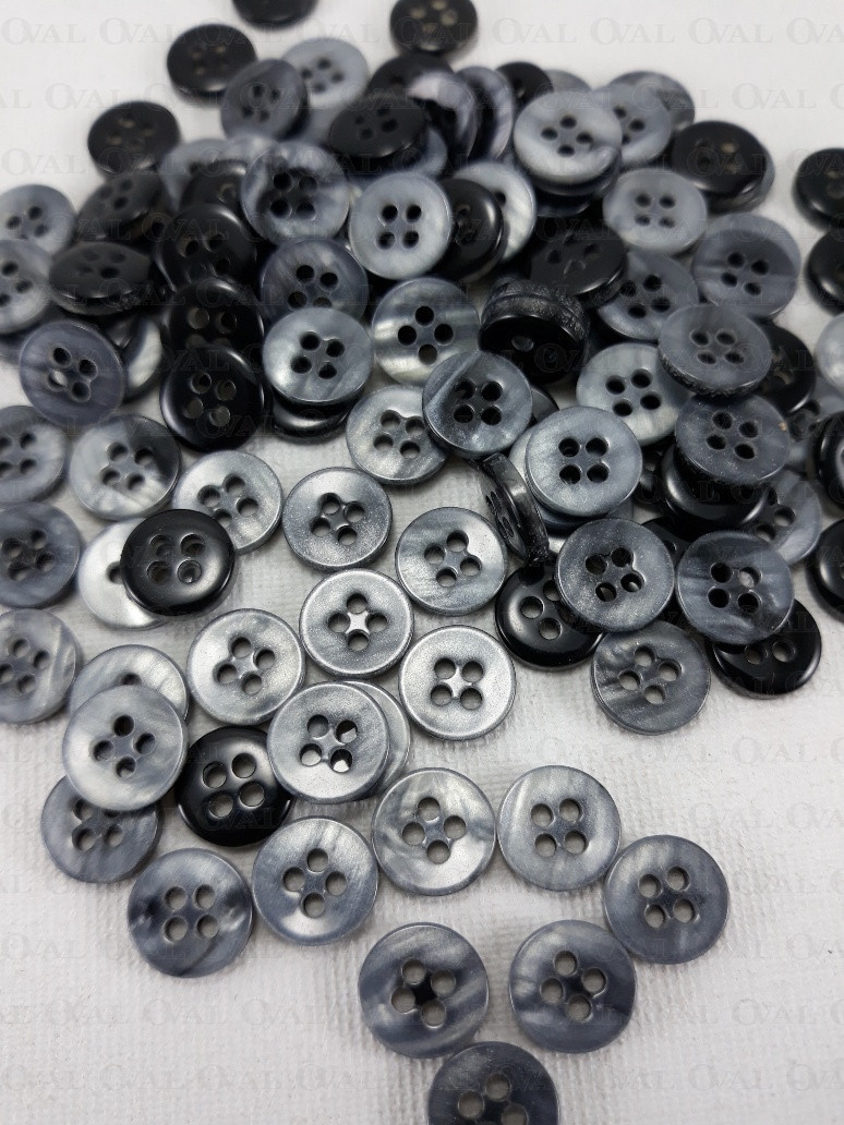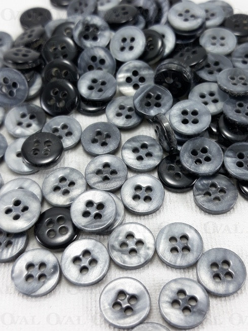 Polyester buttons in grey, two-layer with a pearlescent coating