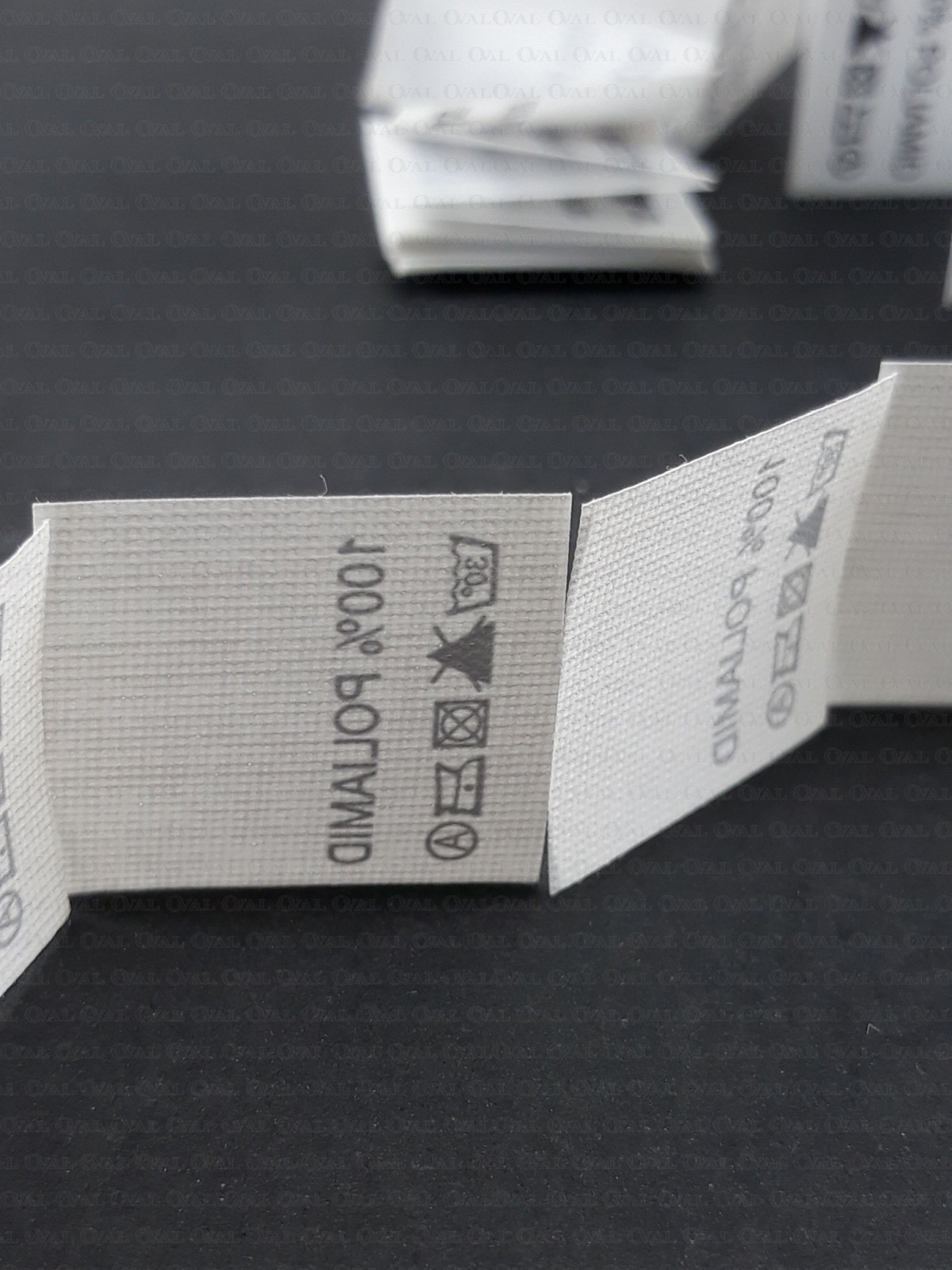 Clothing label containing the fibre composition and the washing instructions for the sewn product.
