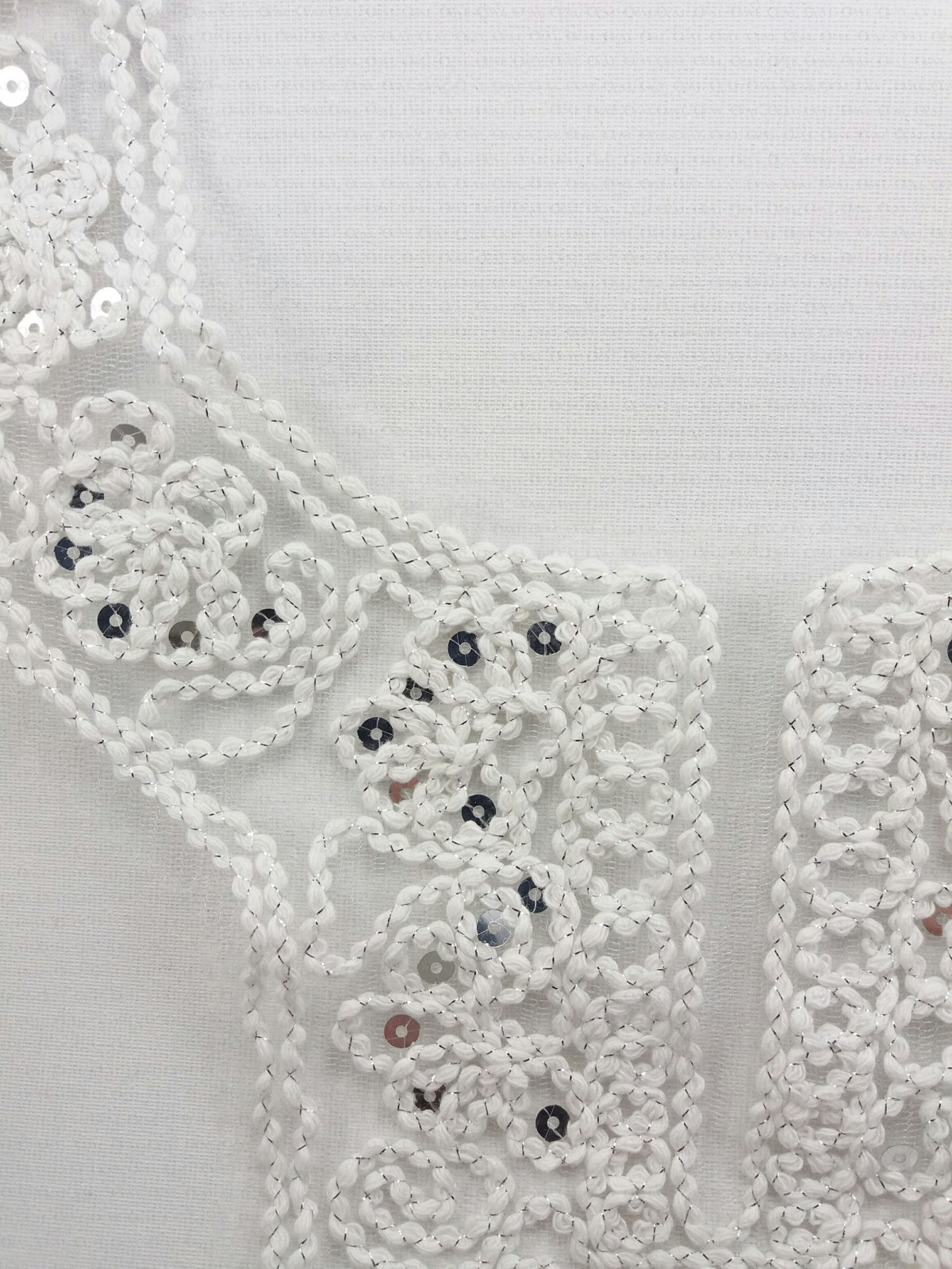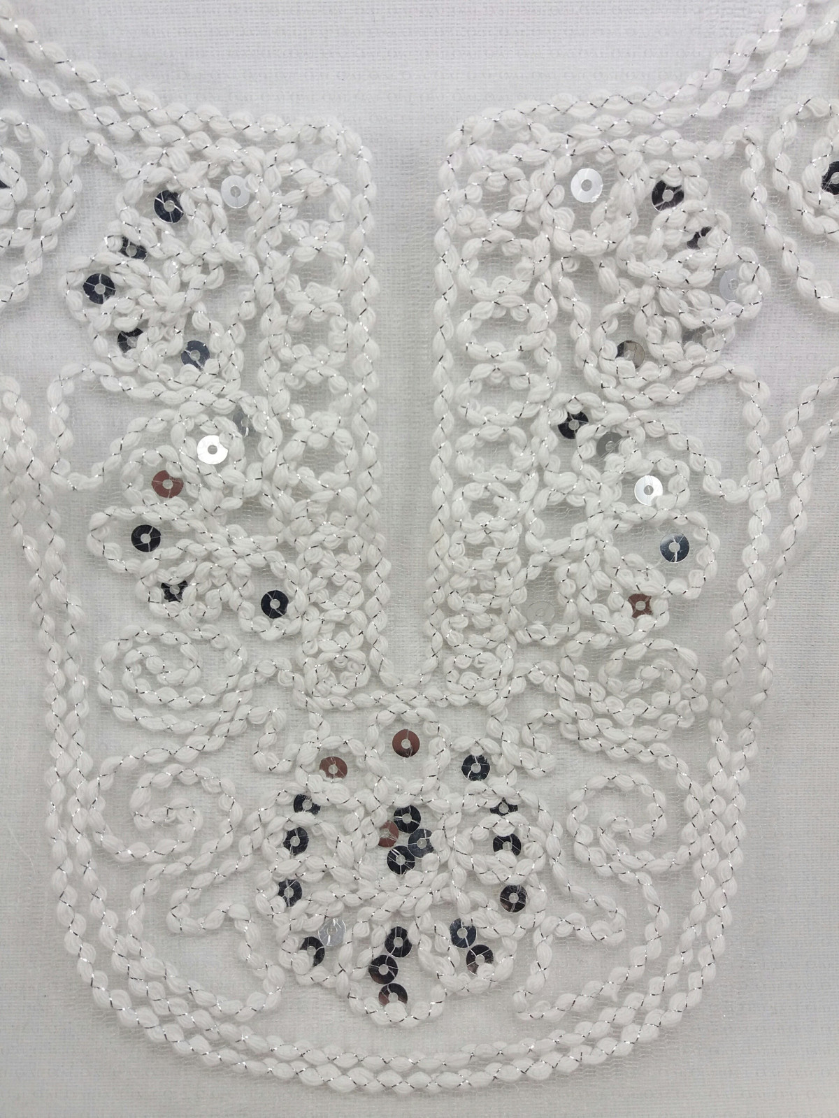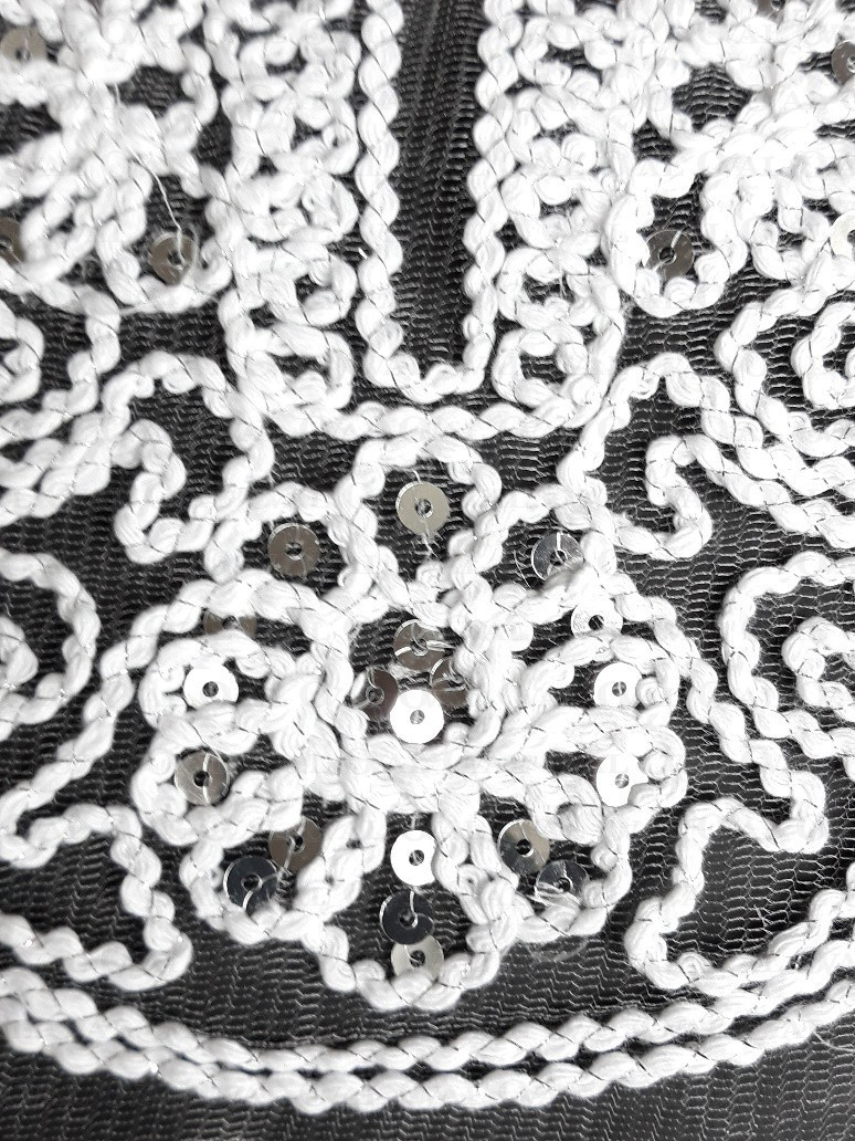 Please do not rely on the photo as far as the colour of the sequins is concerned; in reality they are light silver.