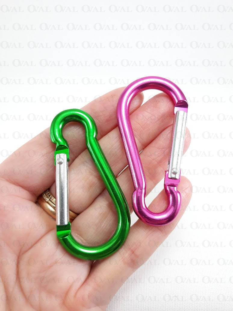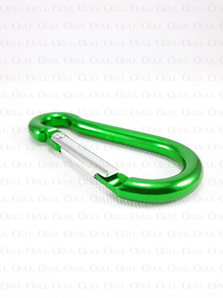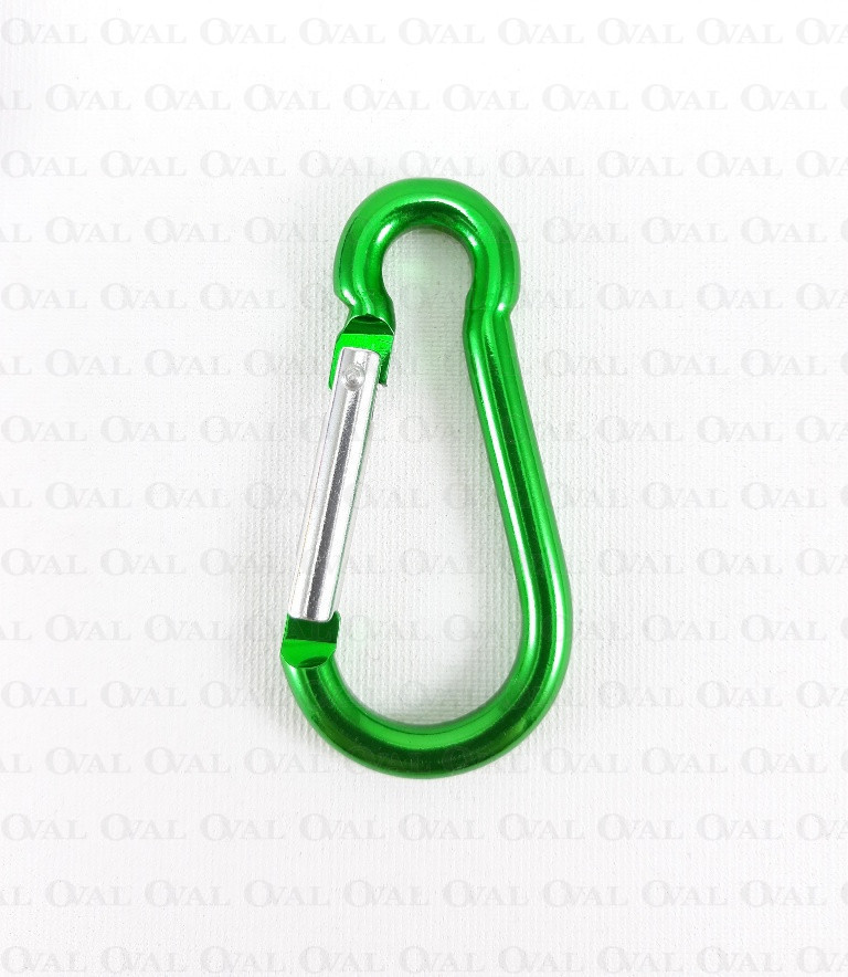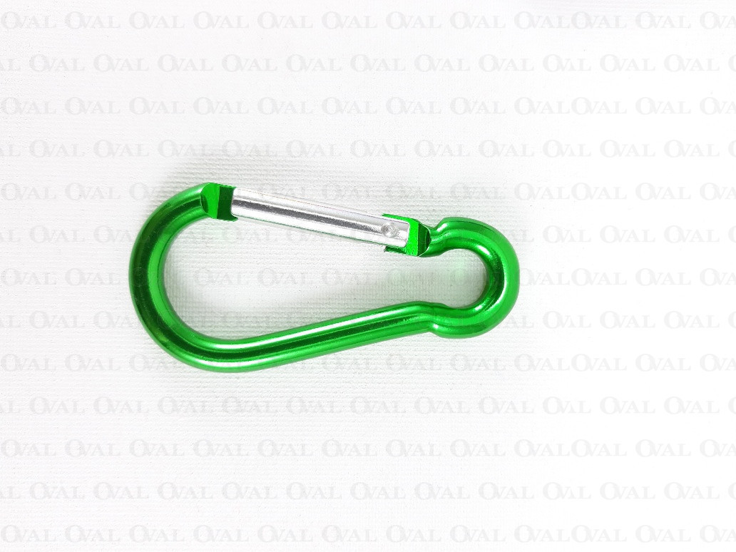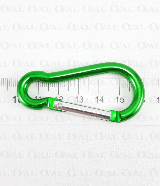Aluminium carabiner in green colour.