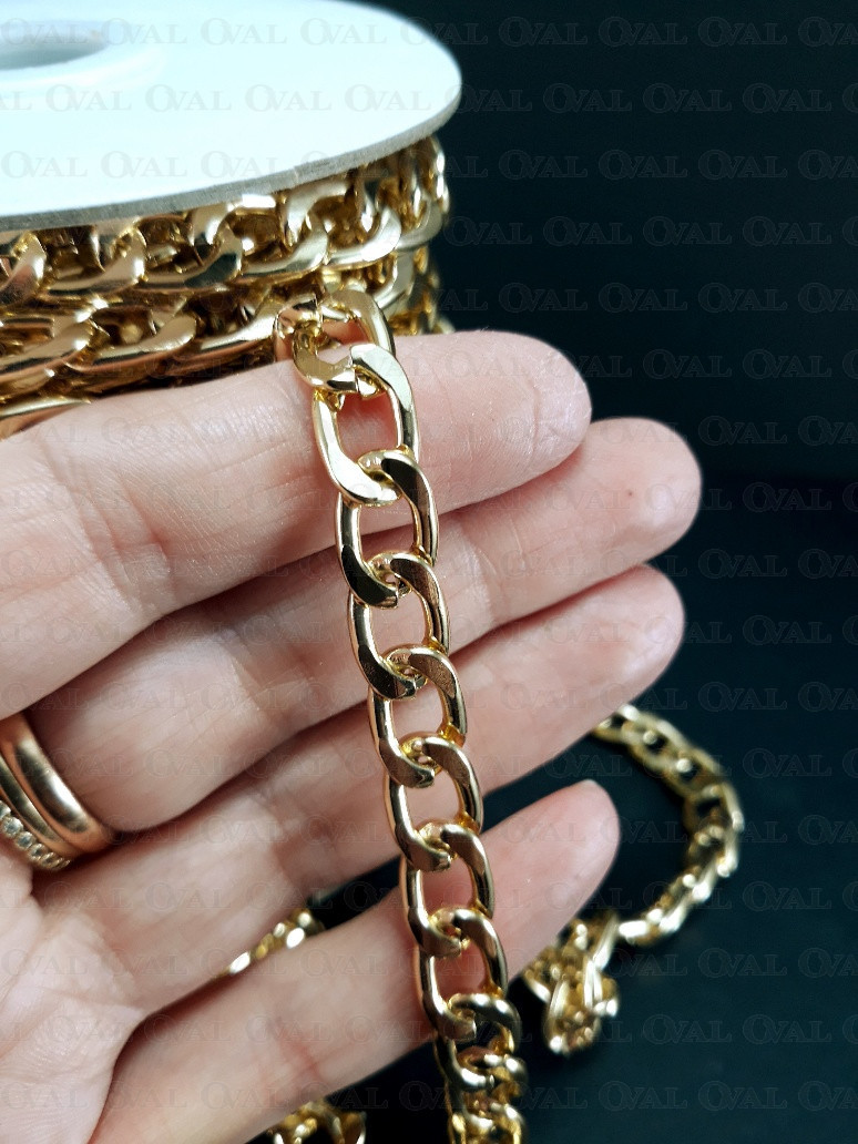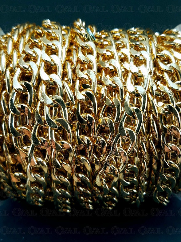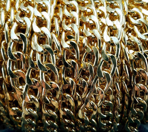 Golden metal chain in a nice, warm shade of gold.