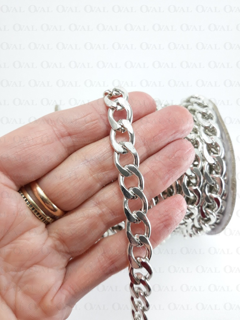 Silver metal chain.