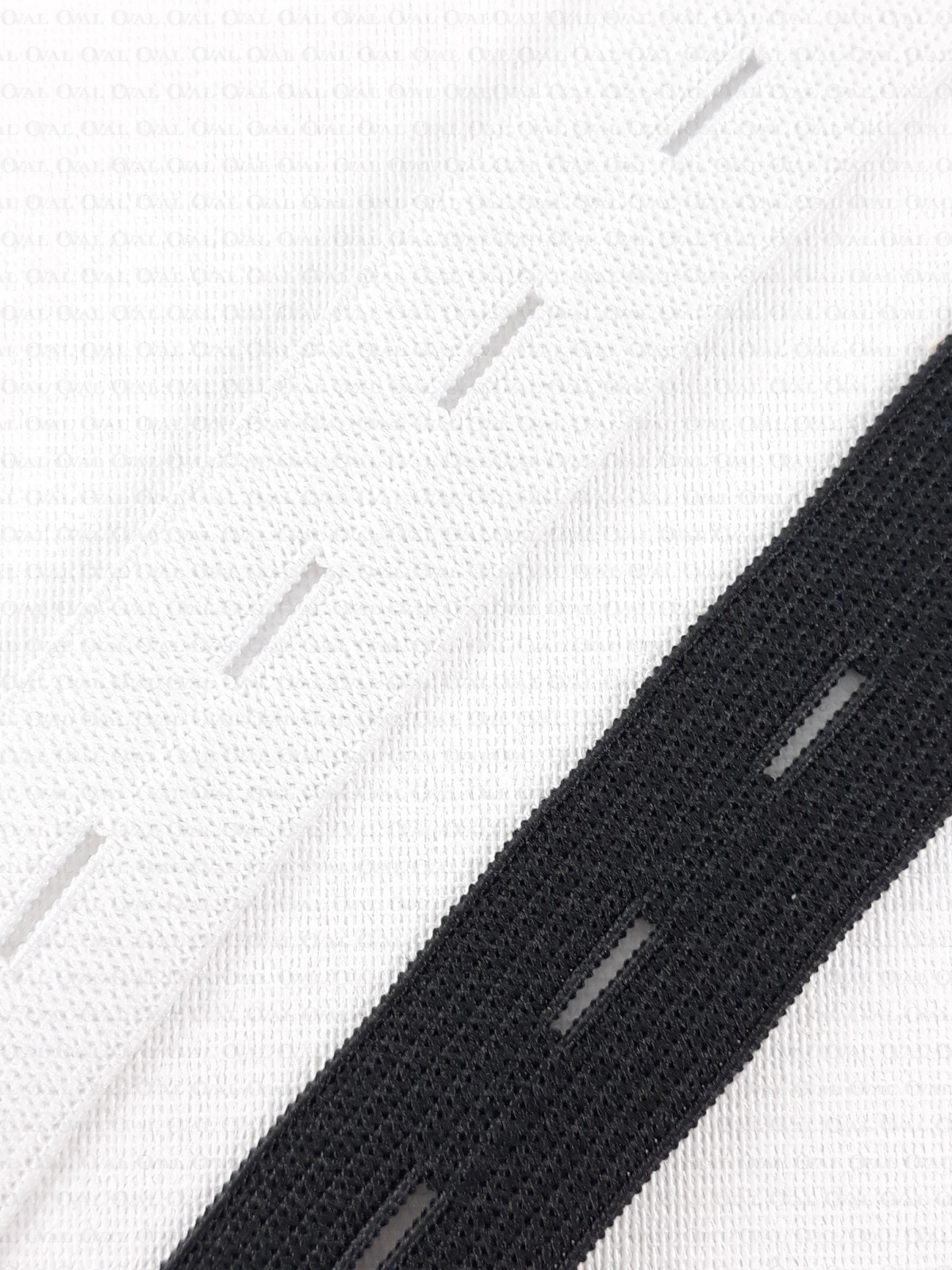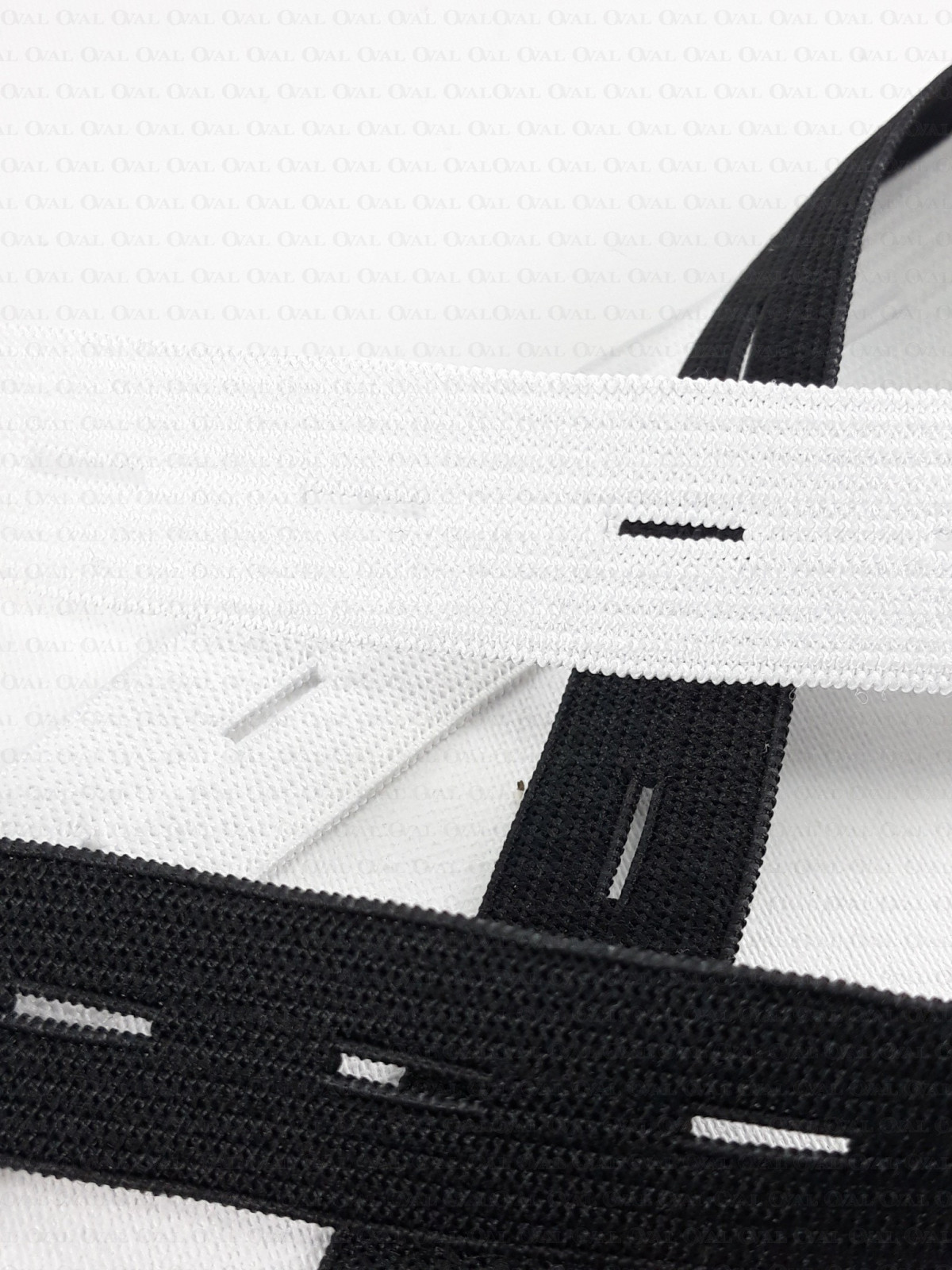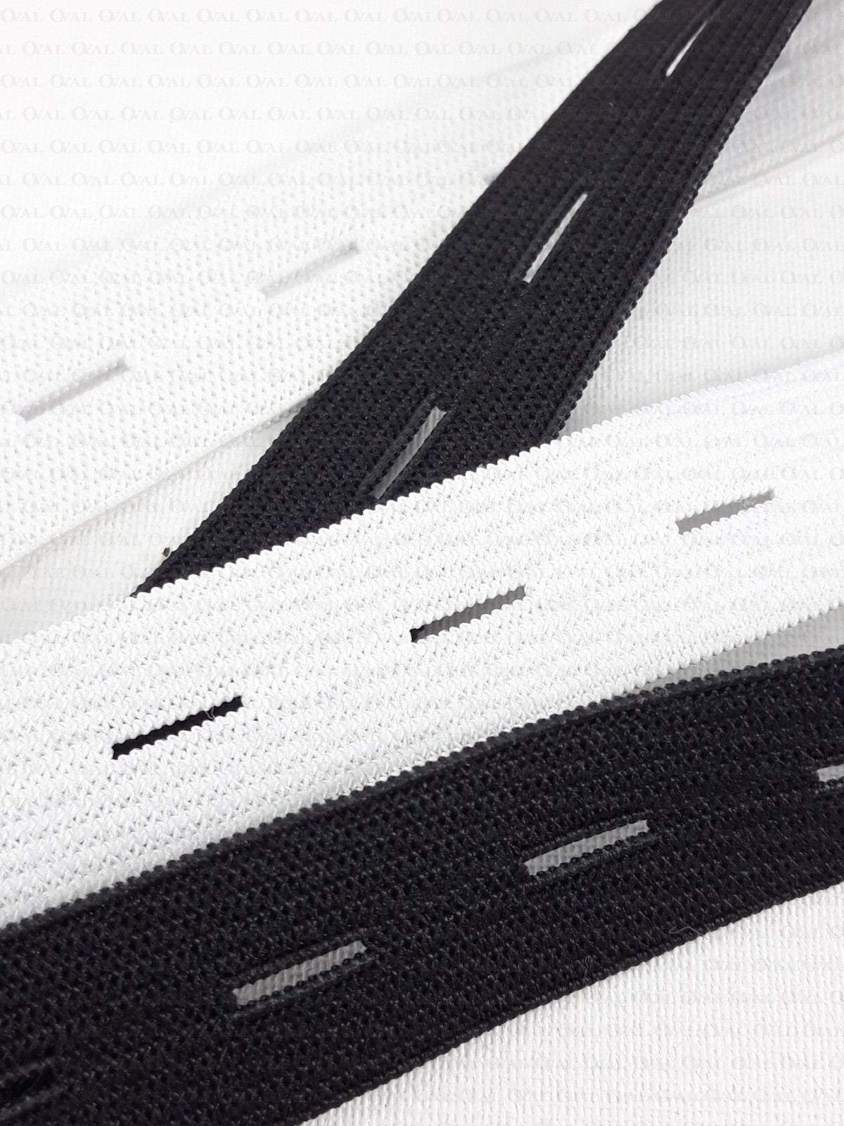 Due to the easy adjustment of circumference by moving buttons through the holes in the elastic, it is useful not only in maternity wear – also in children’s clothing and in situations of frequent weight changes.