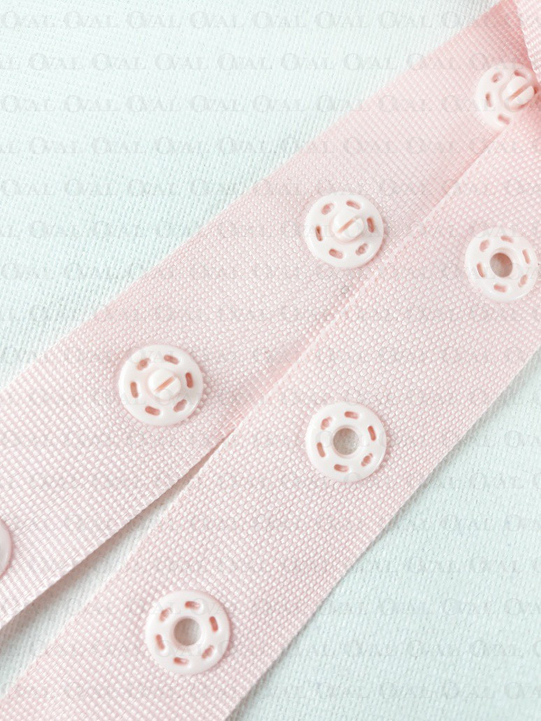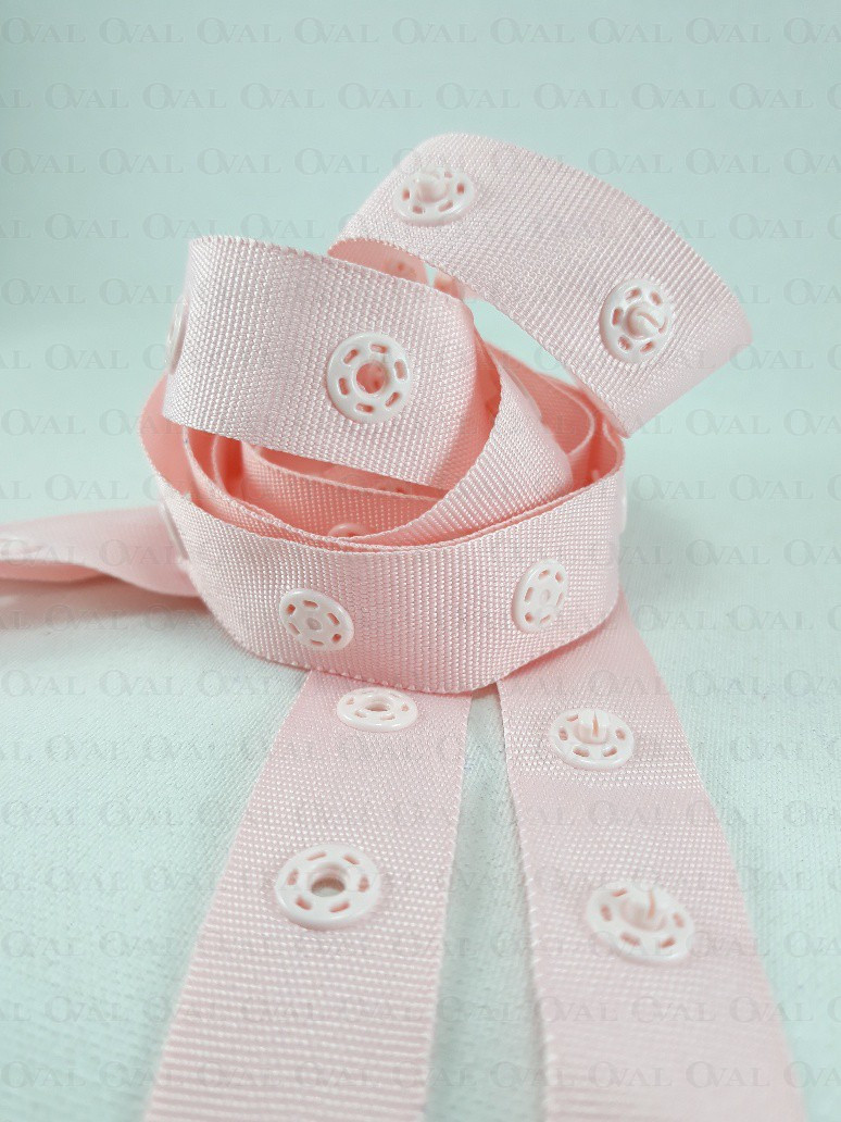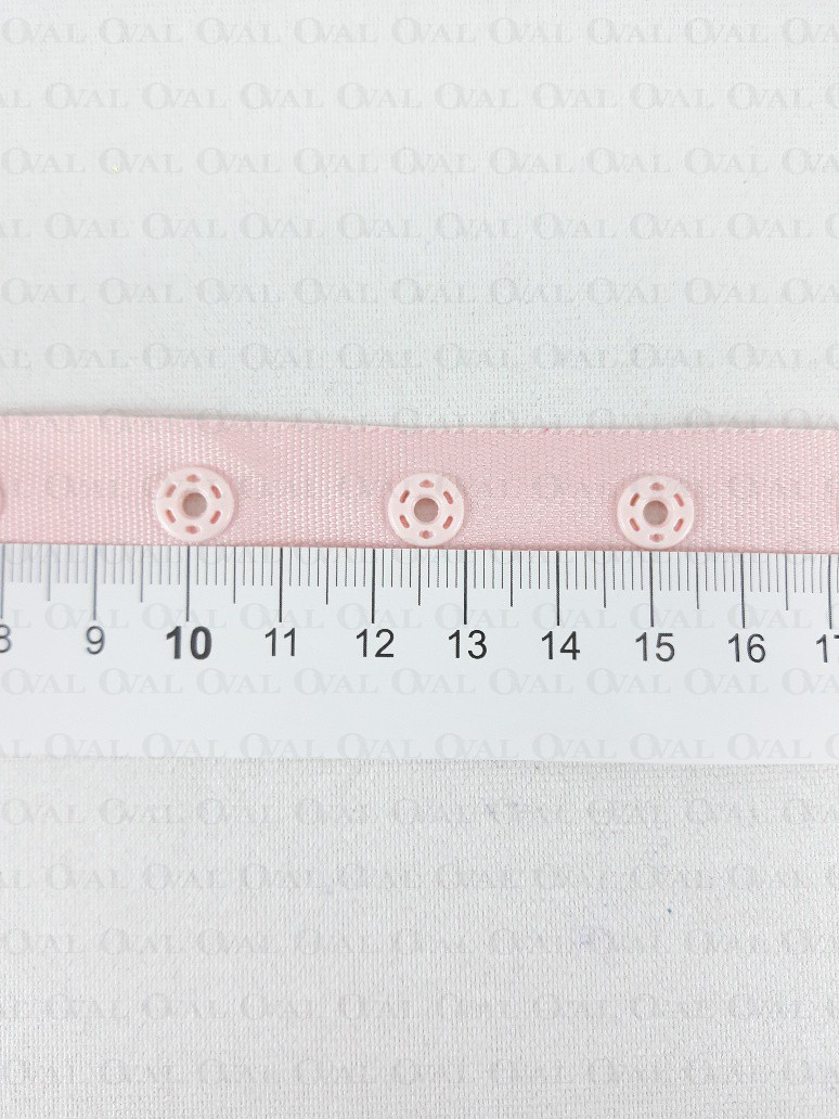 Plastic snaps on a tape, placed evenly every 25 mm (measured from the centre of one snap to the centre of the next)