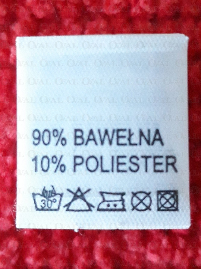 Clothing label containing the fibre composition and the washing instructions for the sewn product.