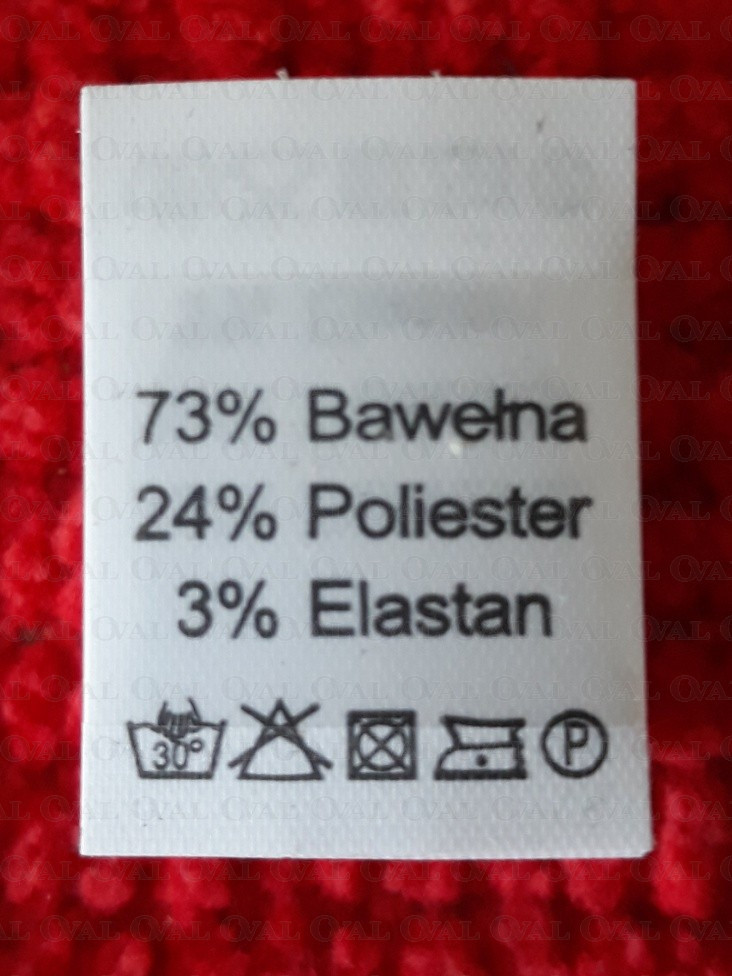 Clothing label containing the fibre composition and the washing instructions for the sewn product.