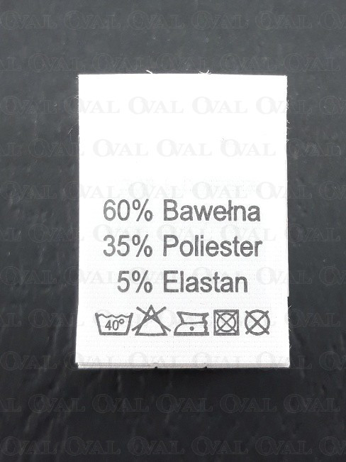 Clothing label containing the fibre composition and the washing instructions for the sewn product.