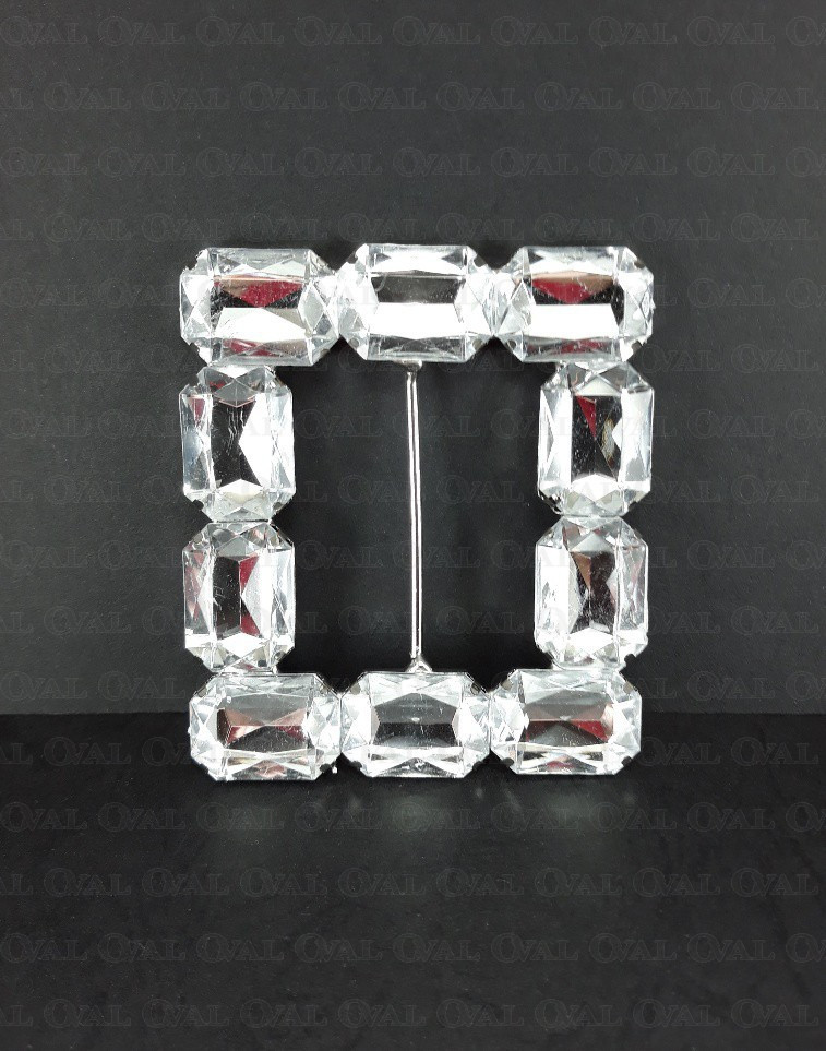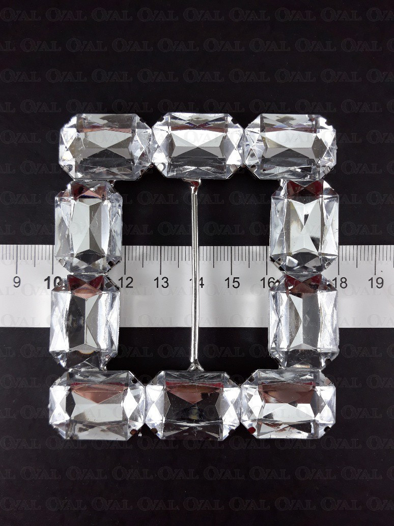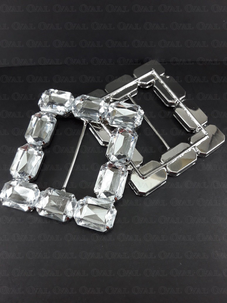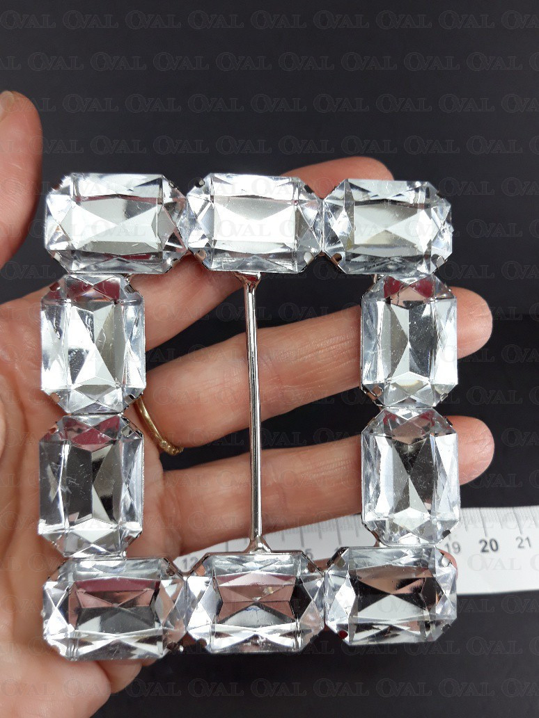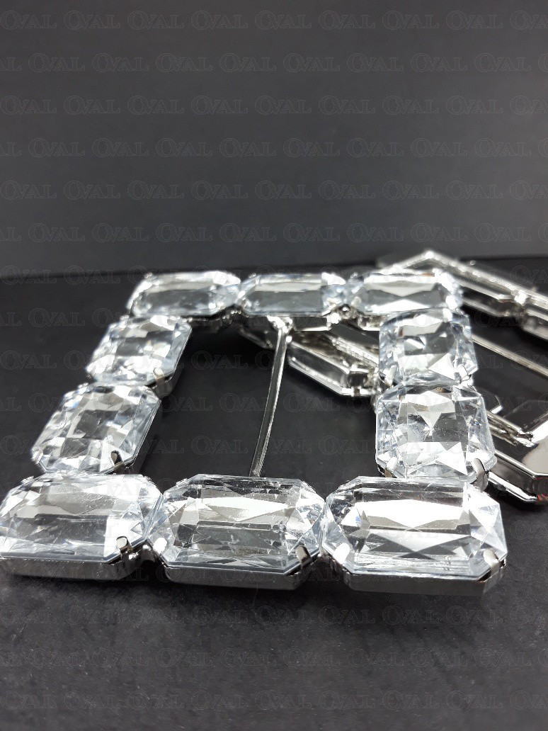 Decorative metal buckle with stones.