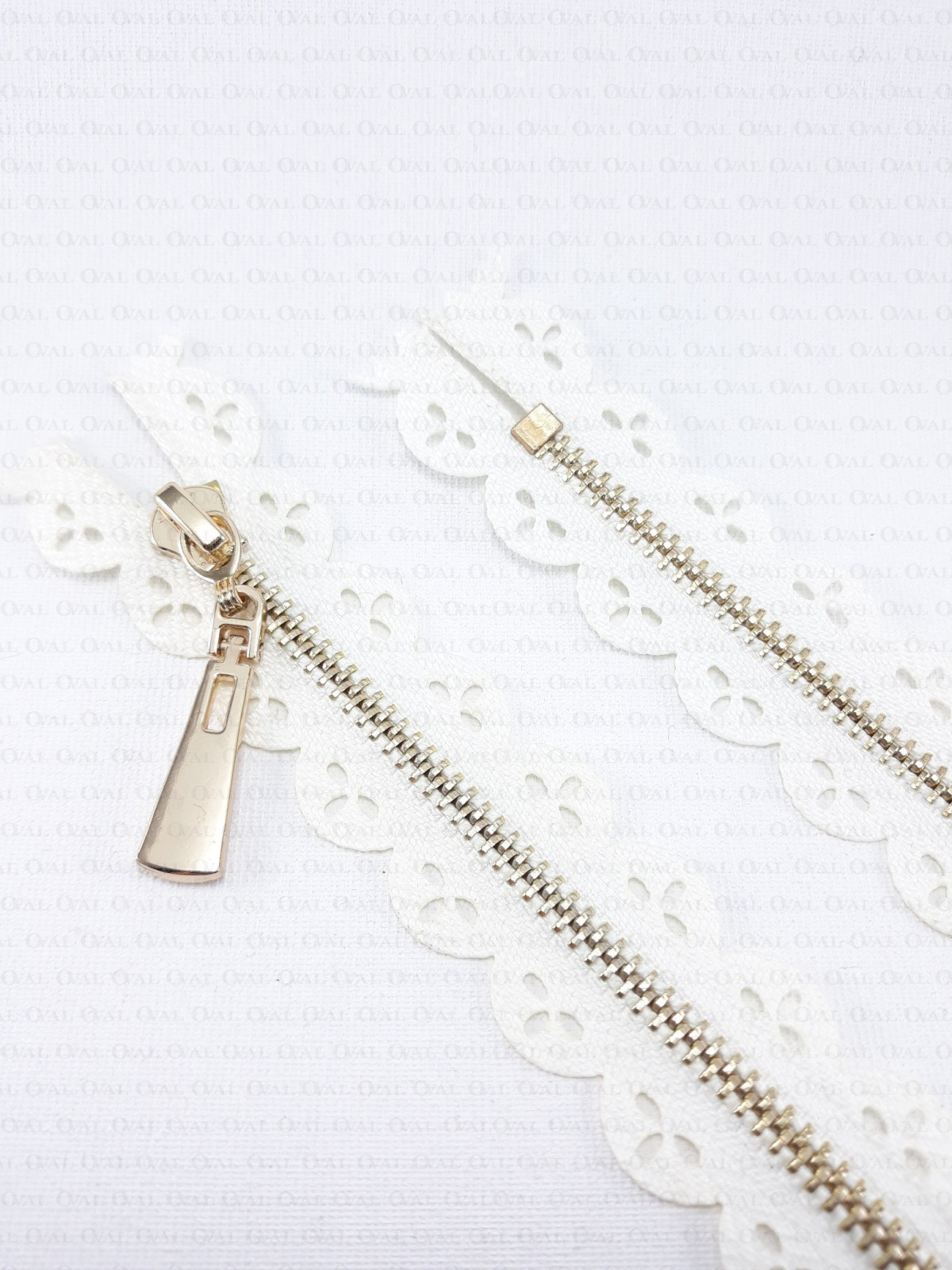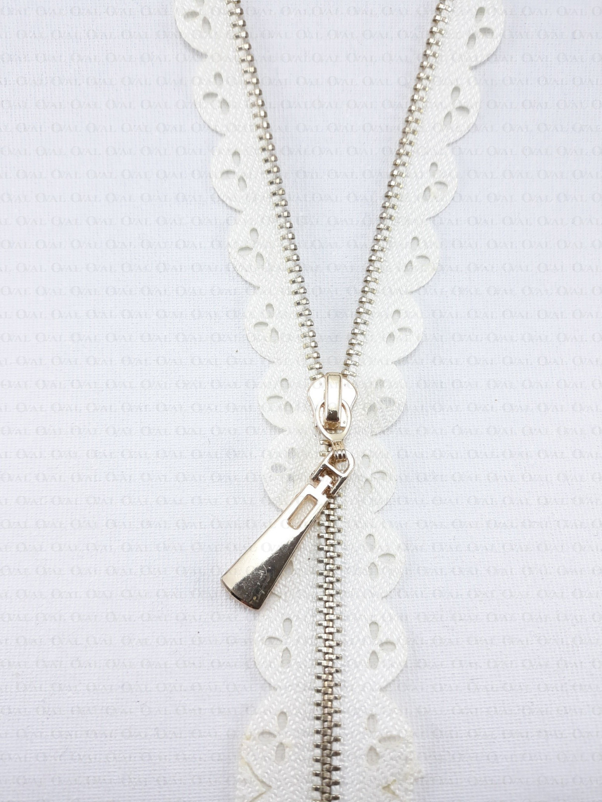 Lacy zip fastener.