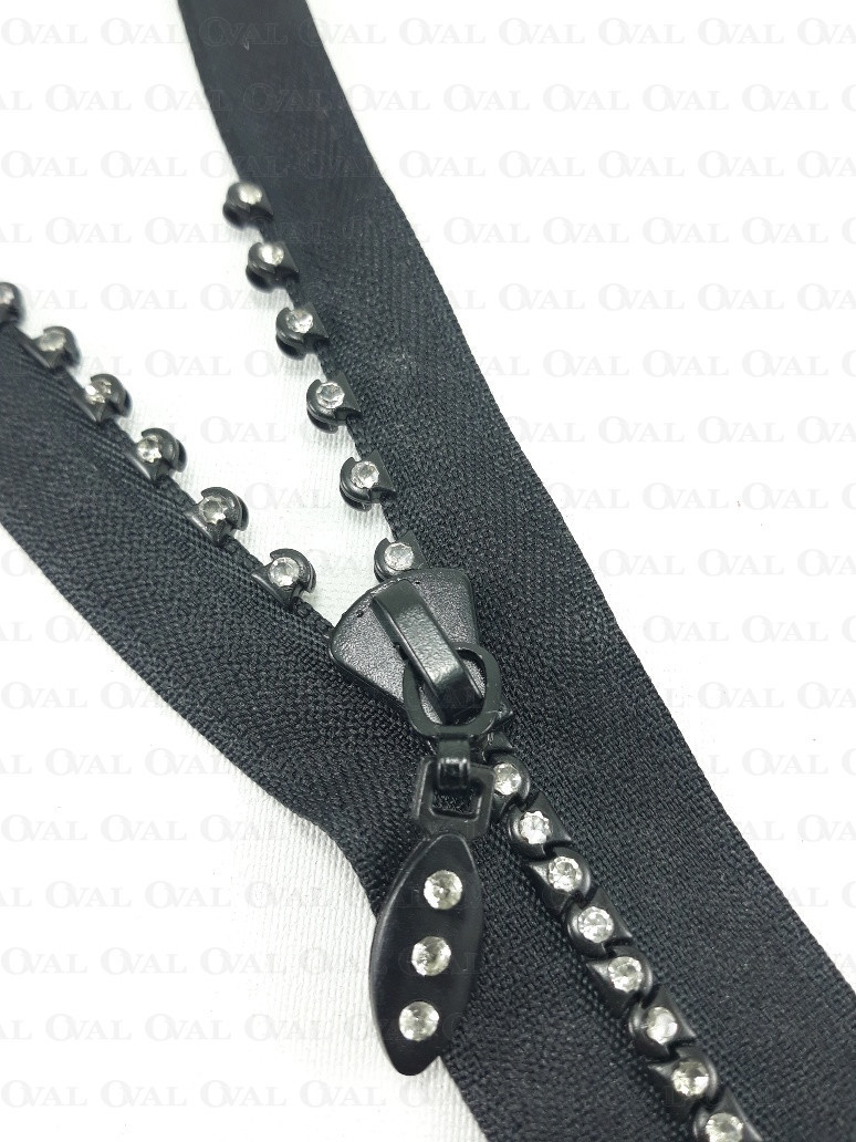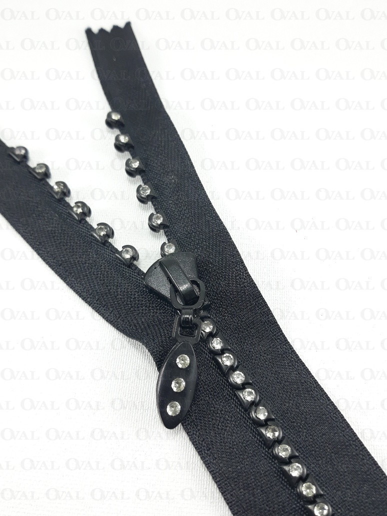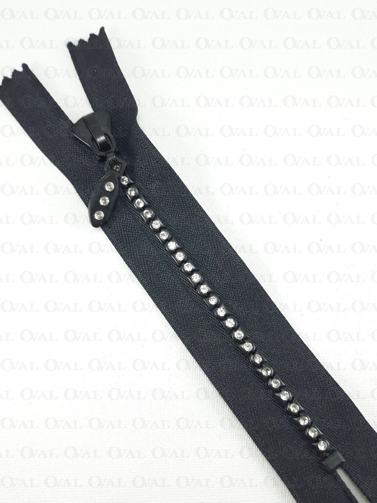 Decorative zip with rhinestones.