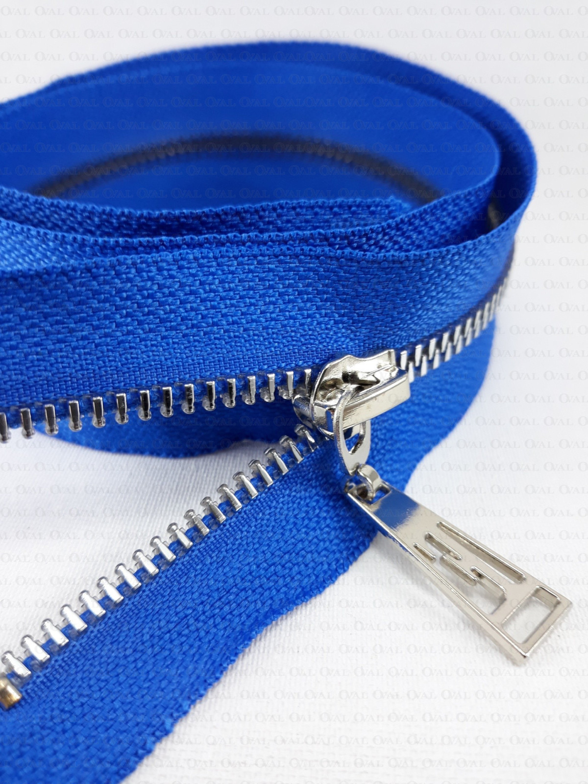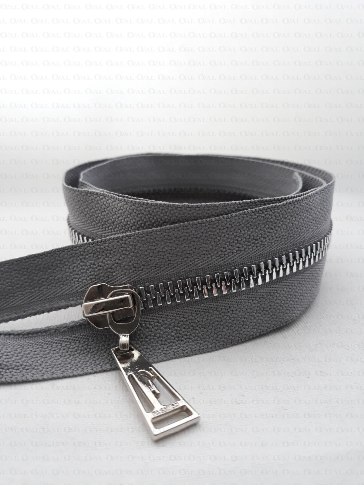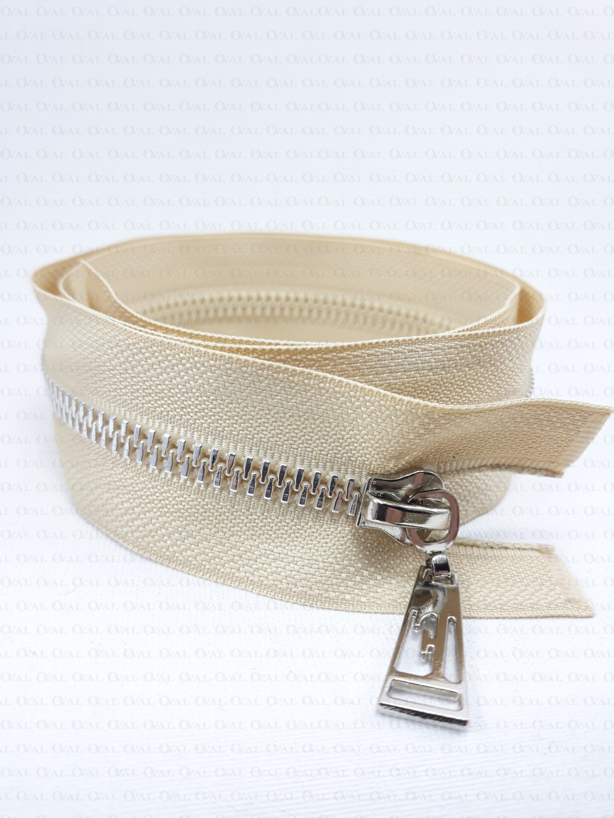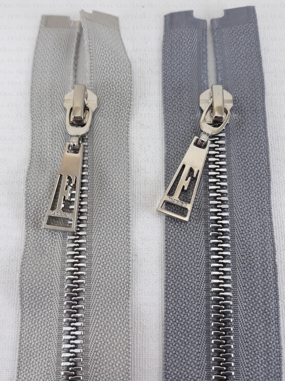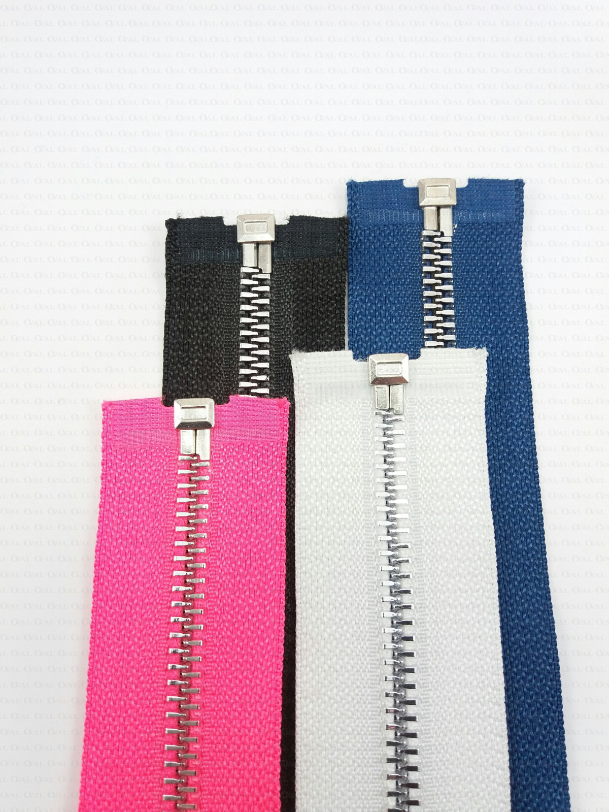 Plastic zip perfectly imitating metal with a beautiful shine and a metal end.