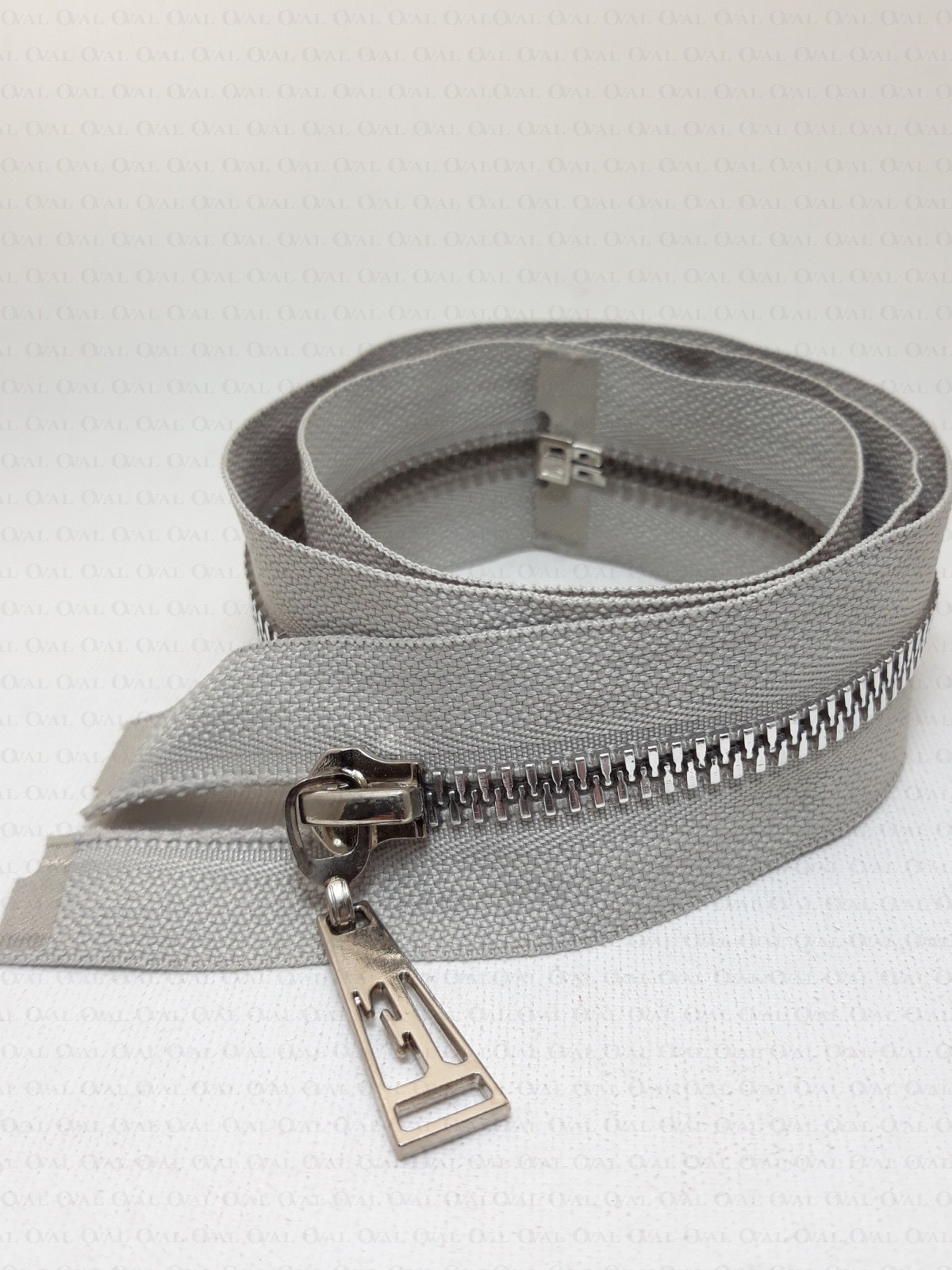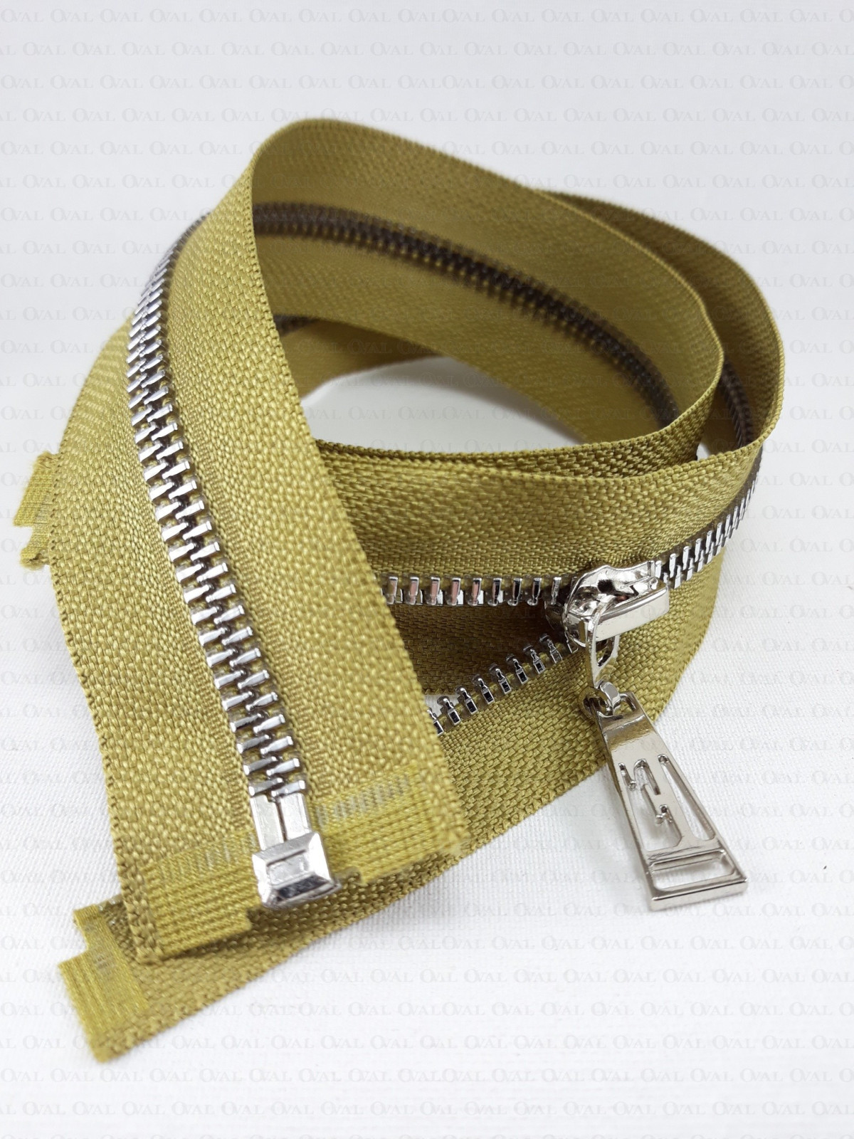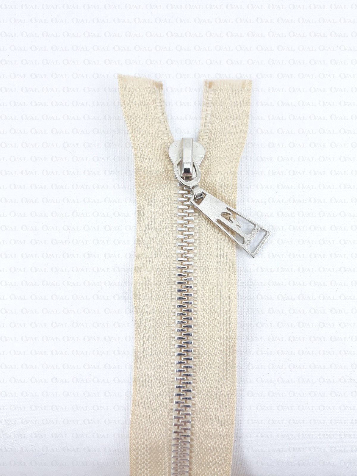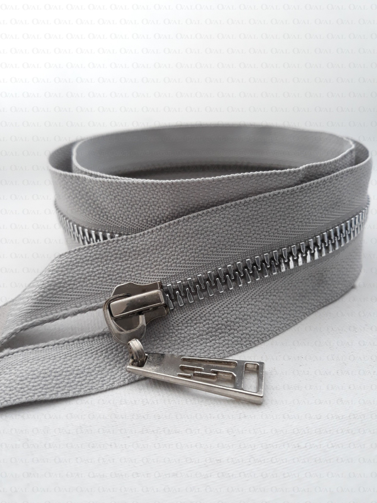 Plastic zip perfectly imitating metal with a beautiful shine and a metal end.
