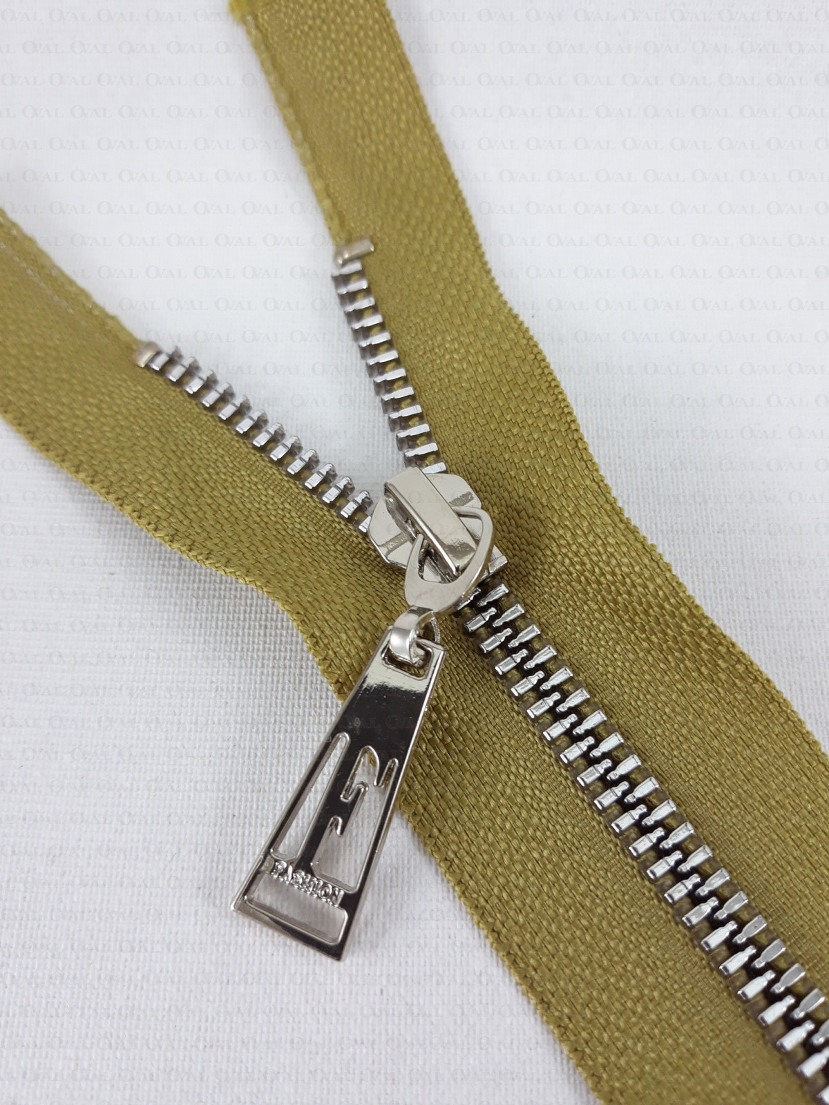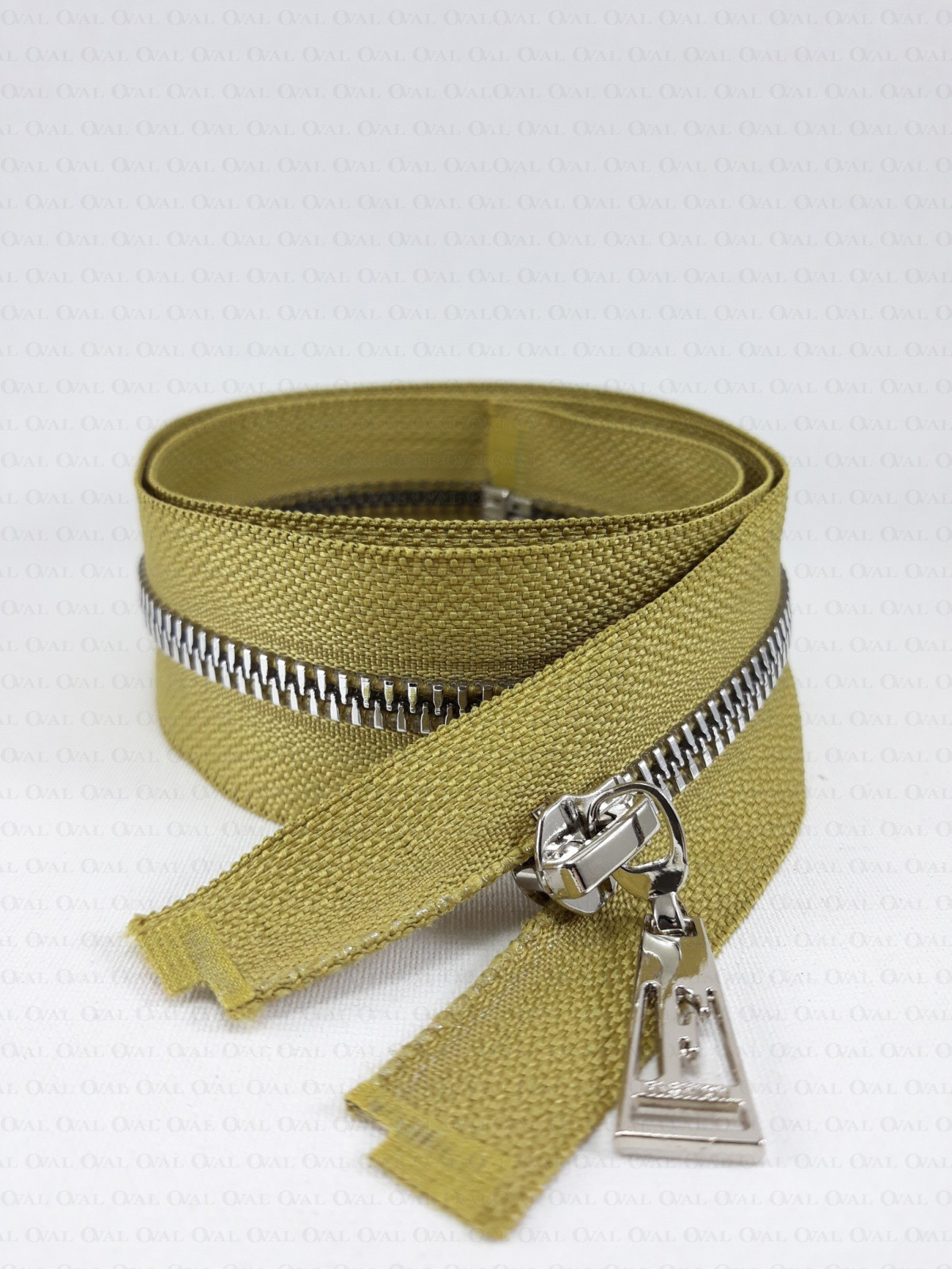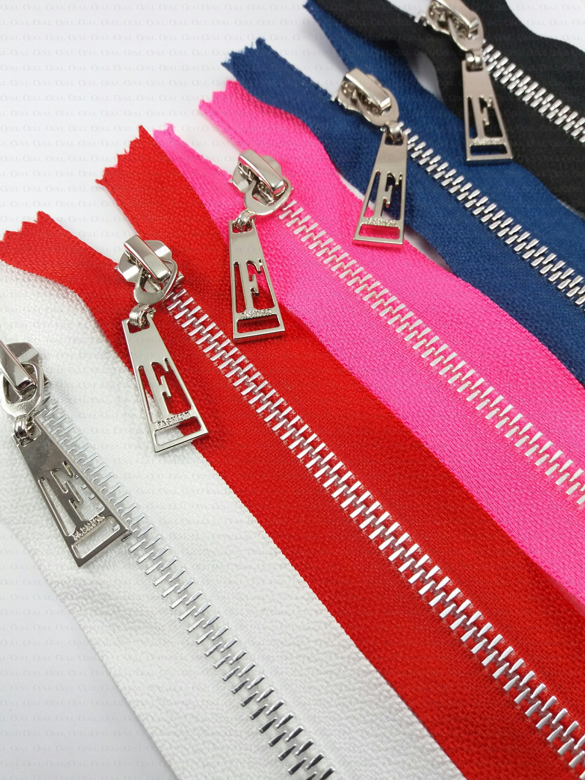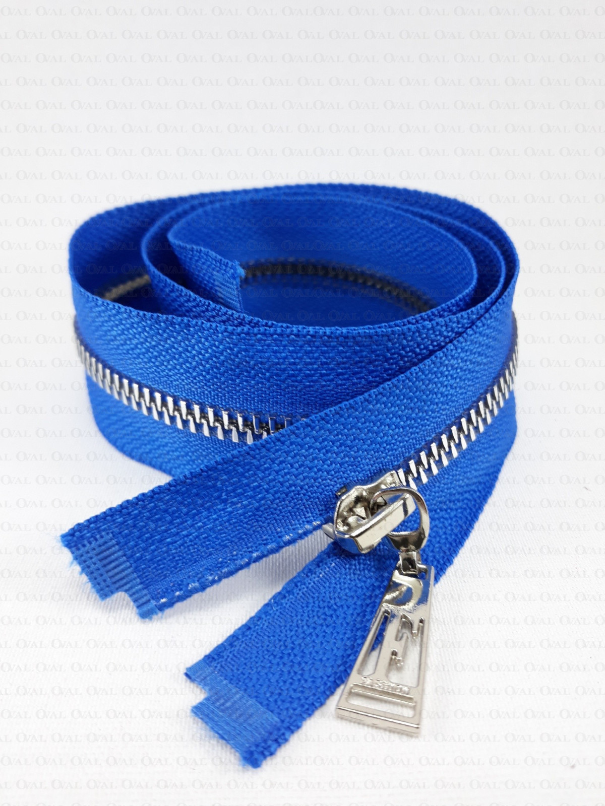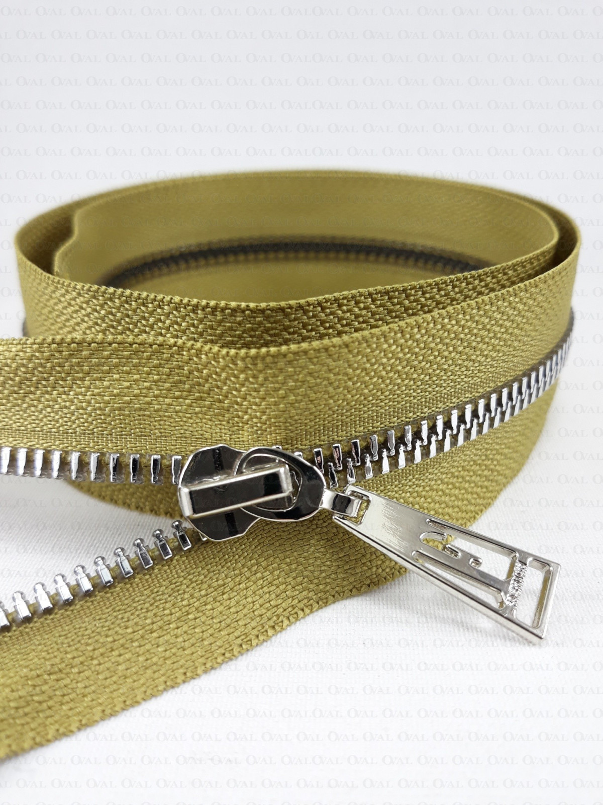Plastic zip perfectly imitating metal with a beautiful shine and a metal end.