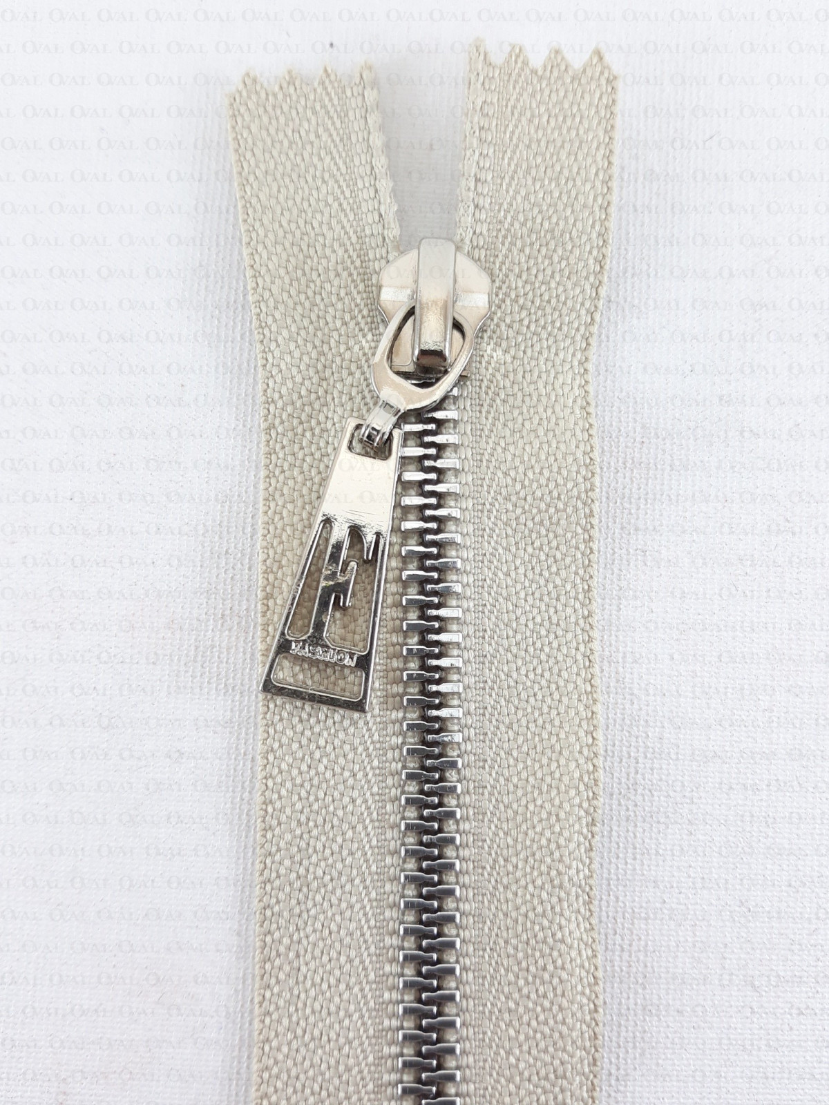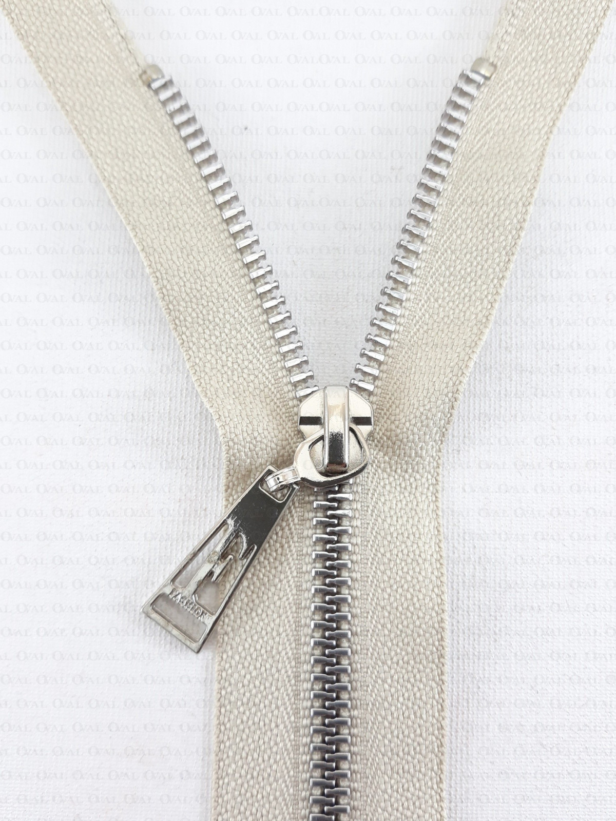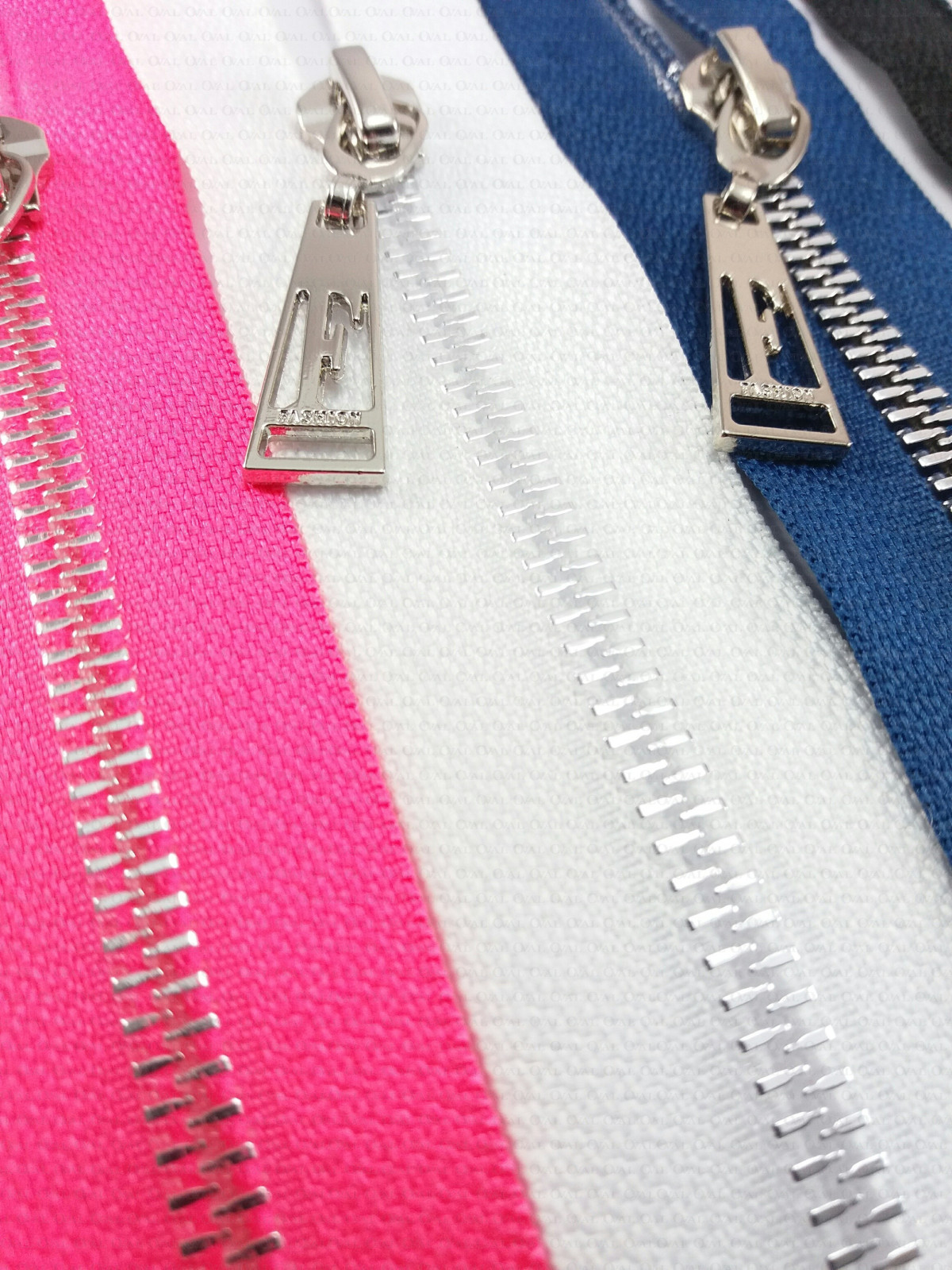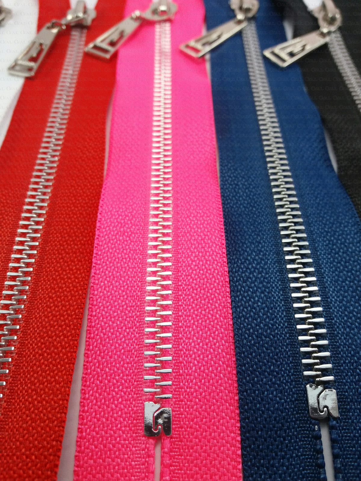 Non-separable plastic zip, deceptively similar to metal with a beautiful shine.