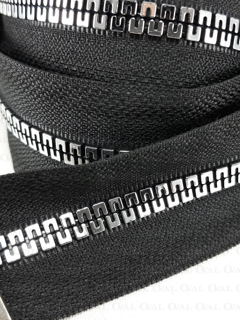 Colour: black tape with silver teeth