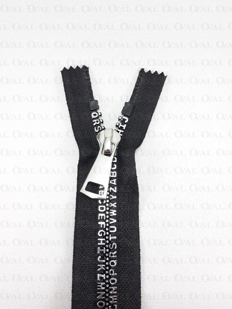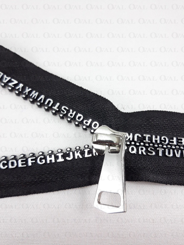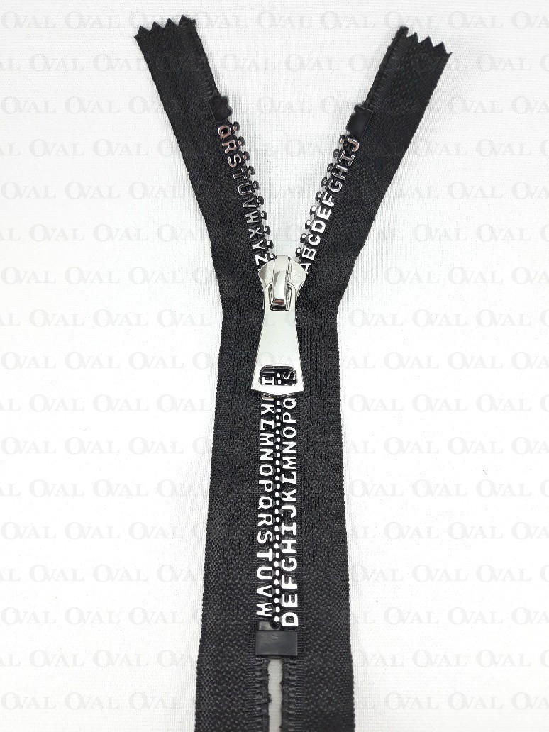 Decorative plastic zips with metal slider and end