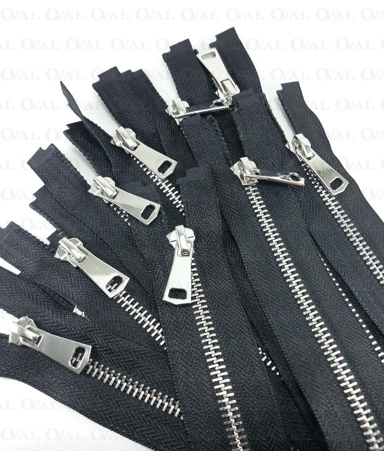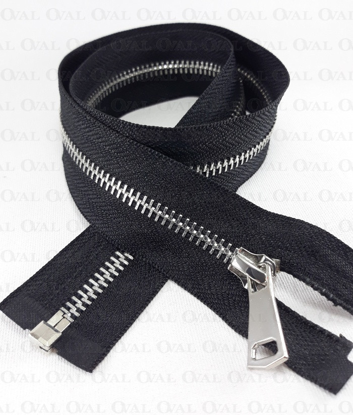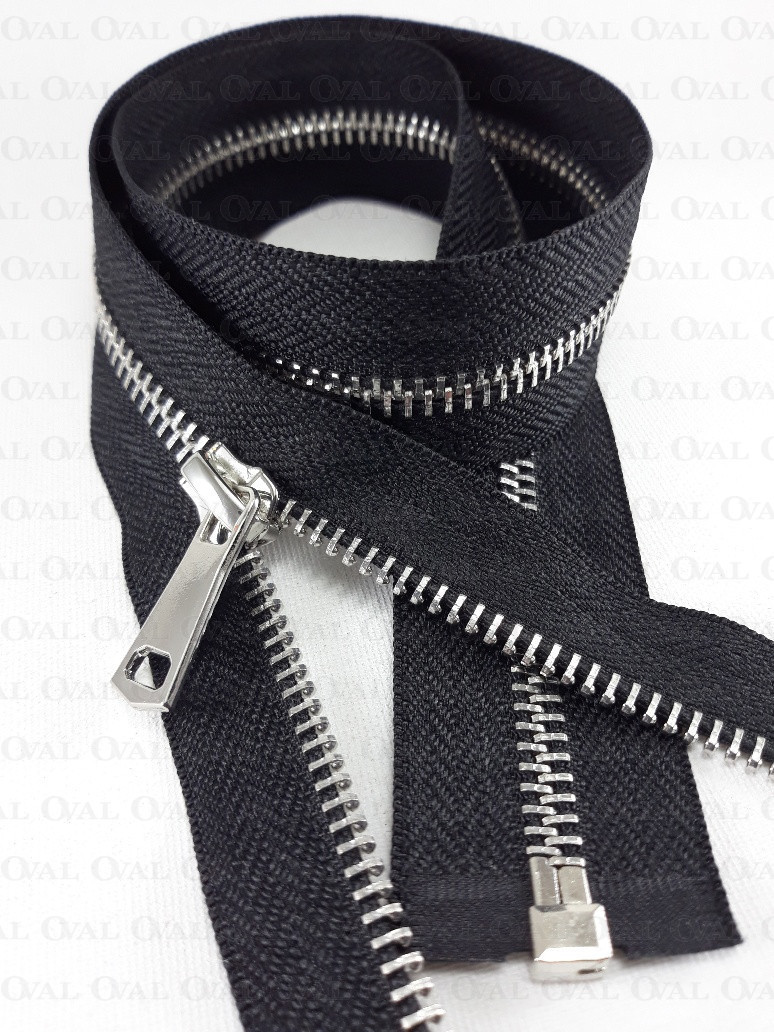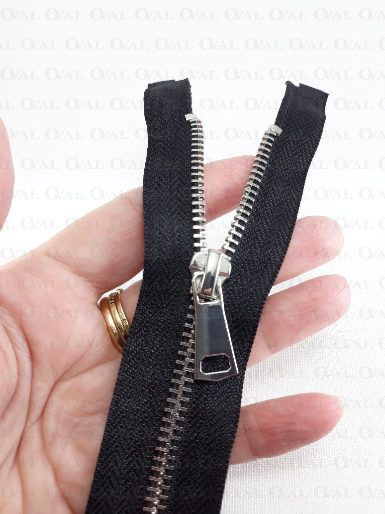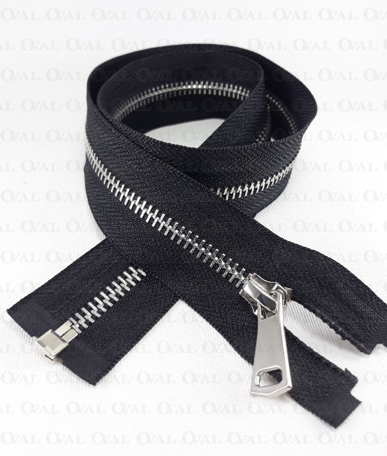 Metal zip, in shiny silver colour and