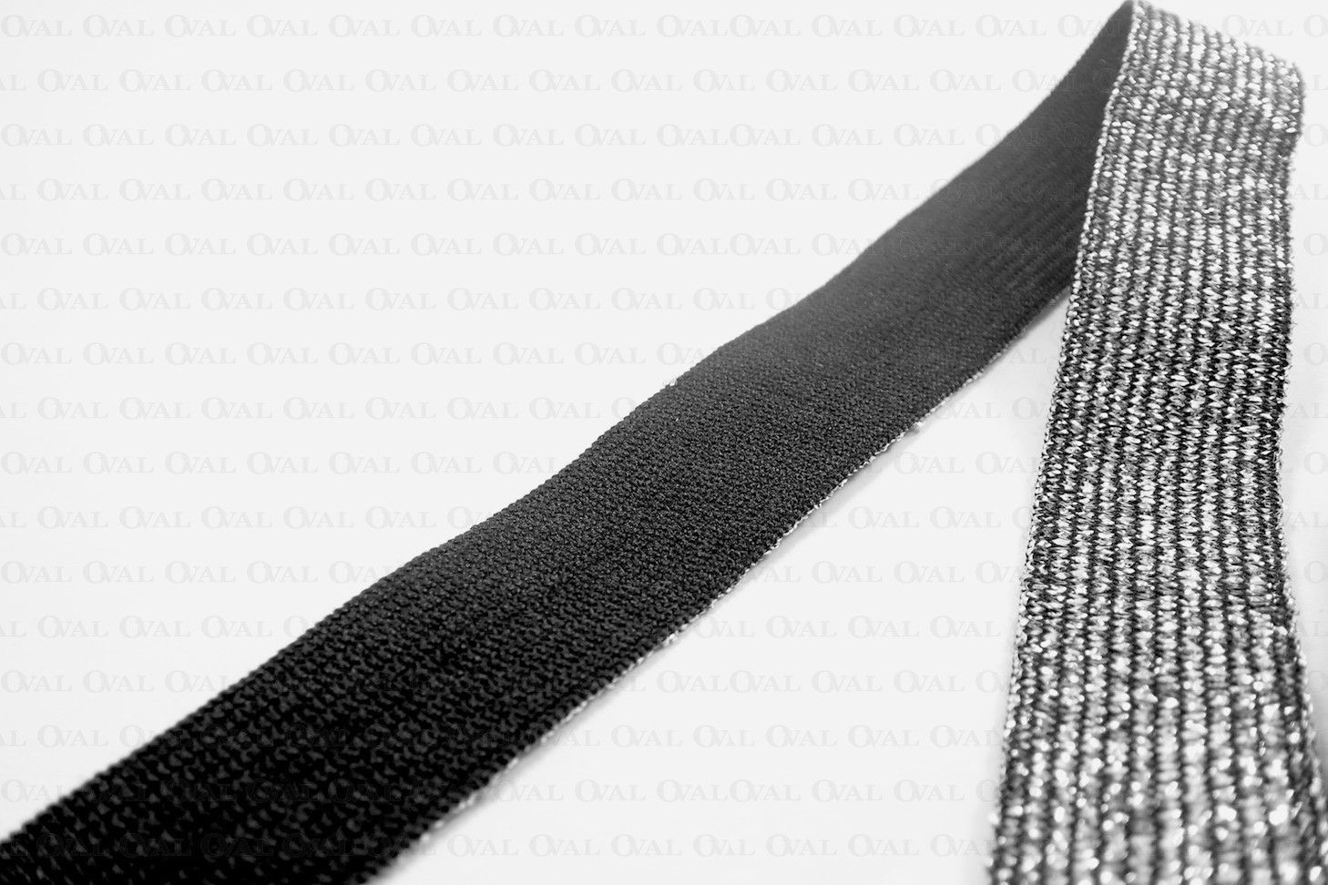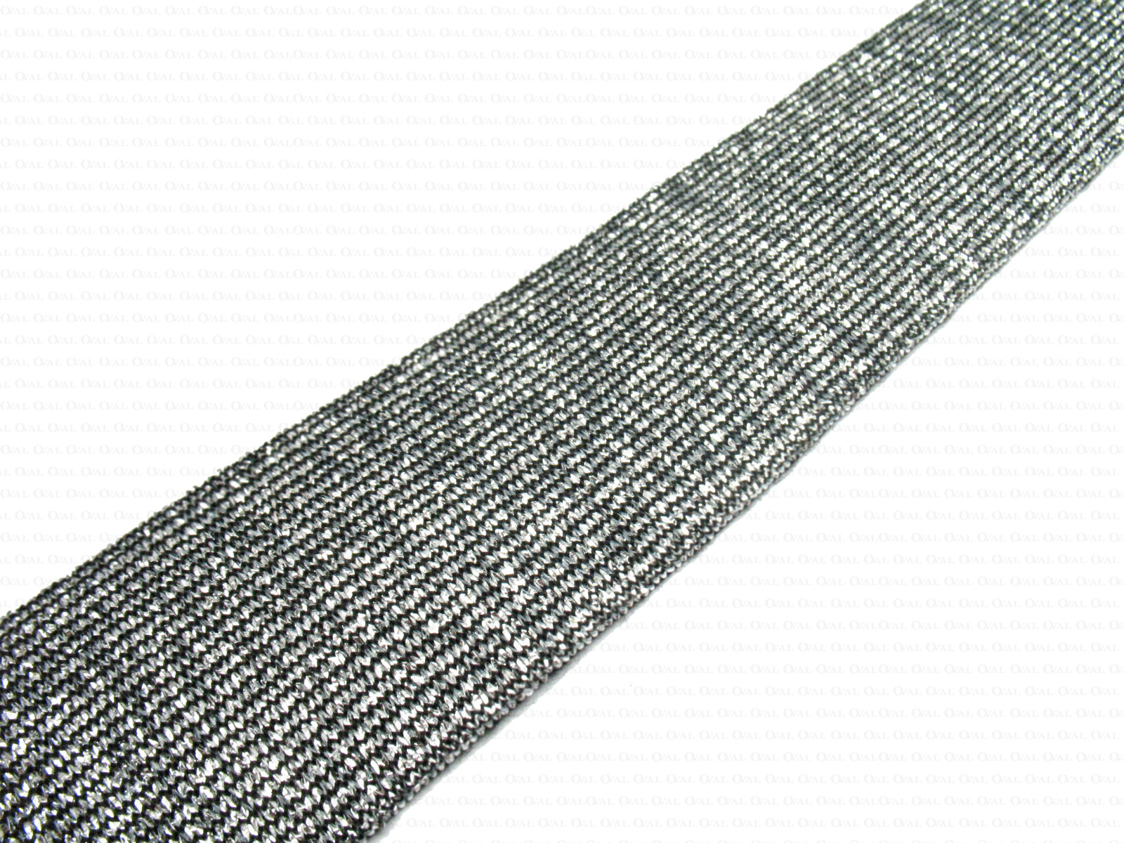 Decorative elastic with a silver thread. Sold by the metre and on 25 m rolls.