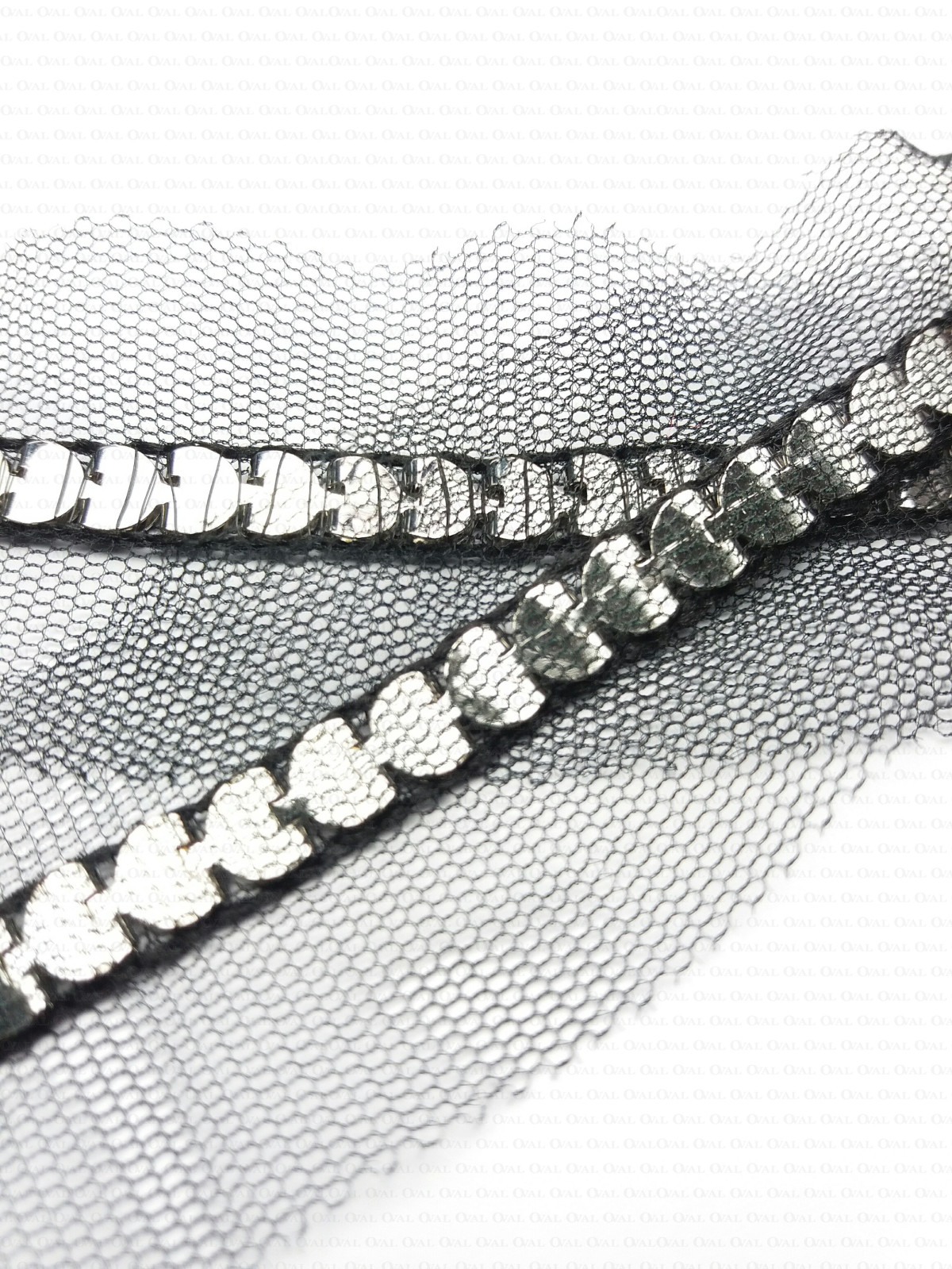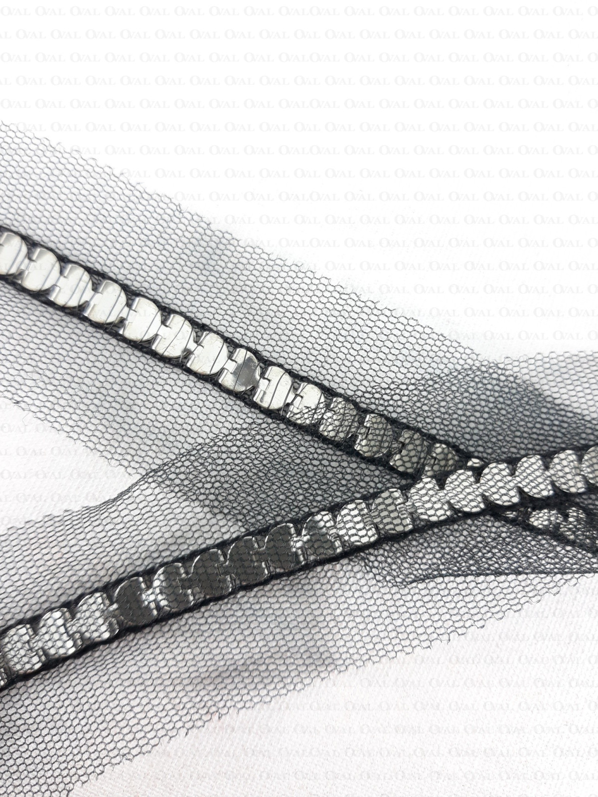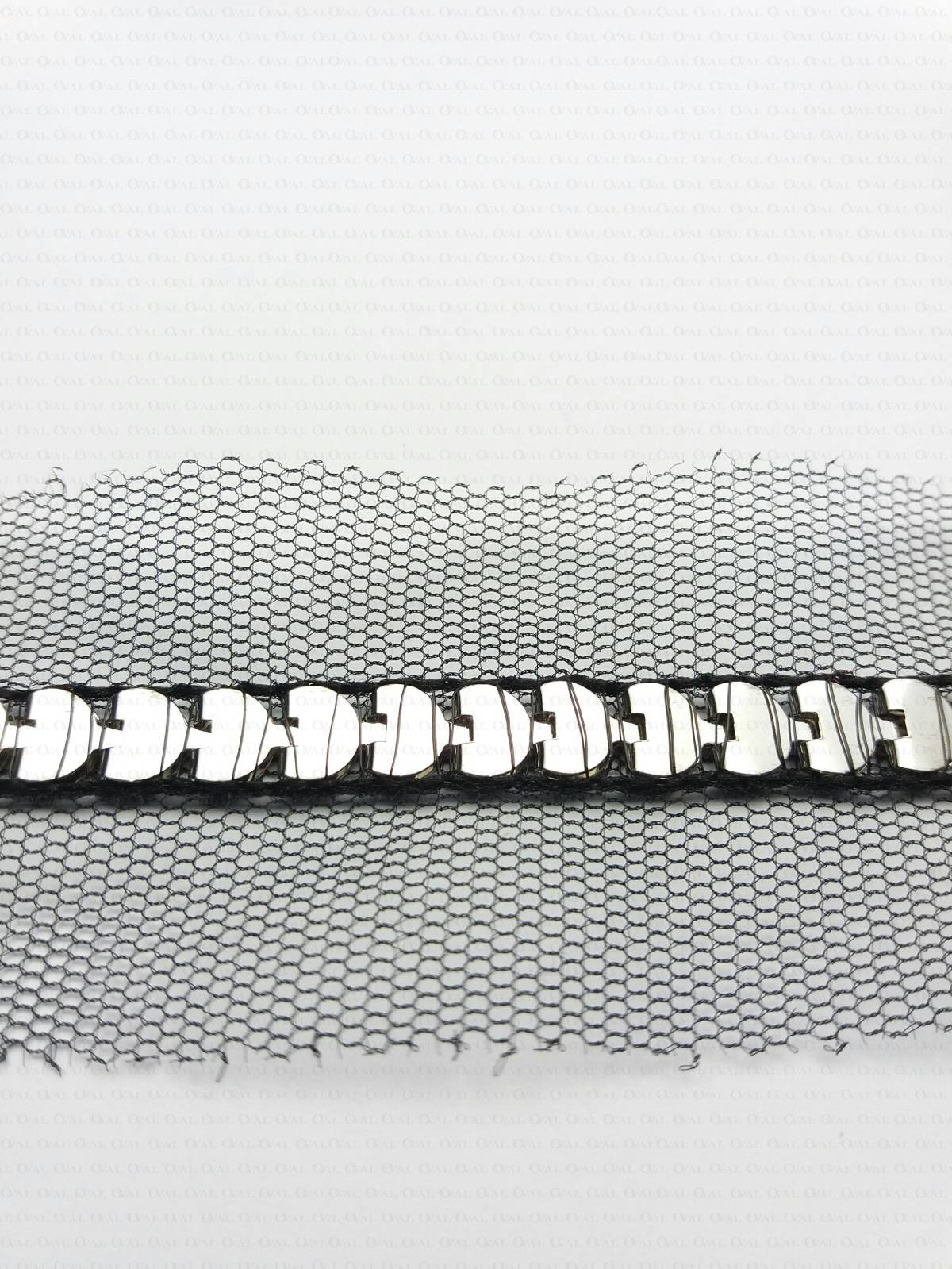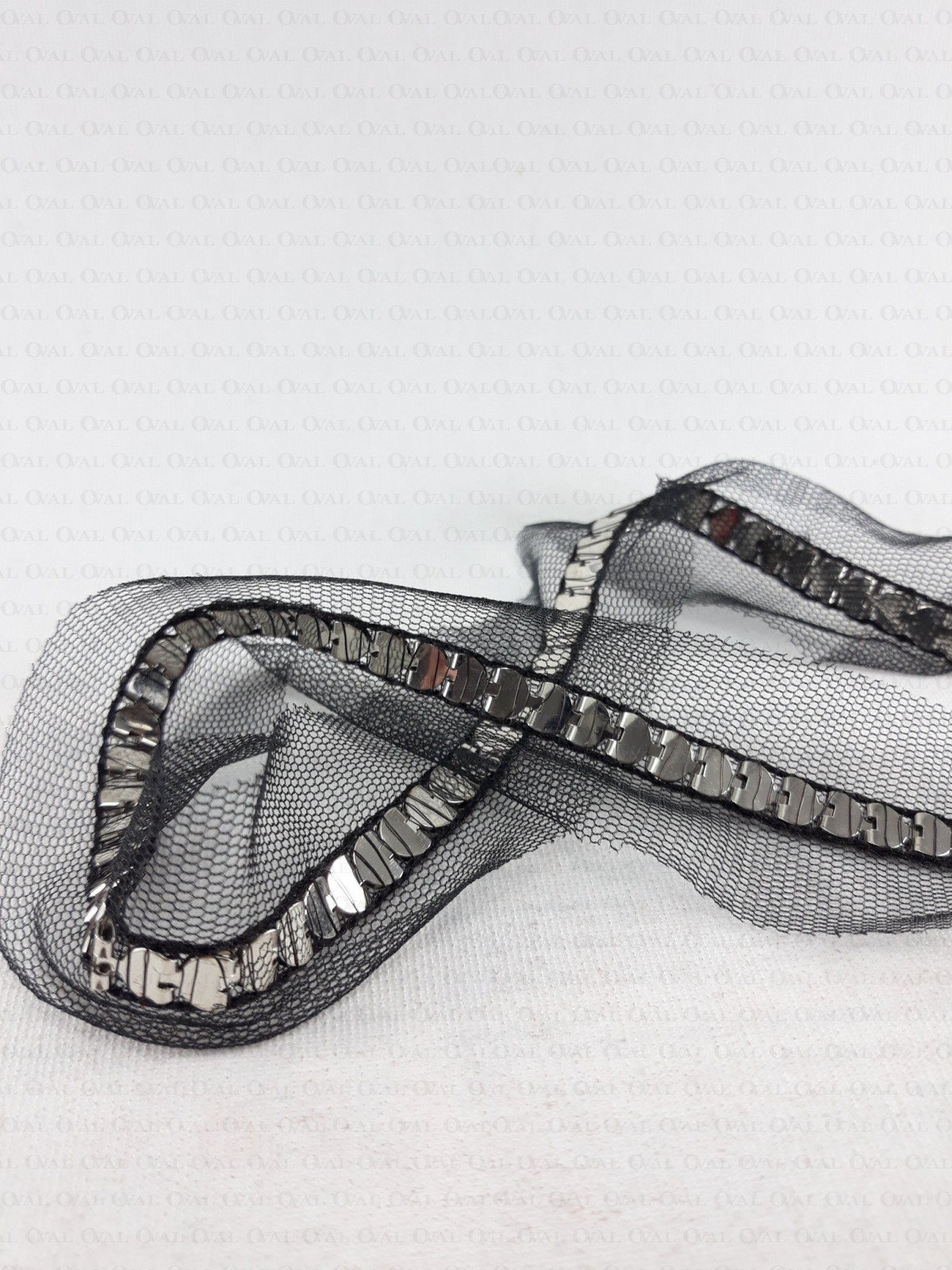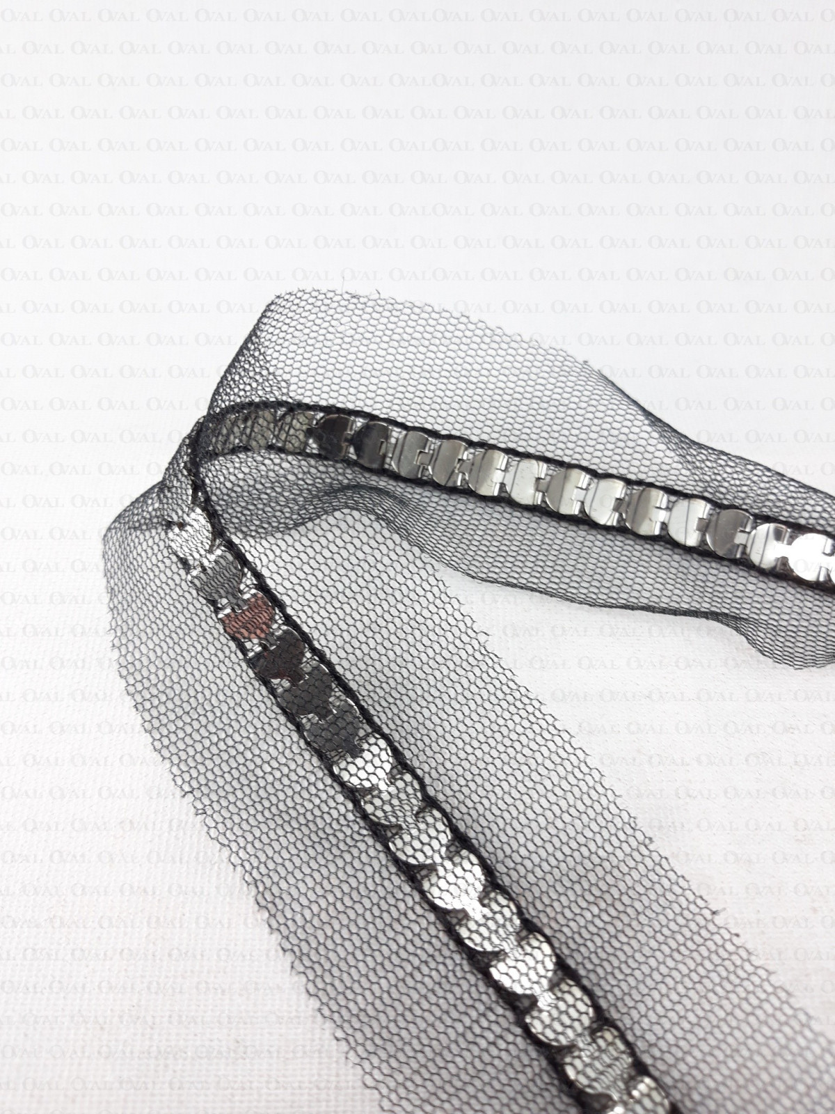 Decorative tape with a metal chain sewn onto chiffon
