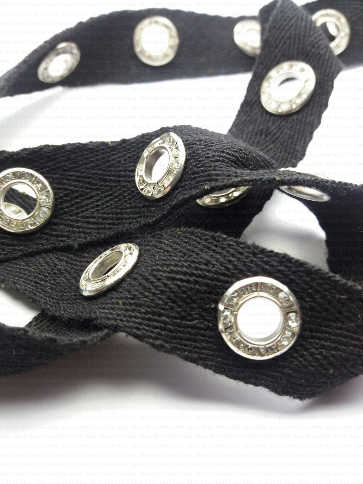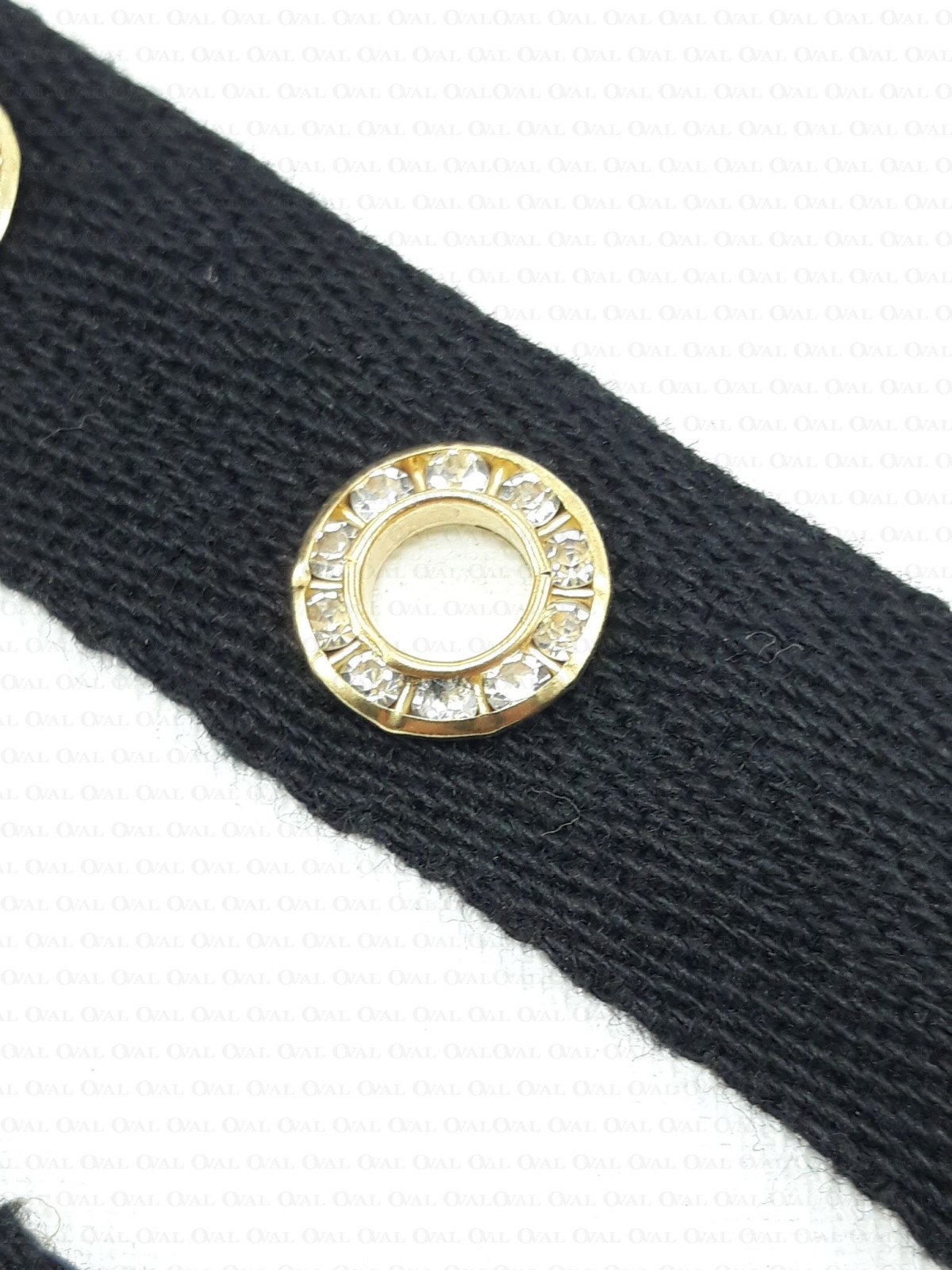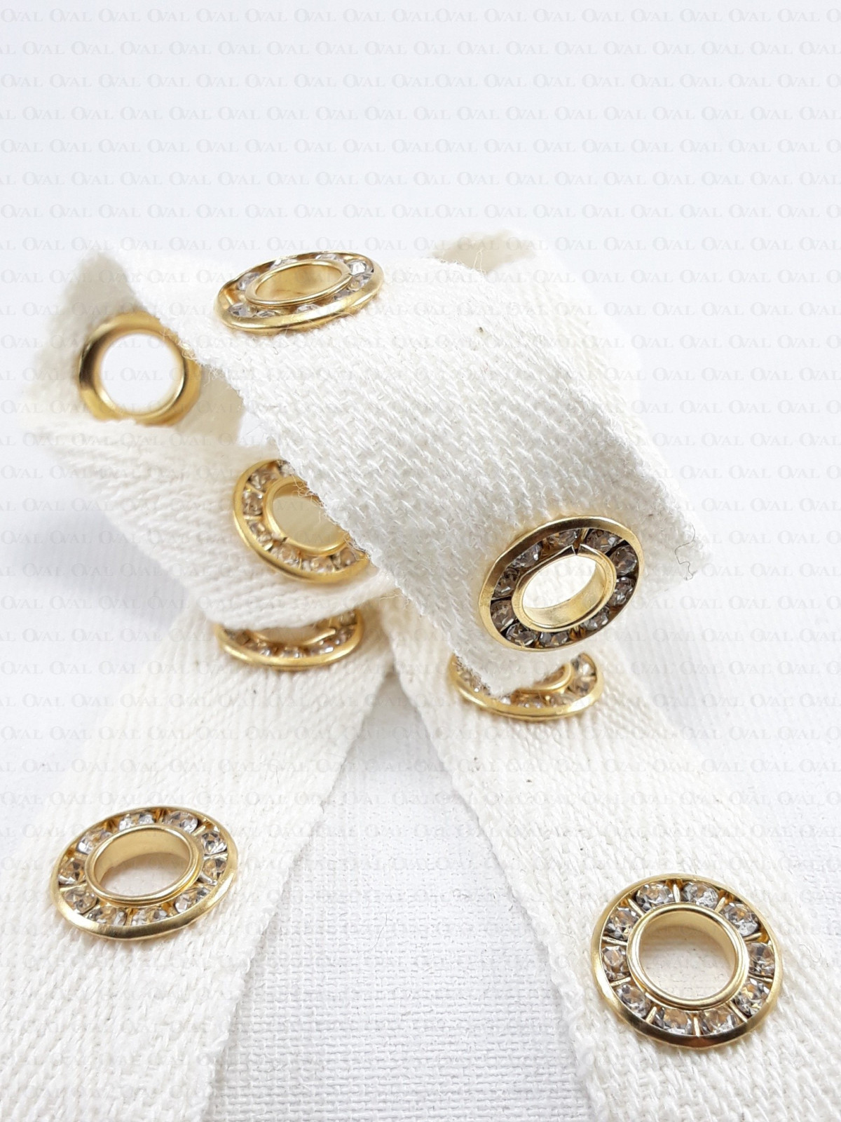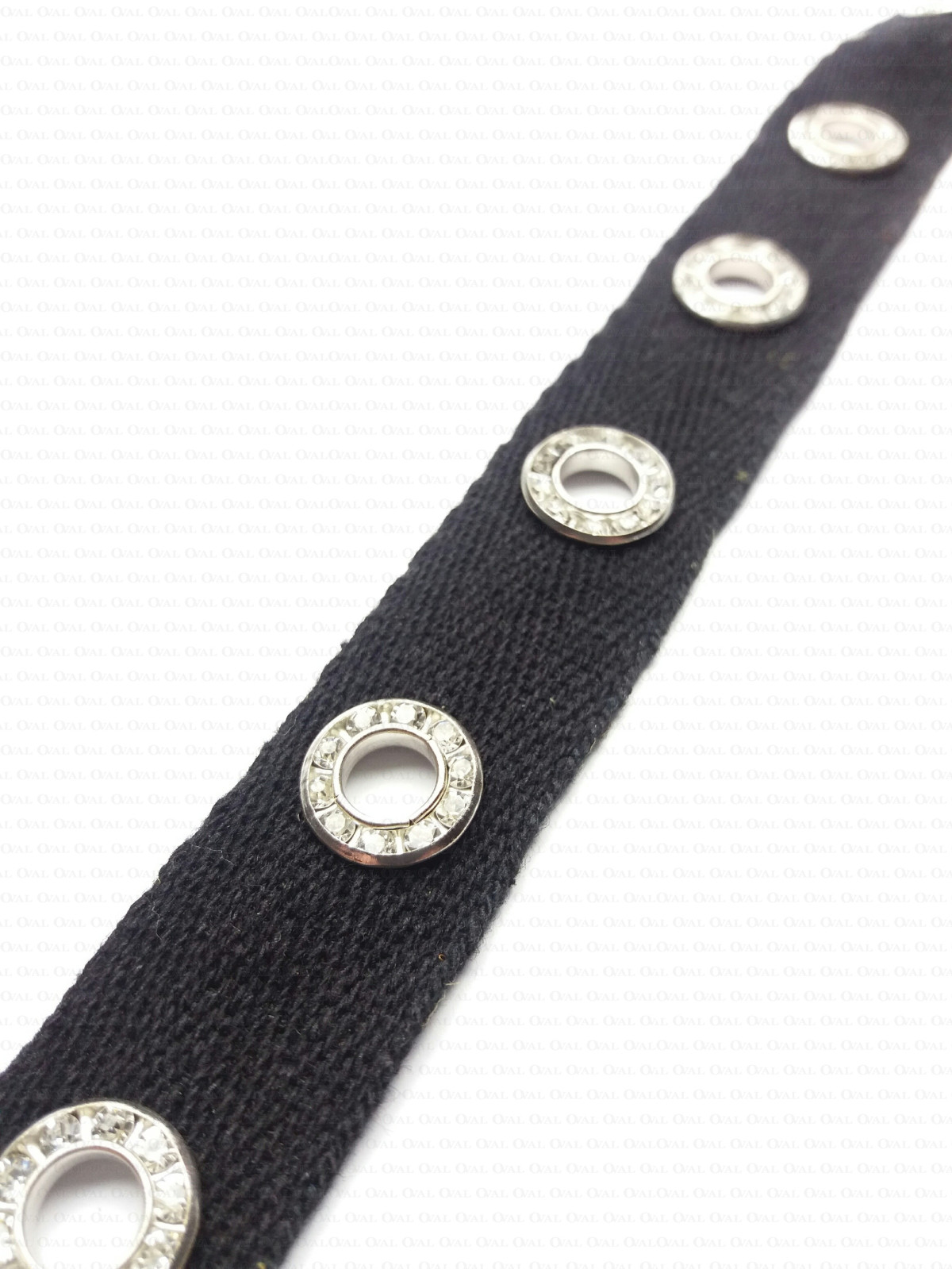 Cotton tape with decorative eyelets and rhinestones