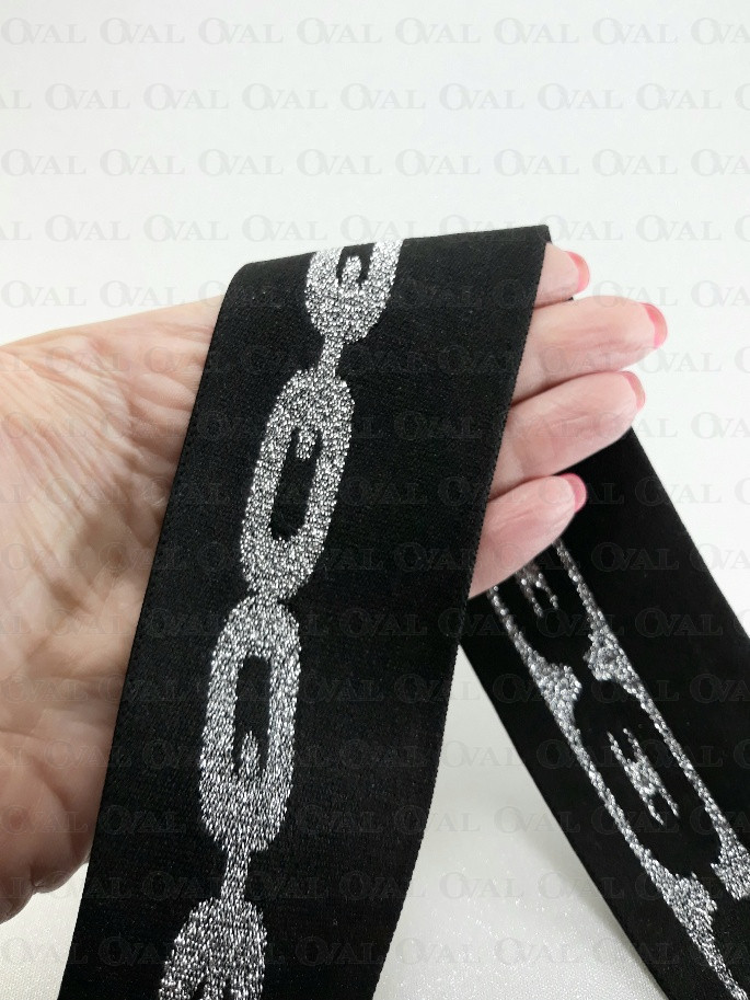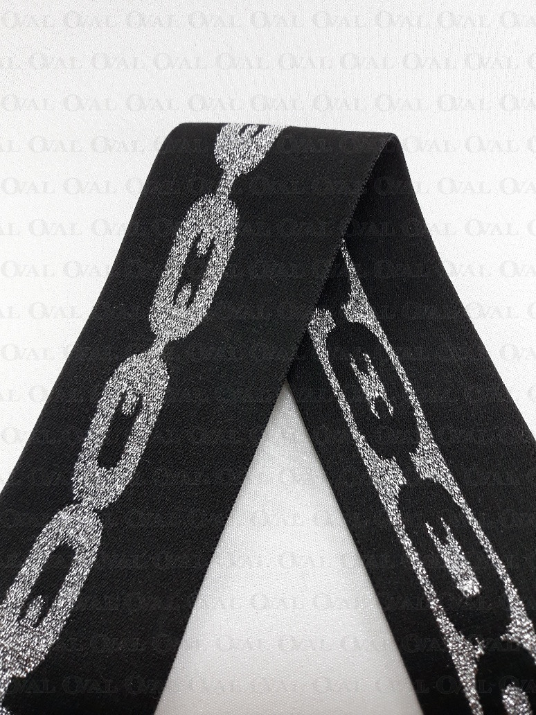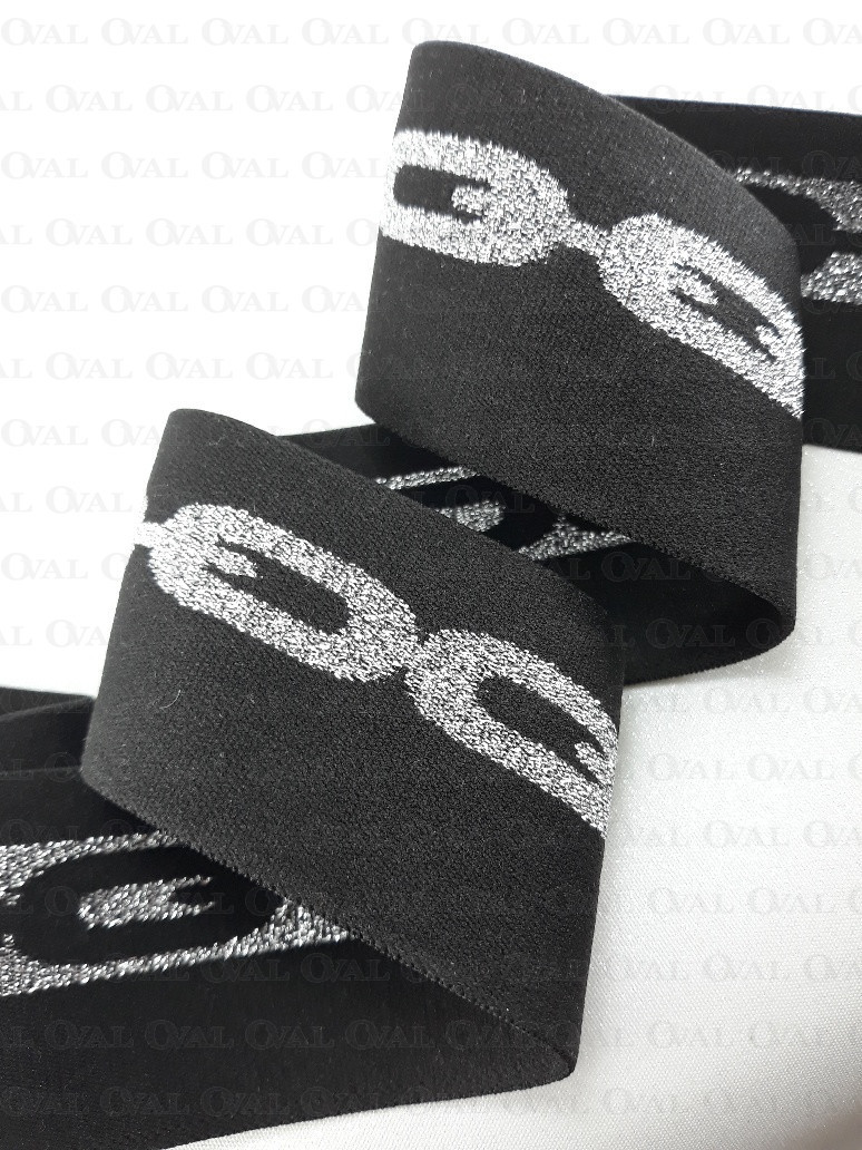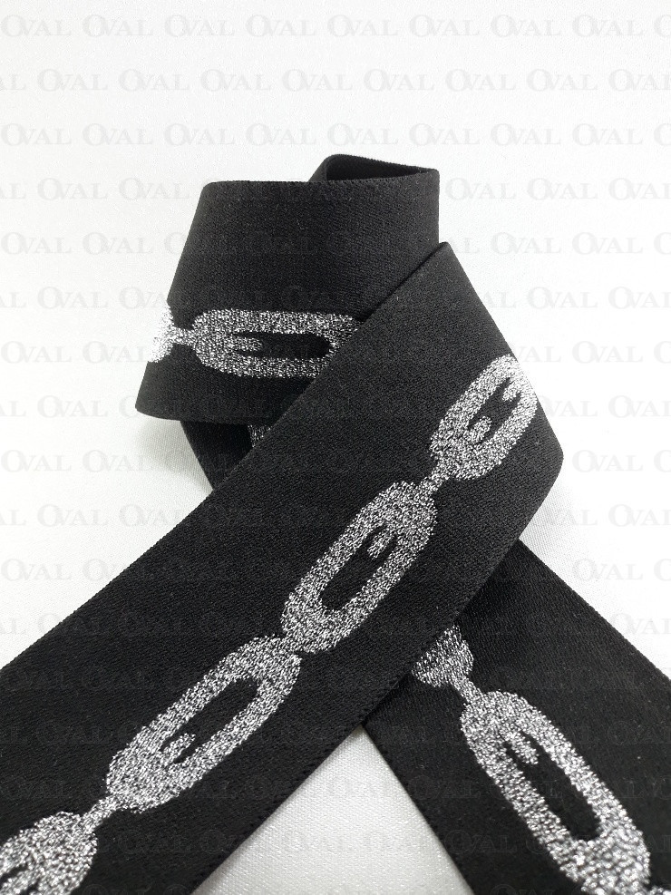 Decorative black and silver elastic 50mm/1m 2025 PU8