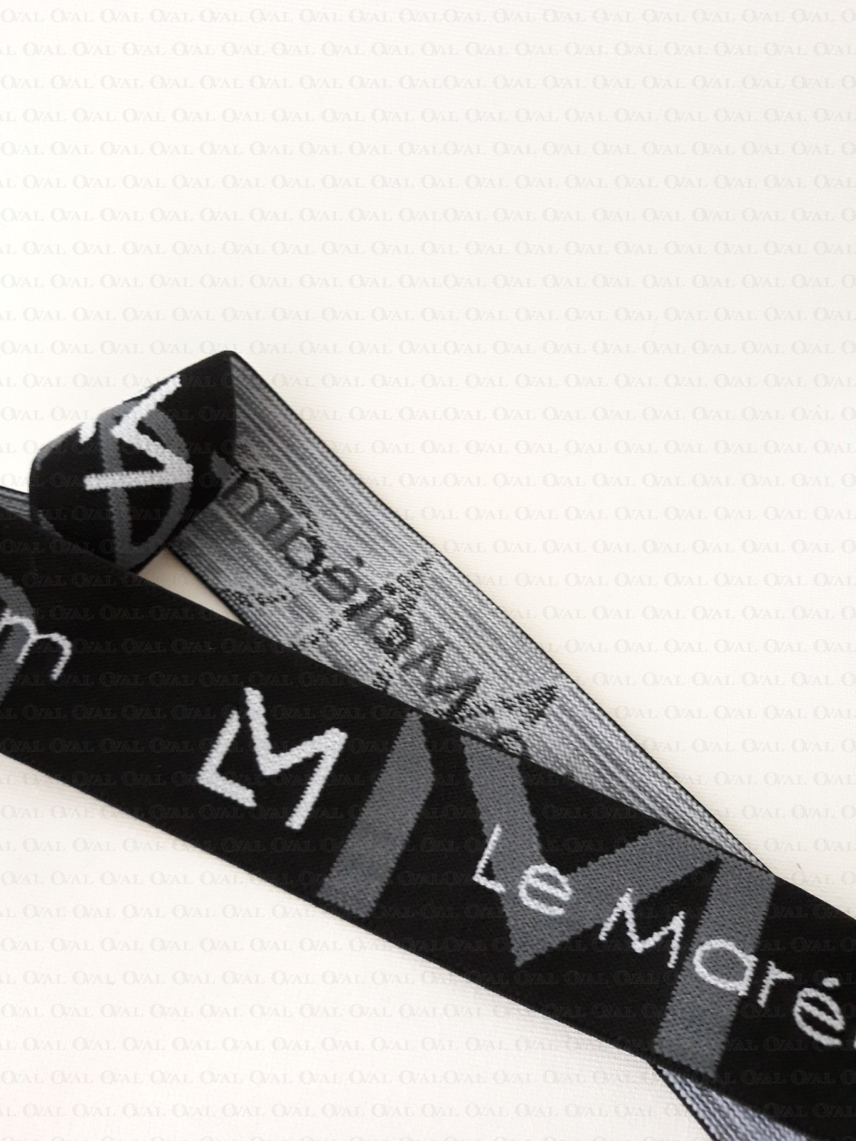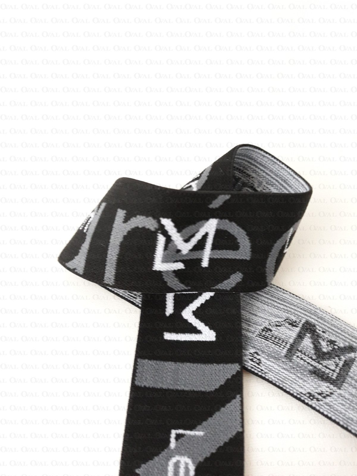 Colour: black elastic with white and grey lettering