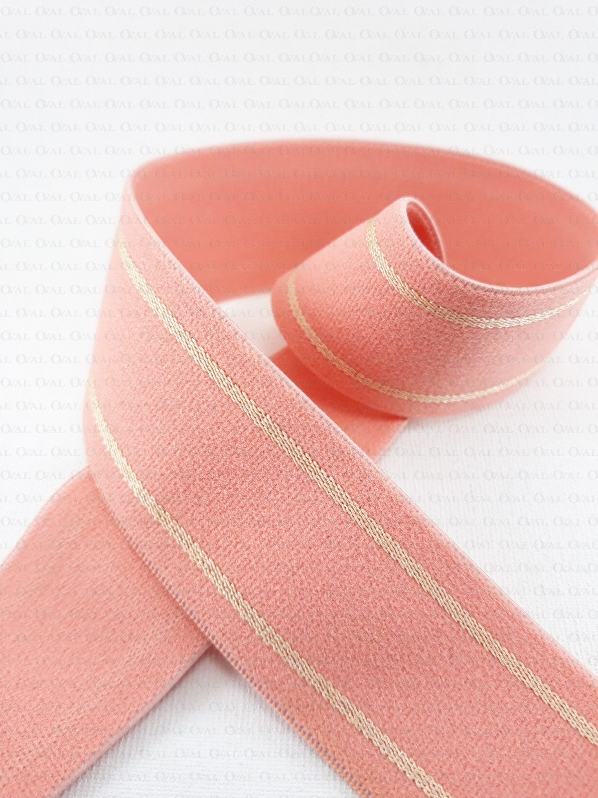 salmon-coloured elastic with beige stripes