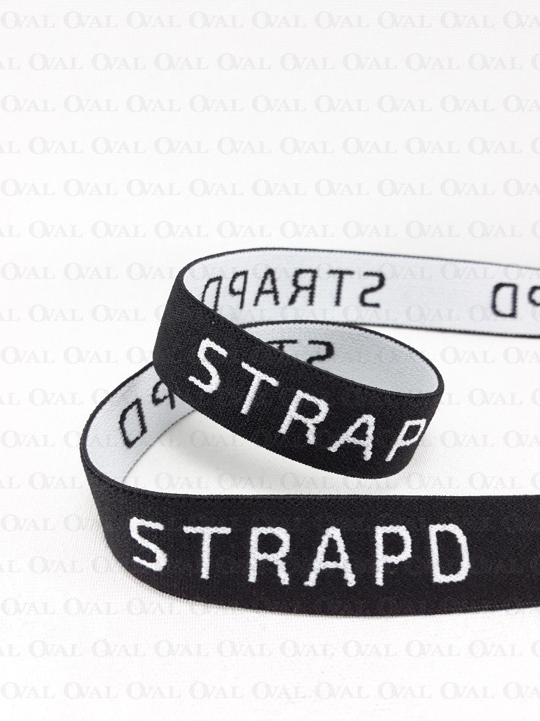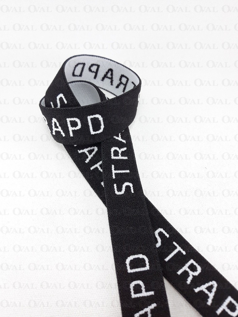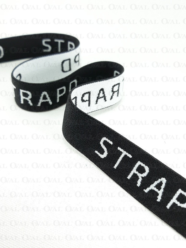 Decorative elastic with white lettering. Soft, delicate, suitable for lingerie.