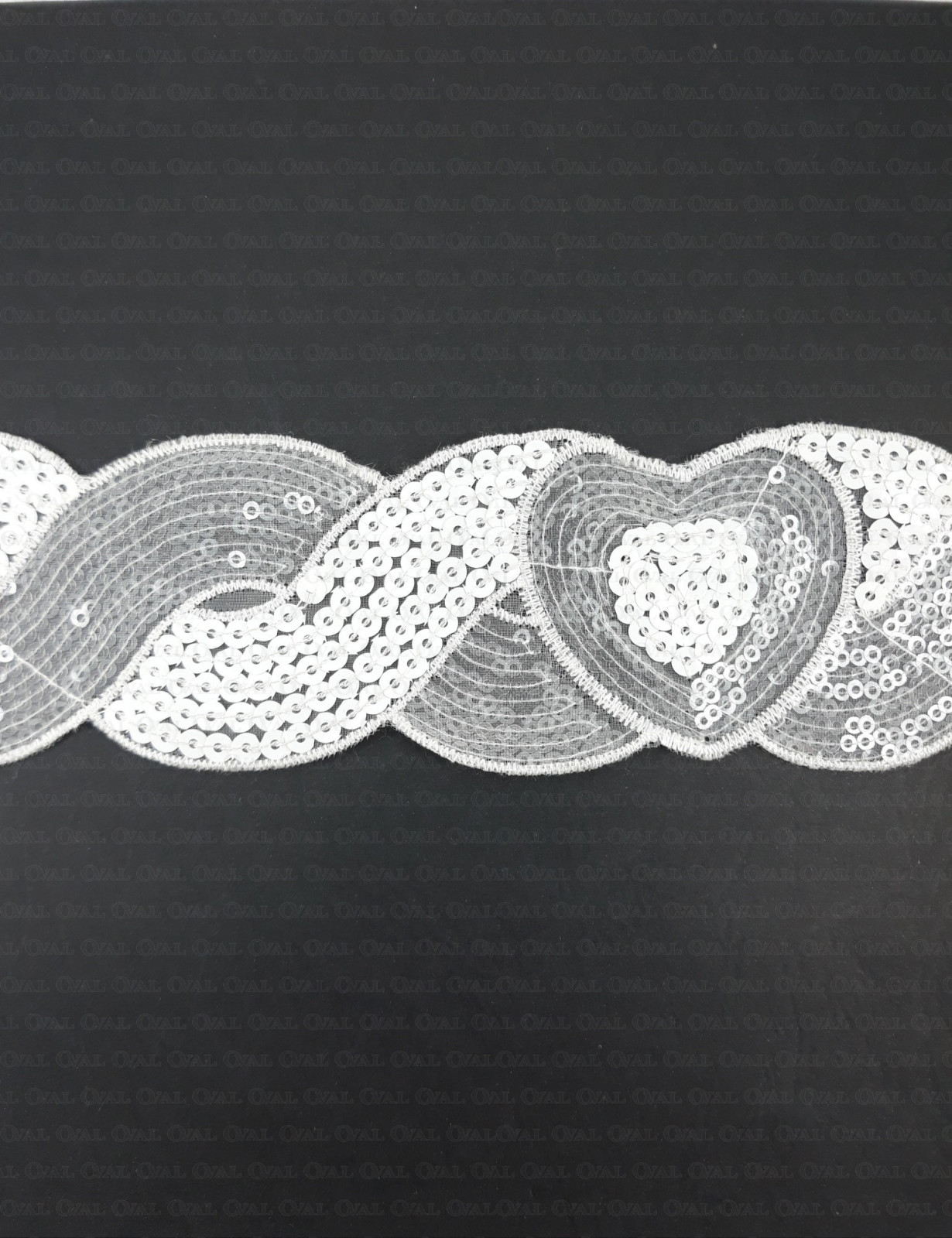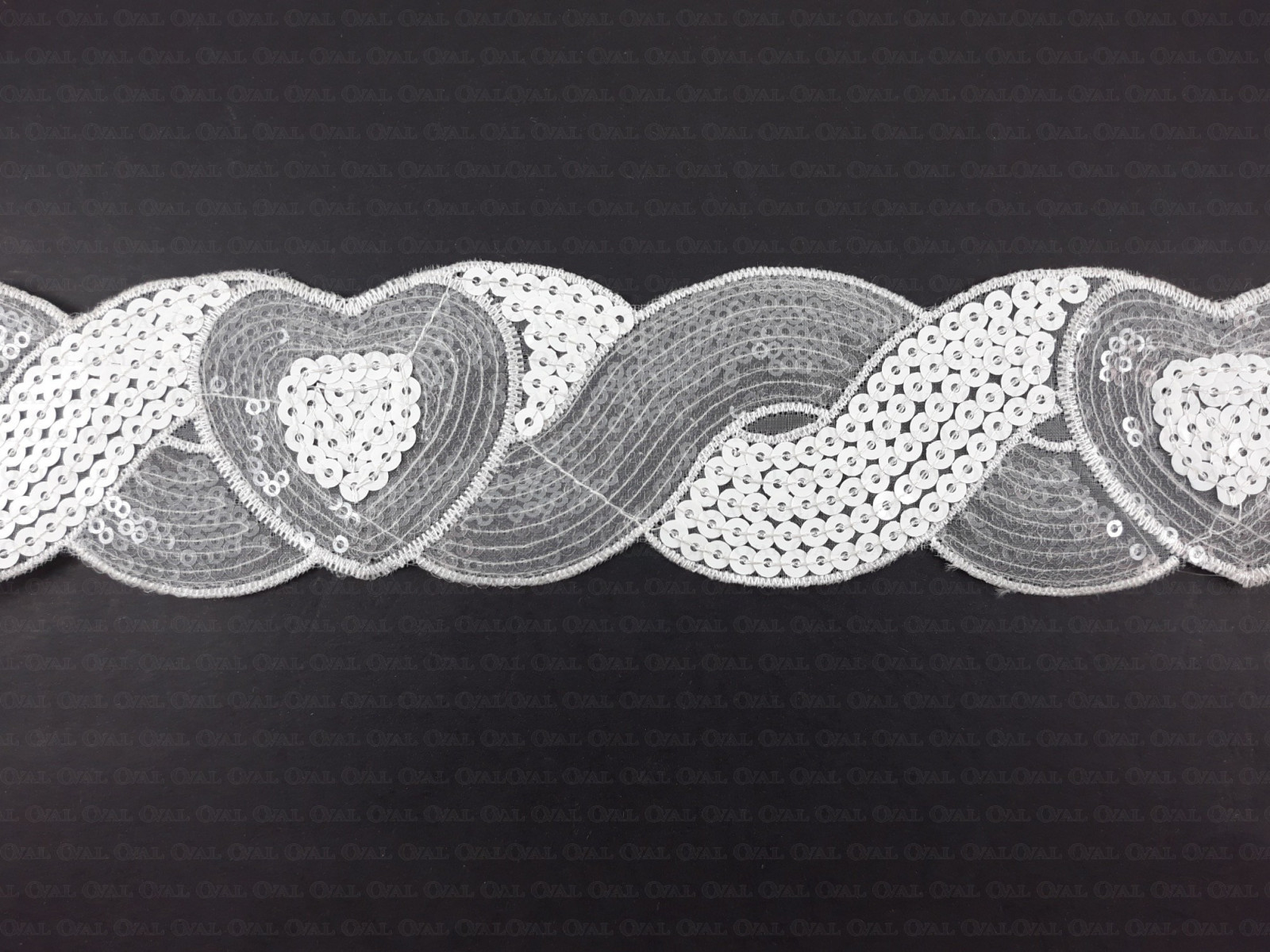 Decorative ribbon with white and transparent sequins