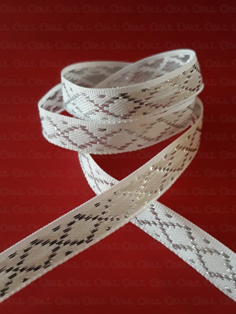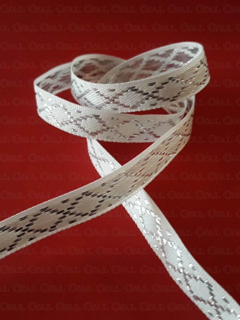 Colour: white tape with silver embroidery