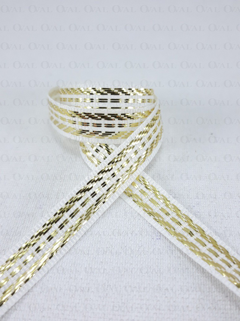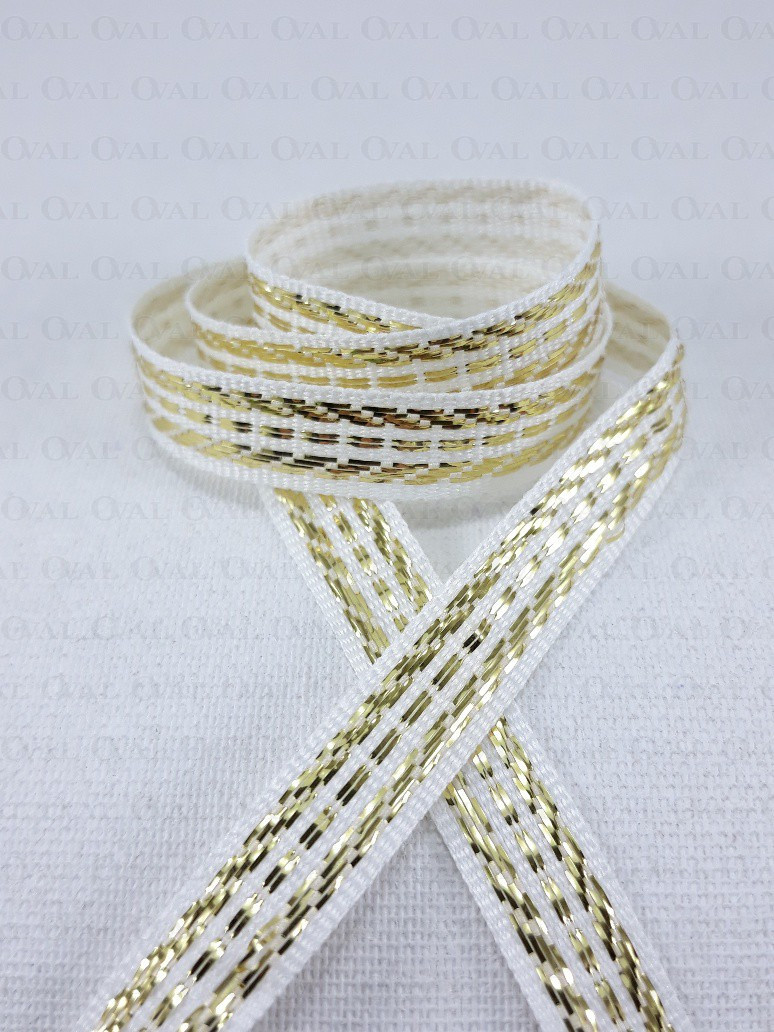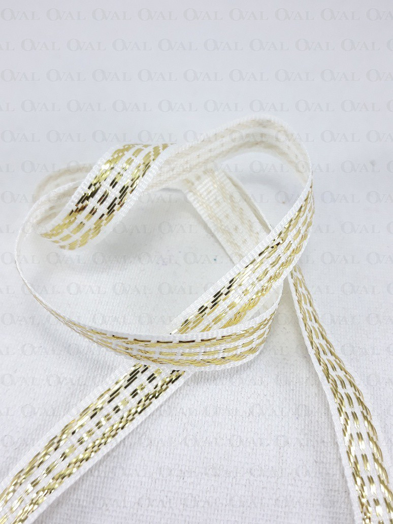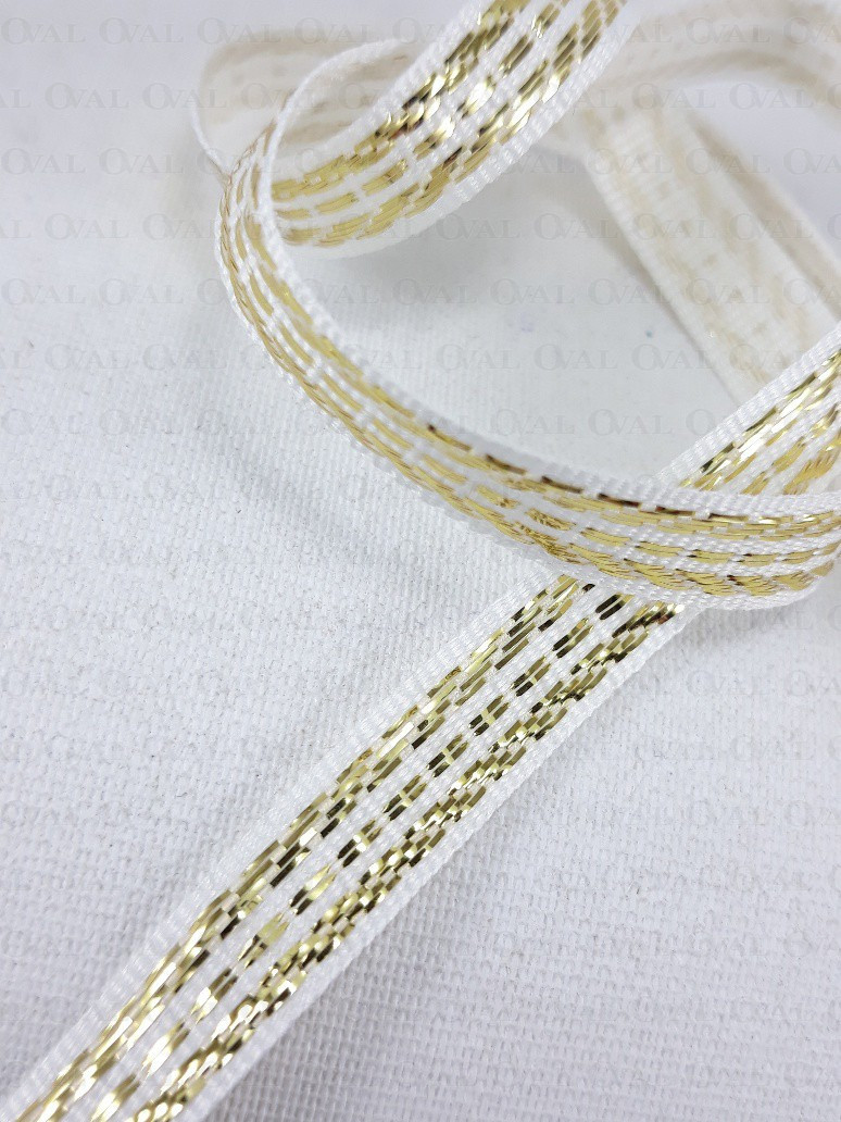Colour: white ribbon with gold embroidery