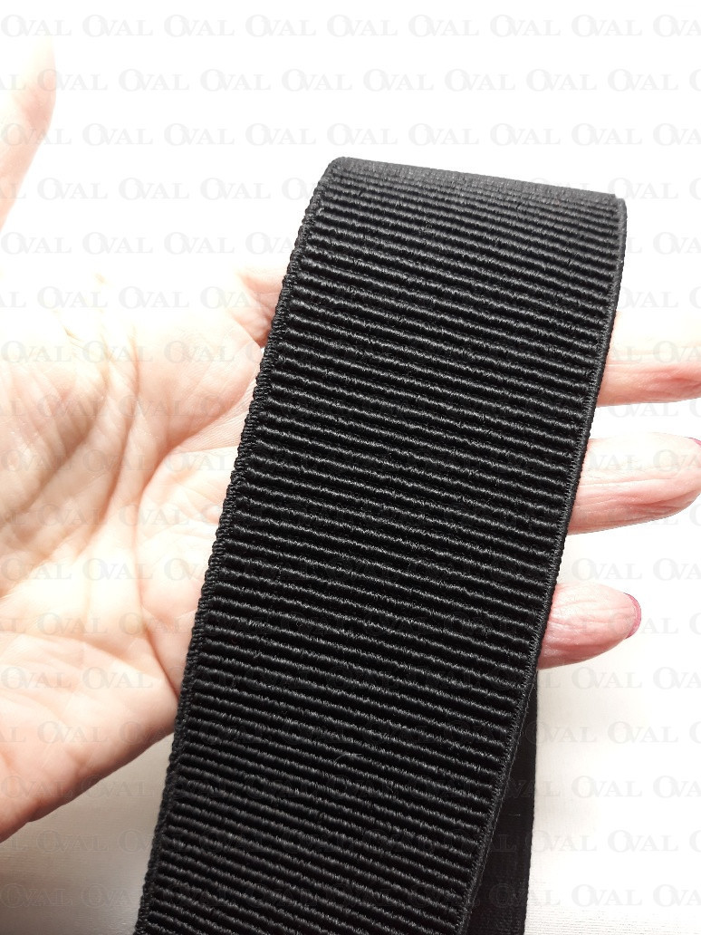Decorative elastic perfect for making waistbands in trousers, leggings, skirts and cuffs.