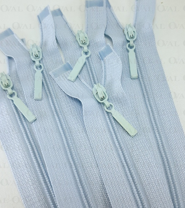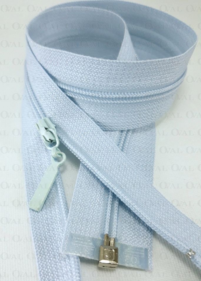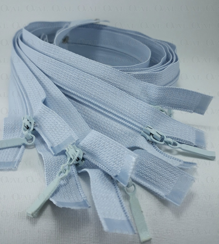 Separating plastic zip *3 with a metal end in the colour of the zip.