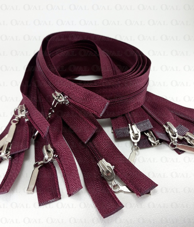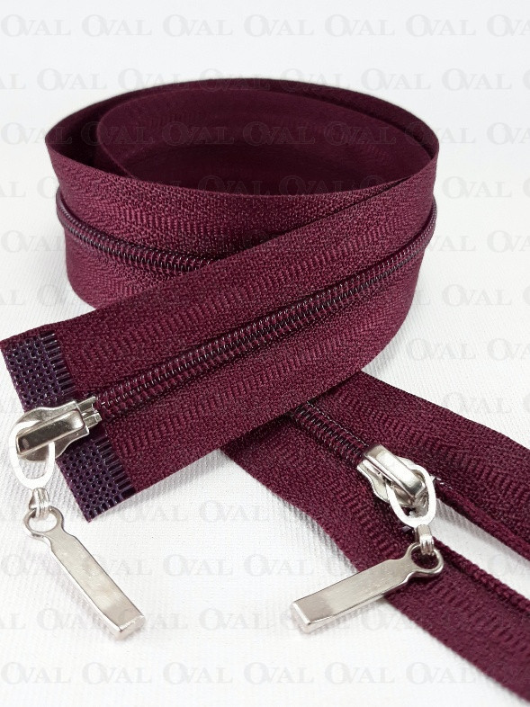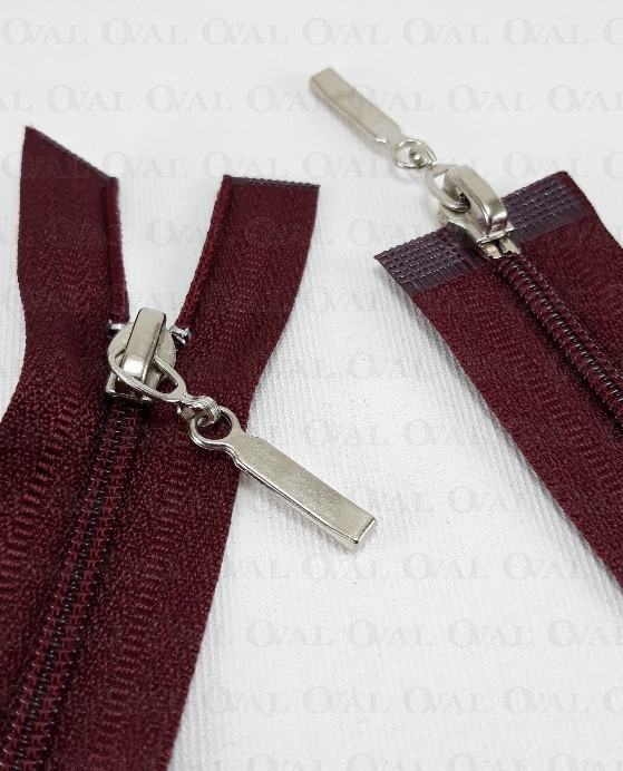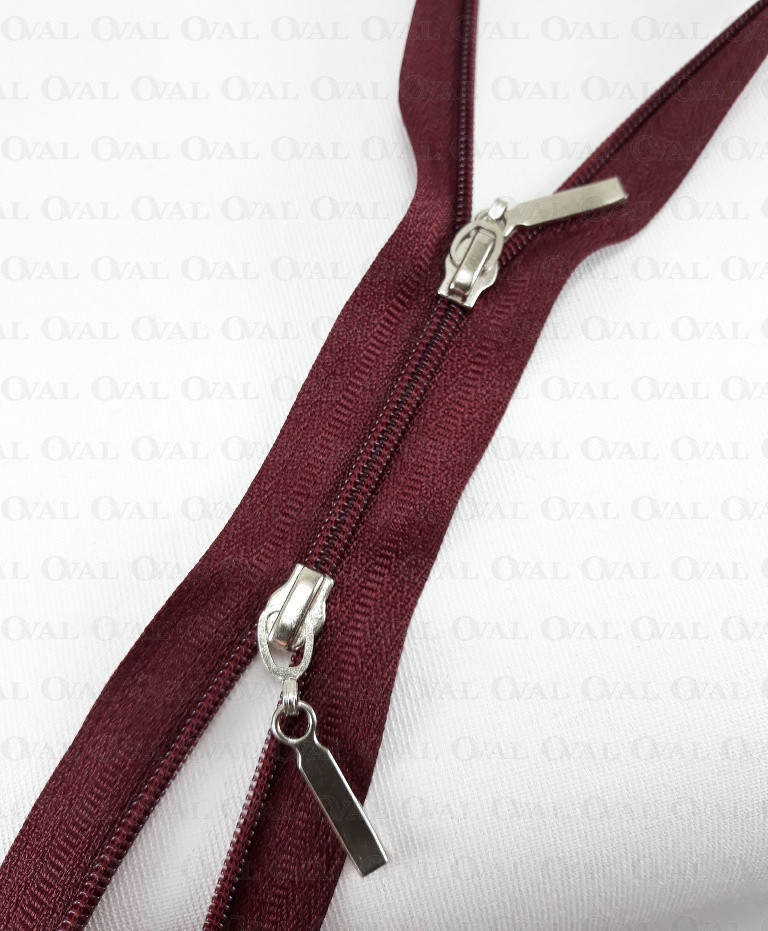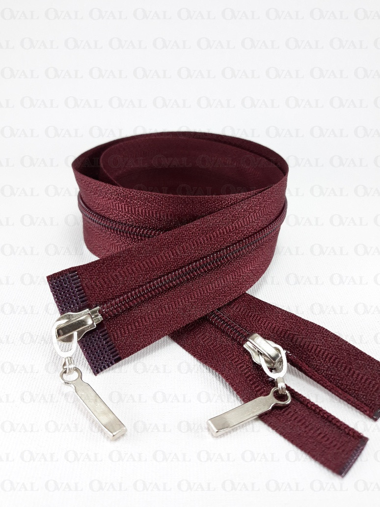 Separating zip top/bottom, #3 plastic with two metal ends.
