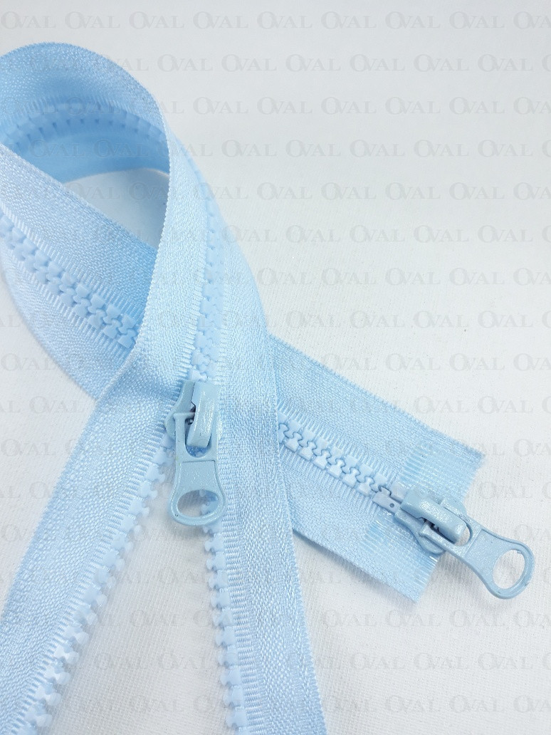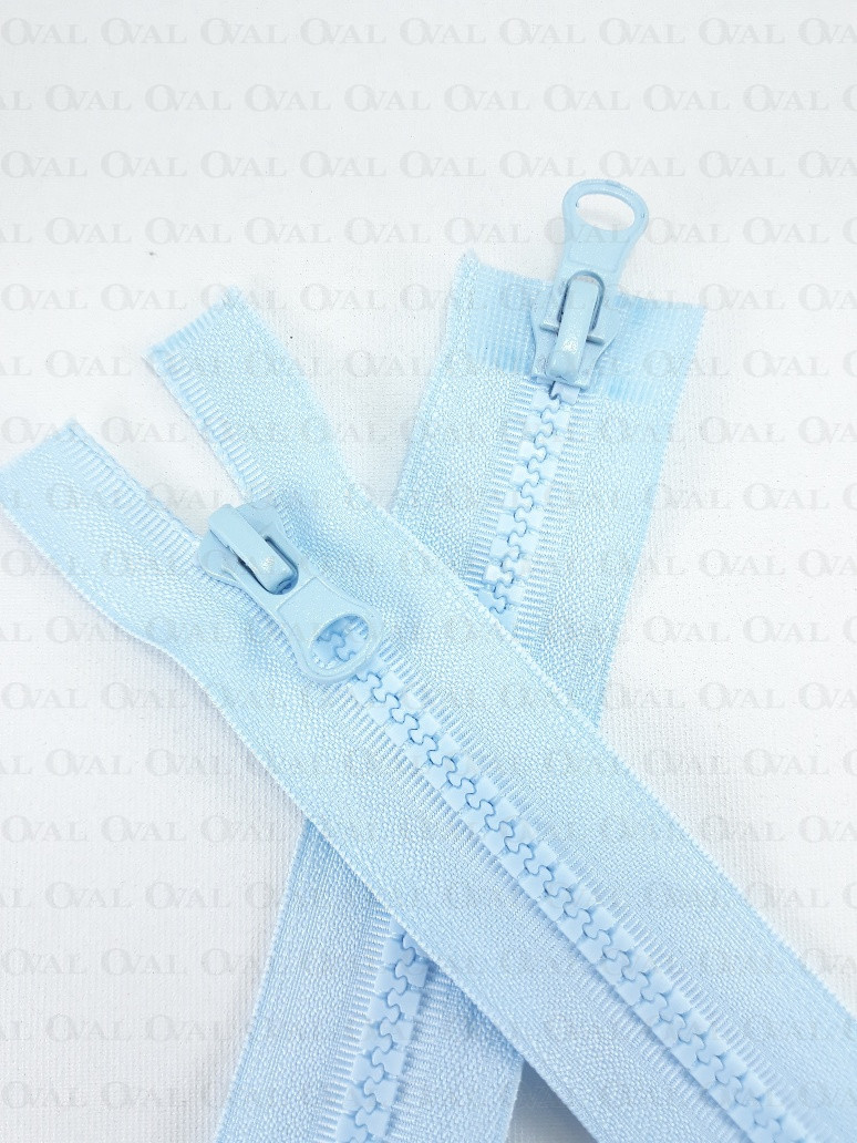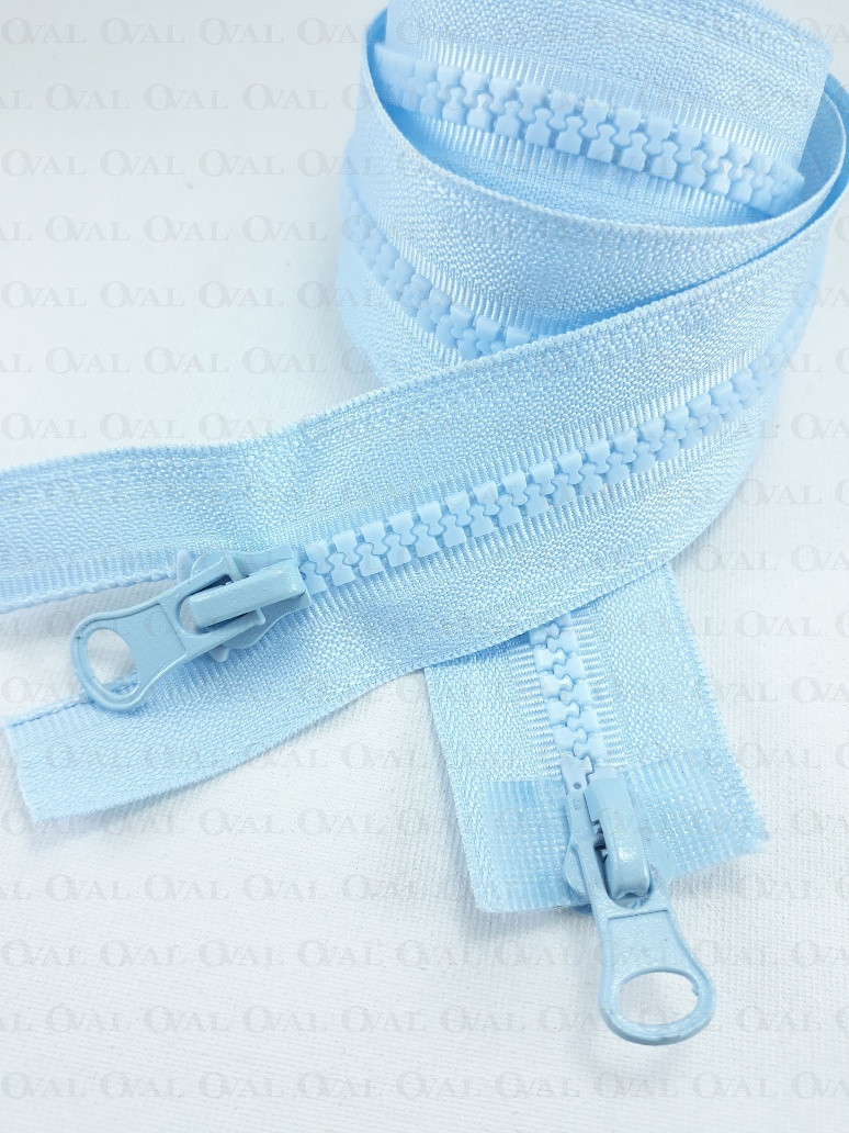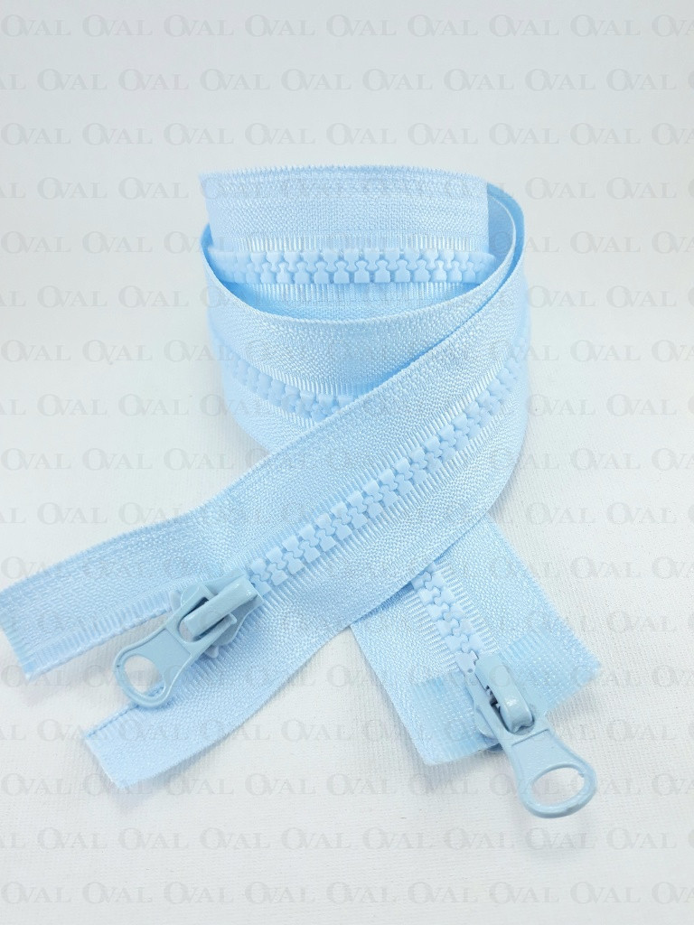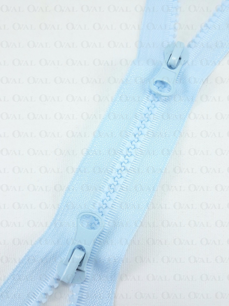 Two-slider separating plastic zips, opening from both the top and bottom.