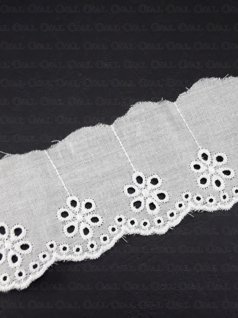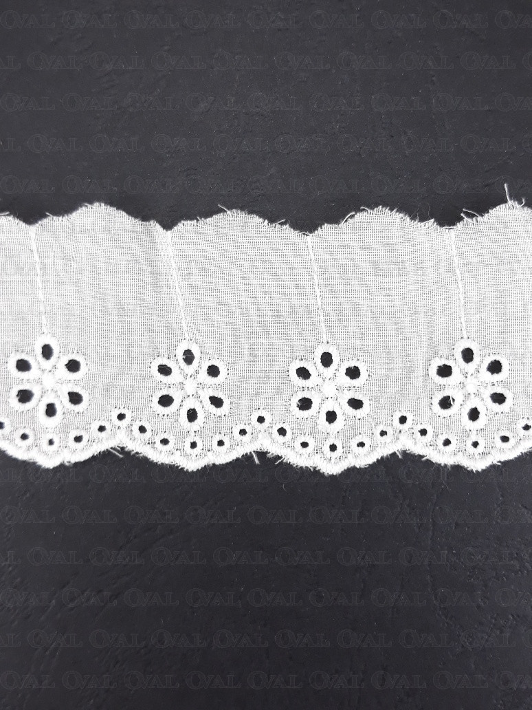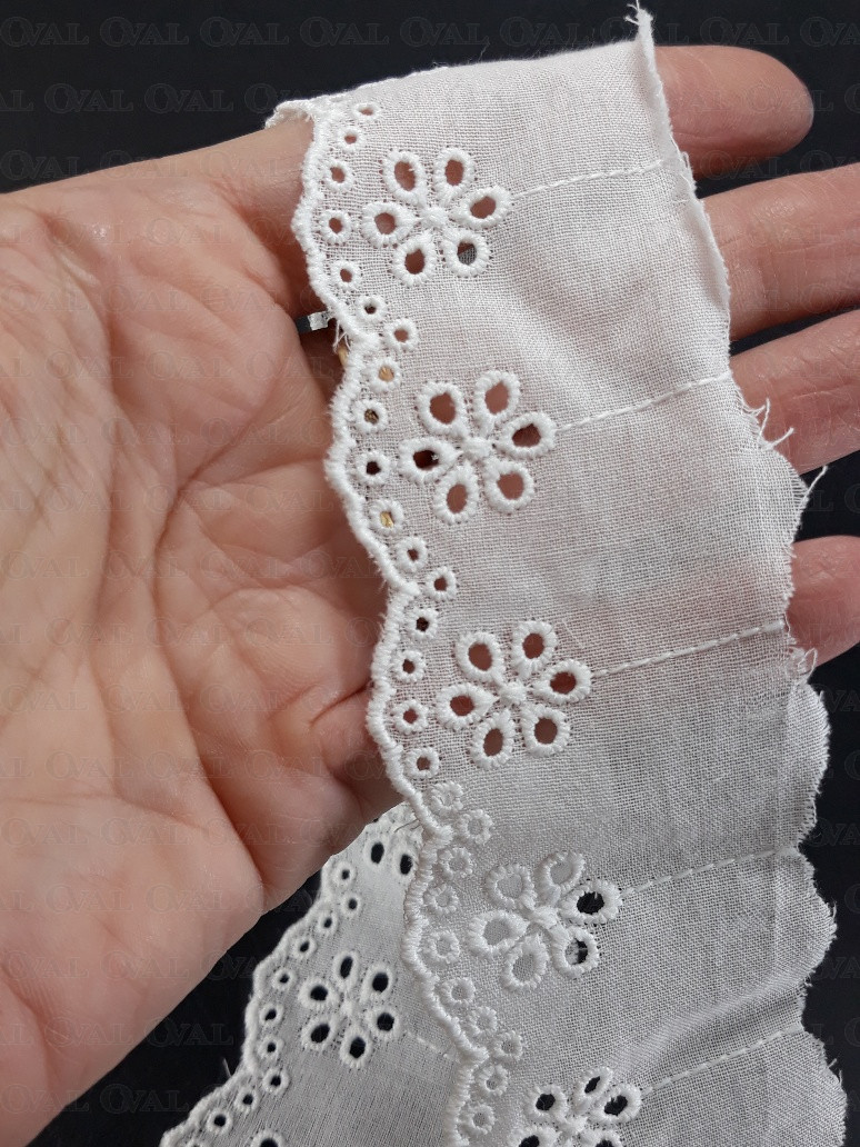Lace of very good quality with an openwork pattern, embroidered on cotton.