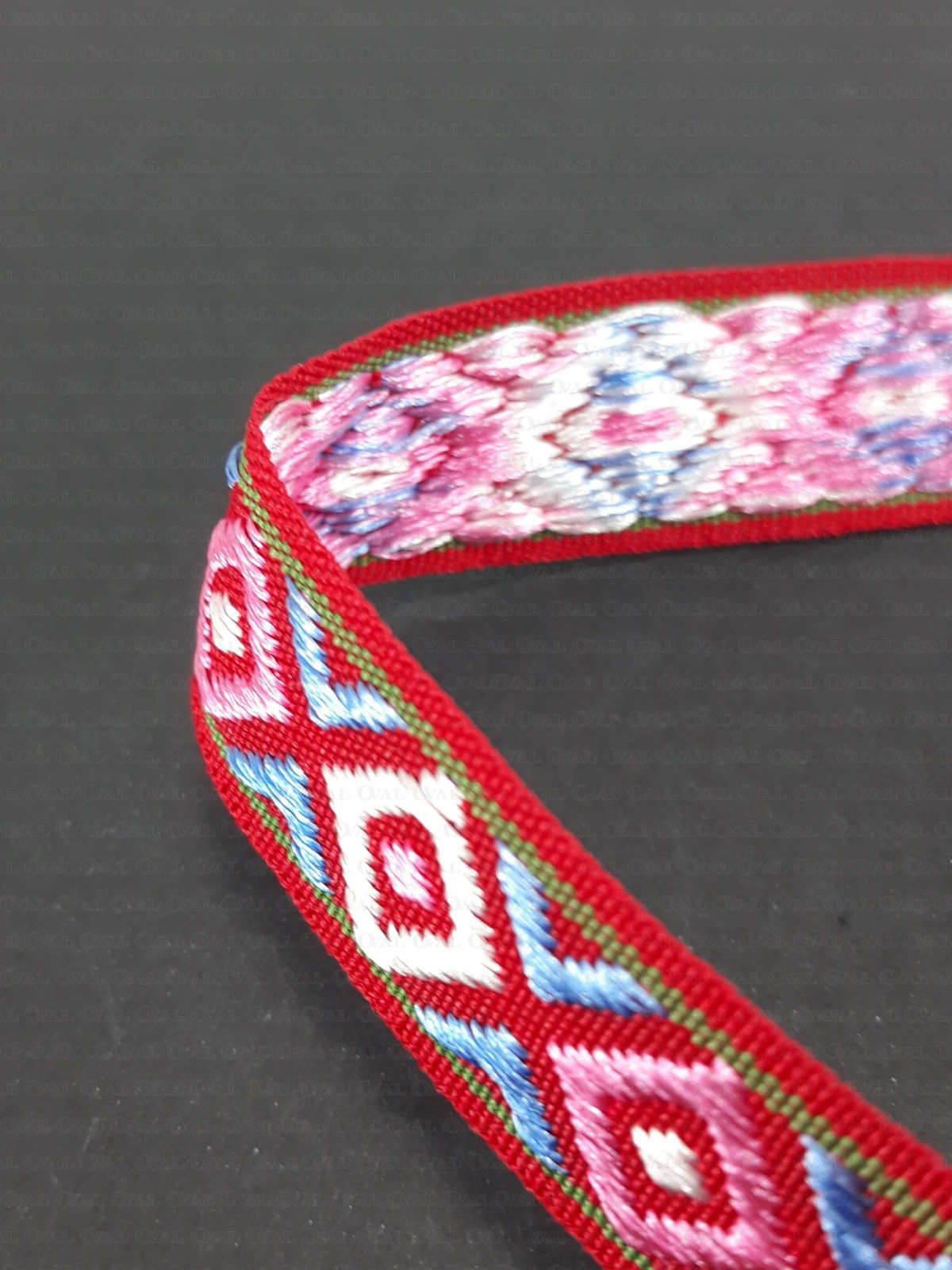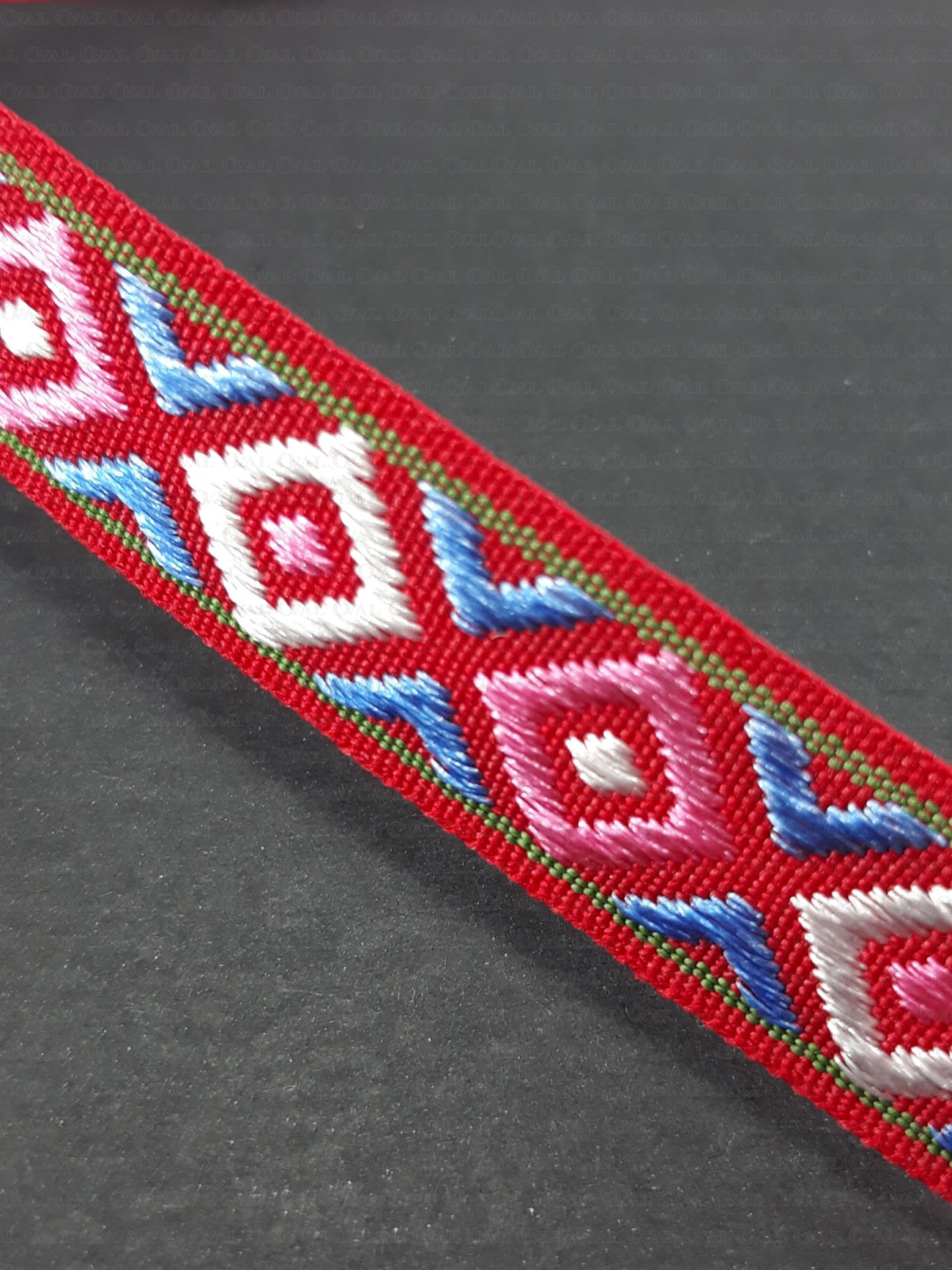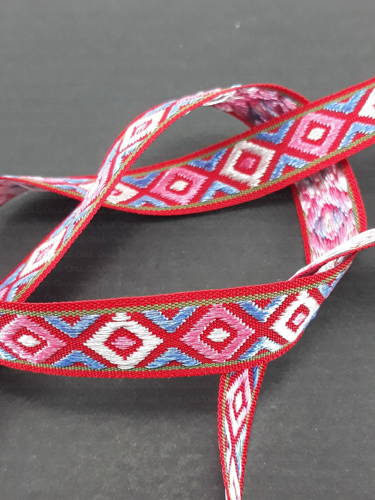 Decorative ribbon in an ethnic style with a slight sheen.