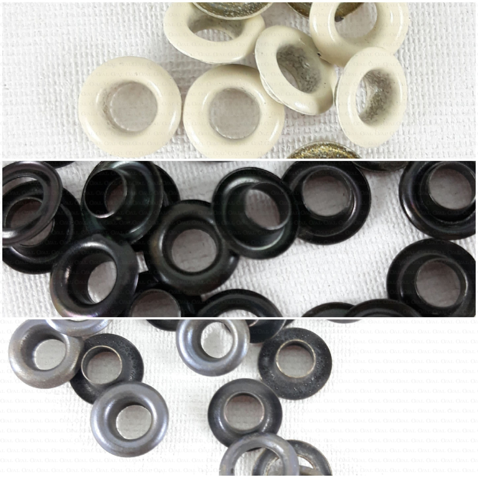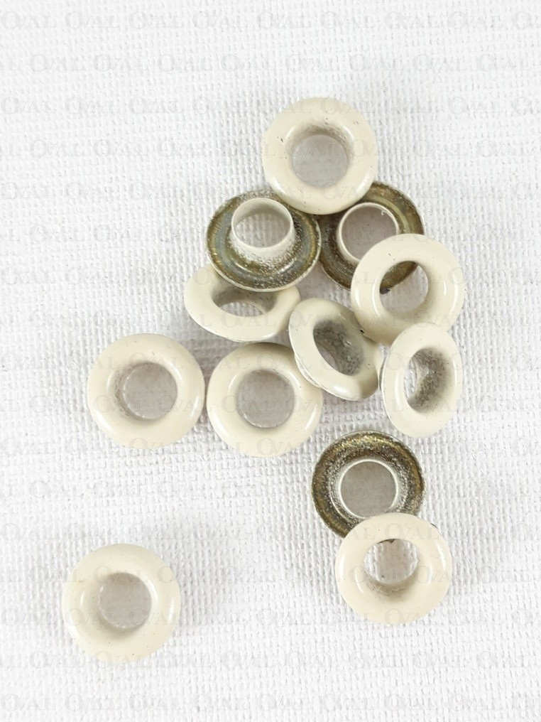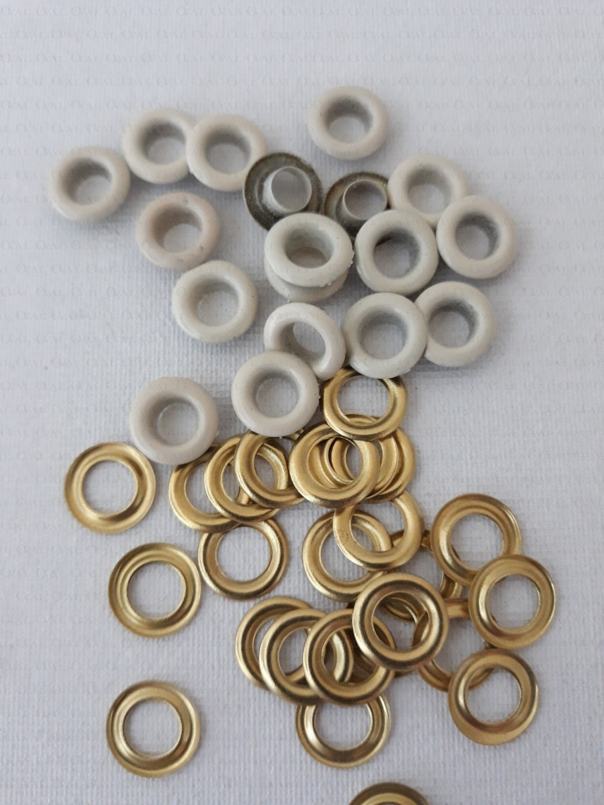 Brass and stainless steel eyelets, short, for thin fabrics and knits.