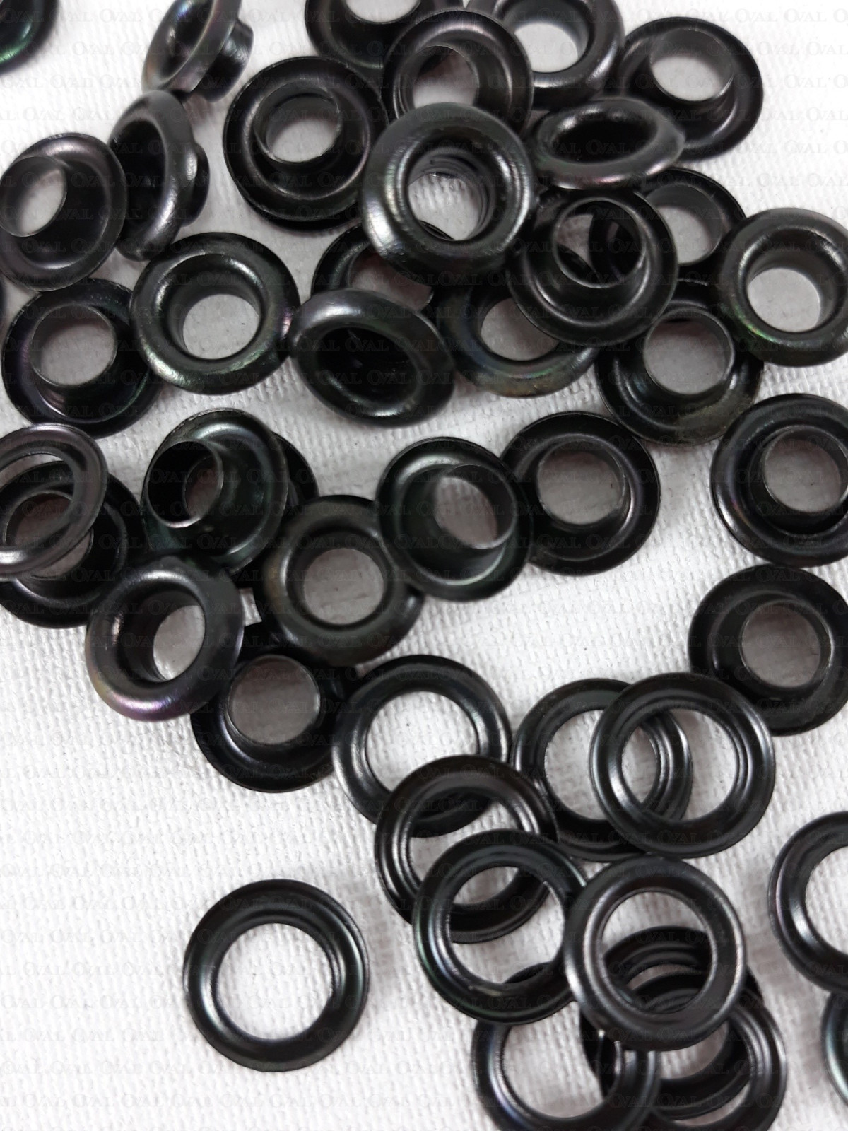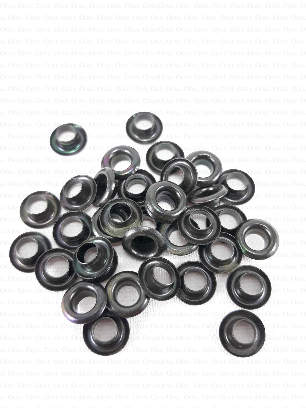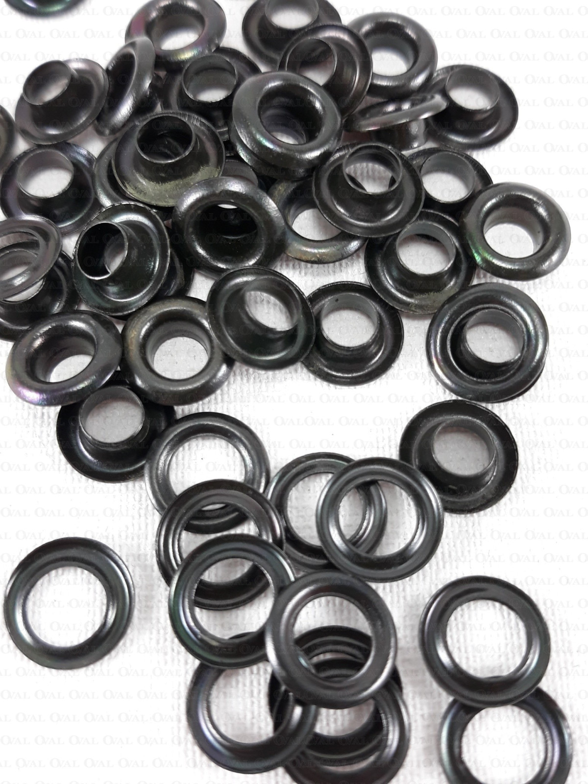 Brass and stainless steel eyelets, short, for thin fabrics and knits.
