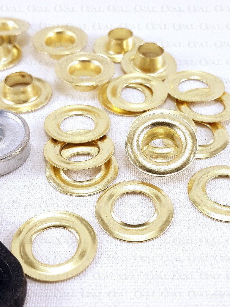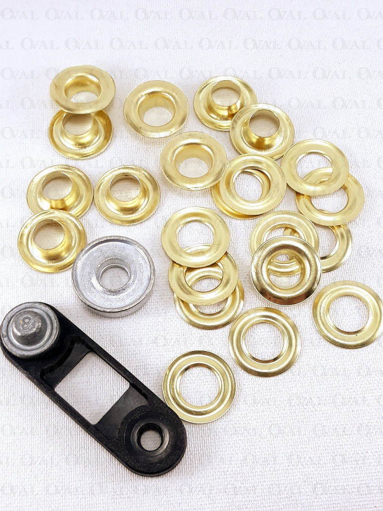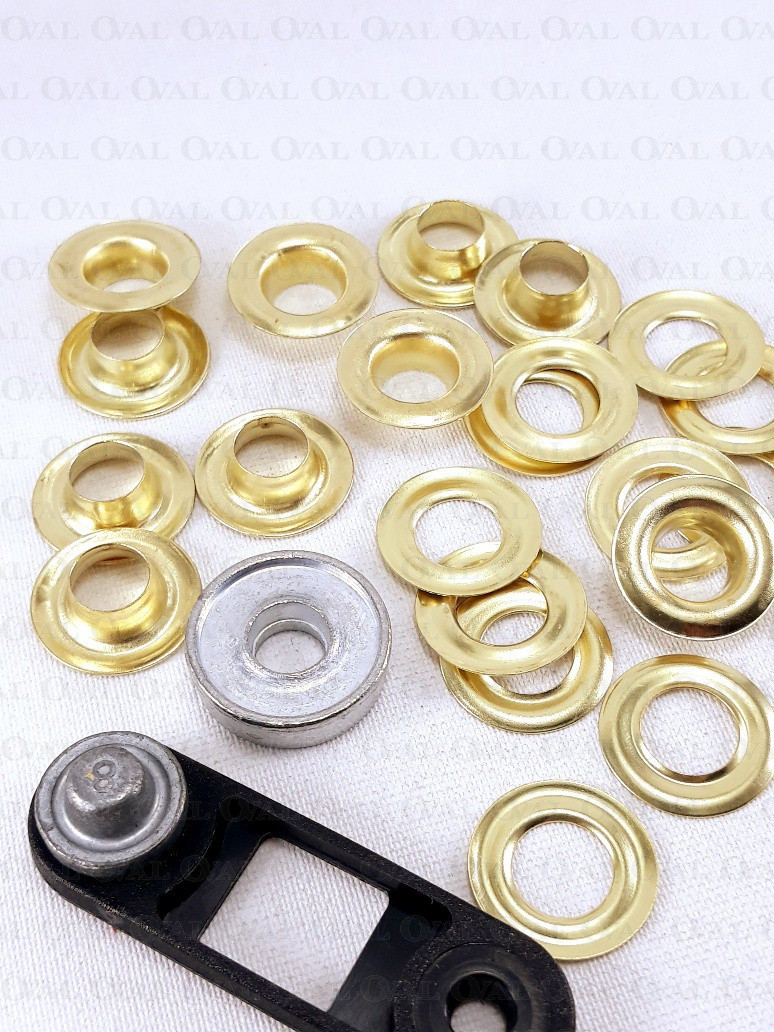 Steel eyelets for manual installation.
